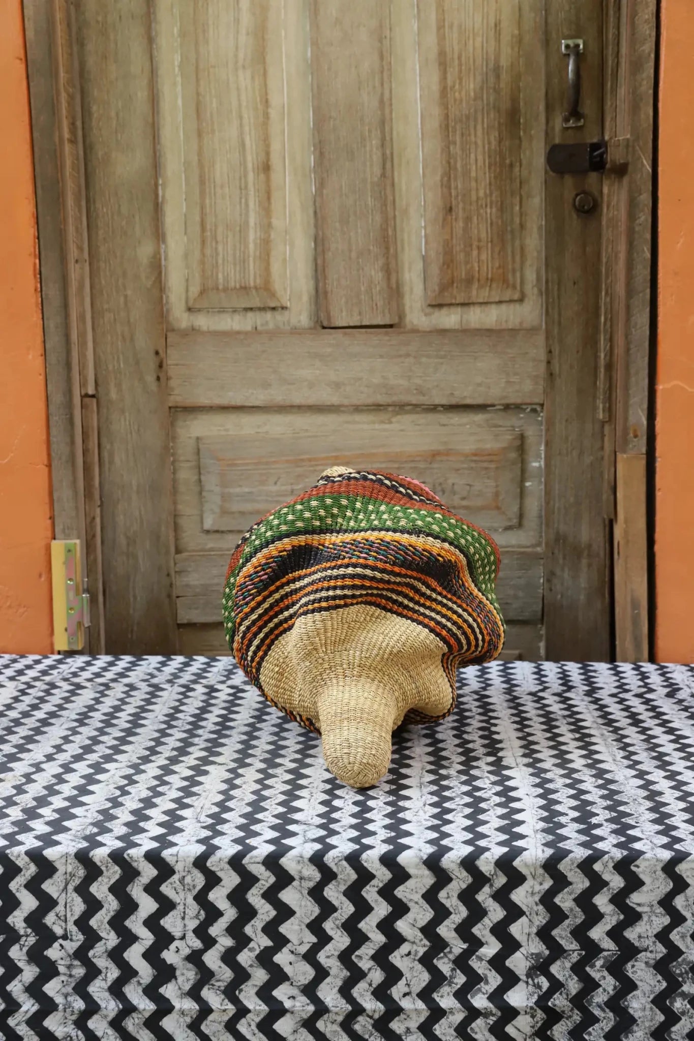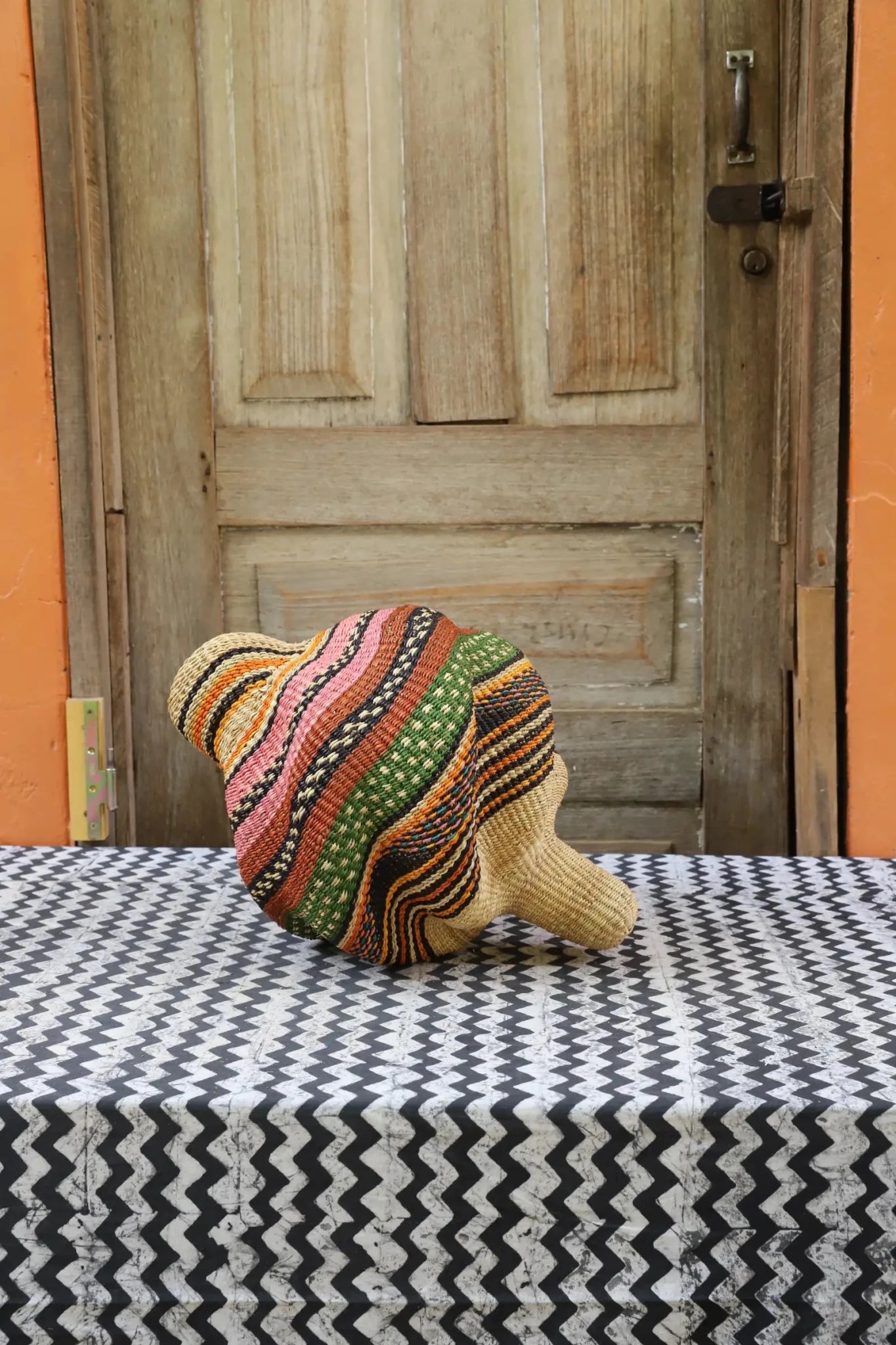 Katayeli-tia (Conch), known as the snail basket in Gurune, is an ode to the feminine. Crafted by artisan Perpetual over 3 1⁄2 weeks, its exquisite spiral design captivates with multi-dimensional beauty. Perfect as a striking statement in an entrance or overlooking the ocean in your beach home.