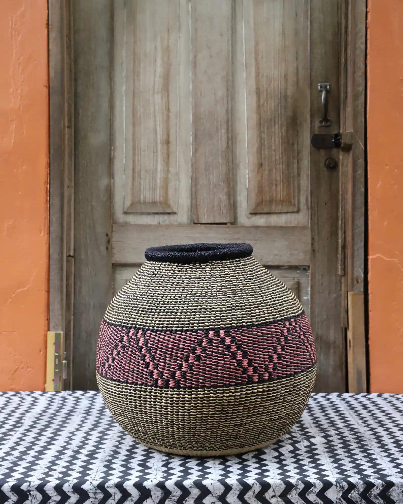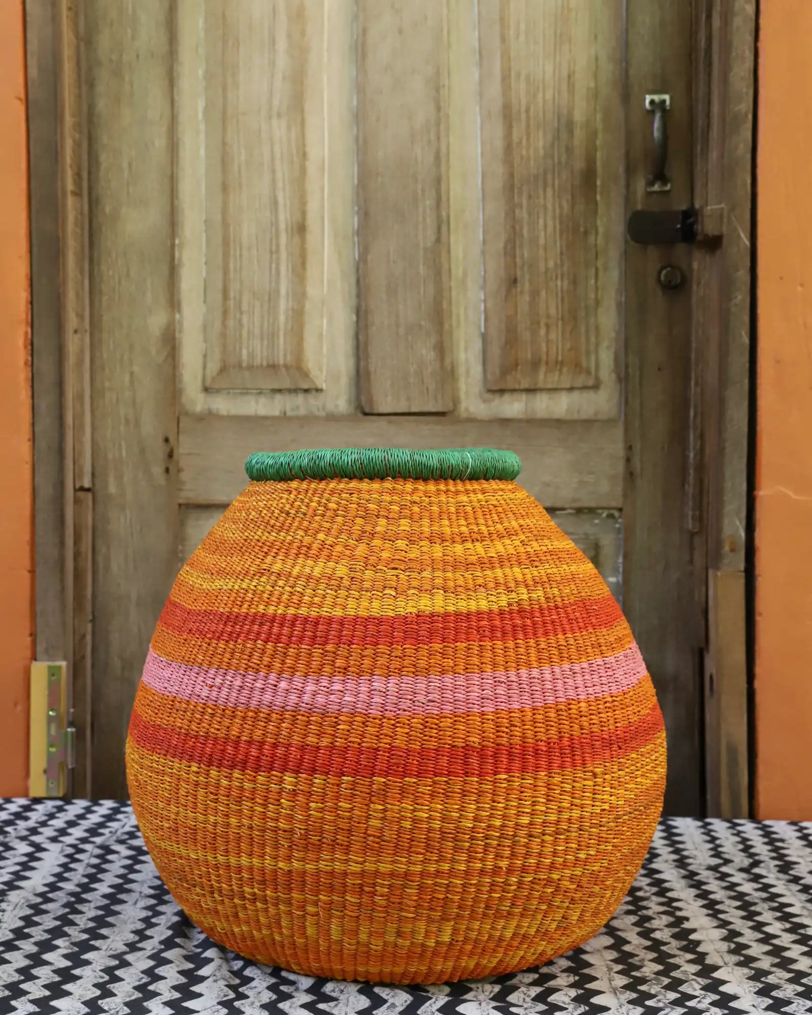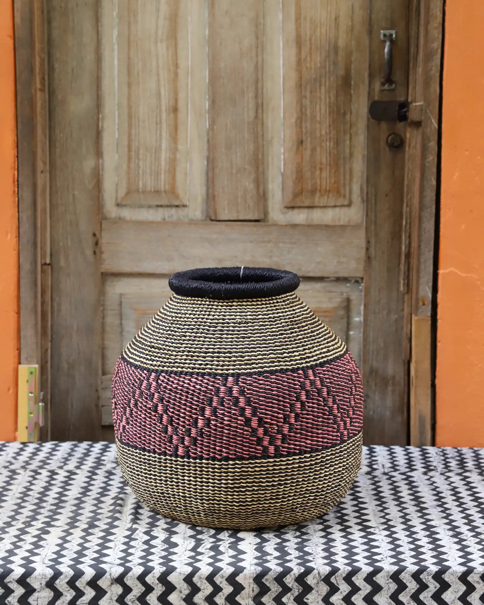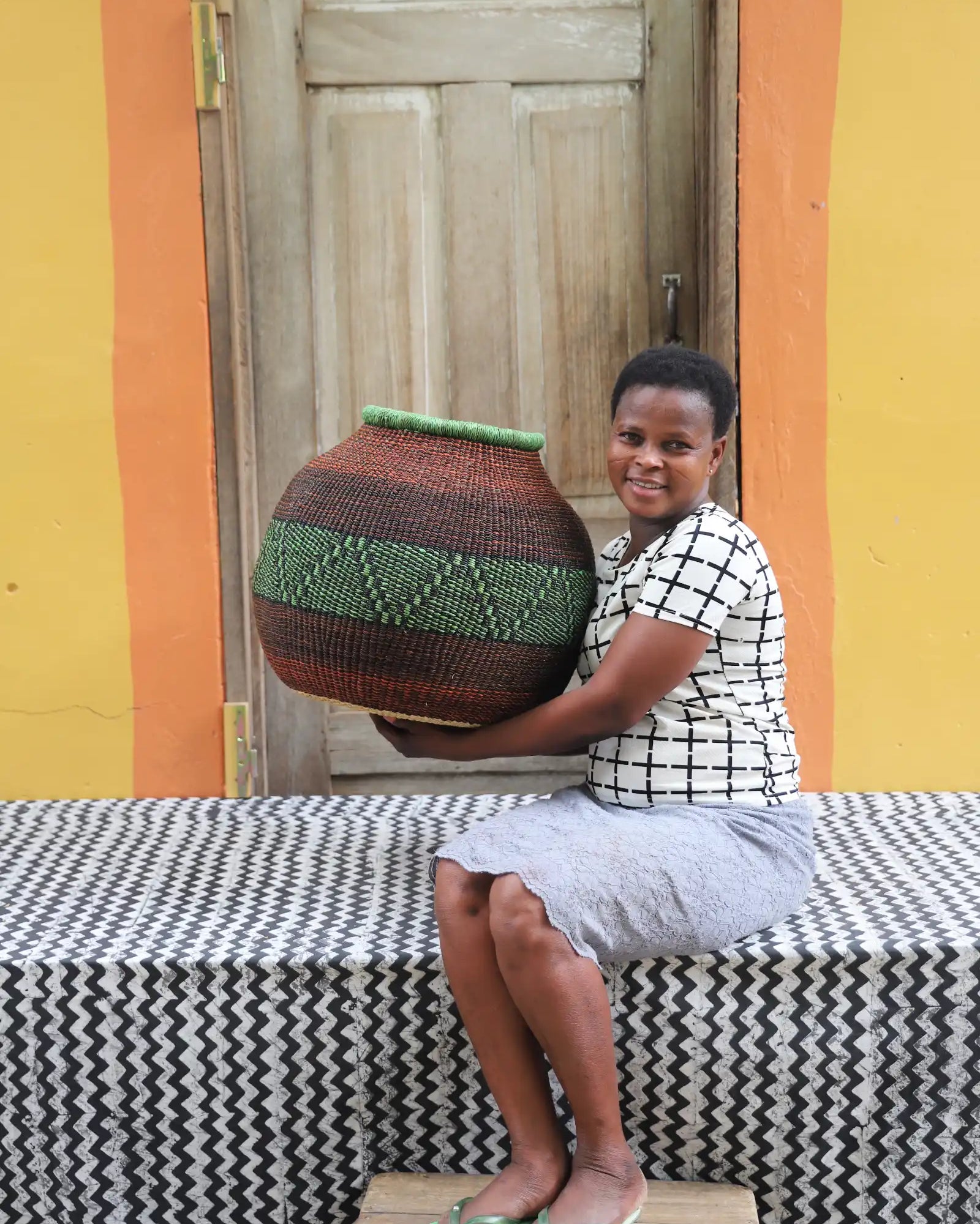 Kenkia, meaning a large water-carrying gourd in Gurune, the language of Ghana’s Gurunsi people is the inspiration behind this full-bodied basket. Though simple in design, its elegant proportions demand the skill of an expert weaver. A true art piece, the Kenkia basket doubles as a stunning woven vase—just add a glass jar for fresh flowers or garden finds.