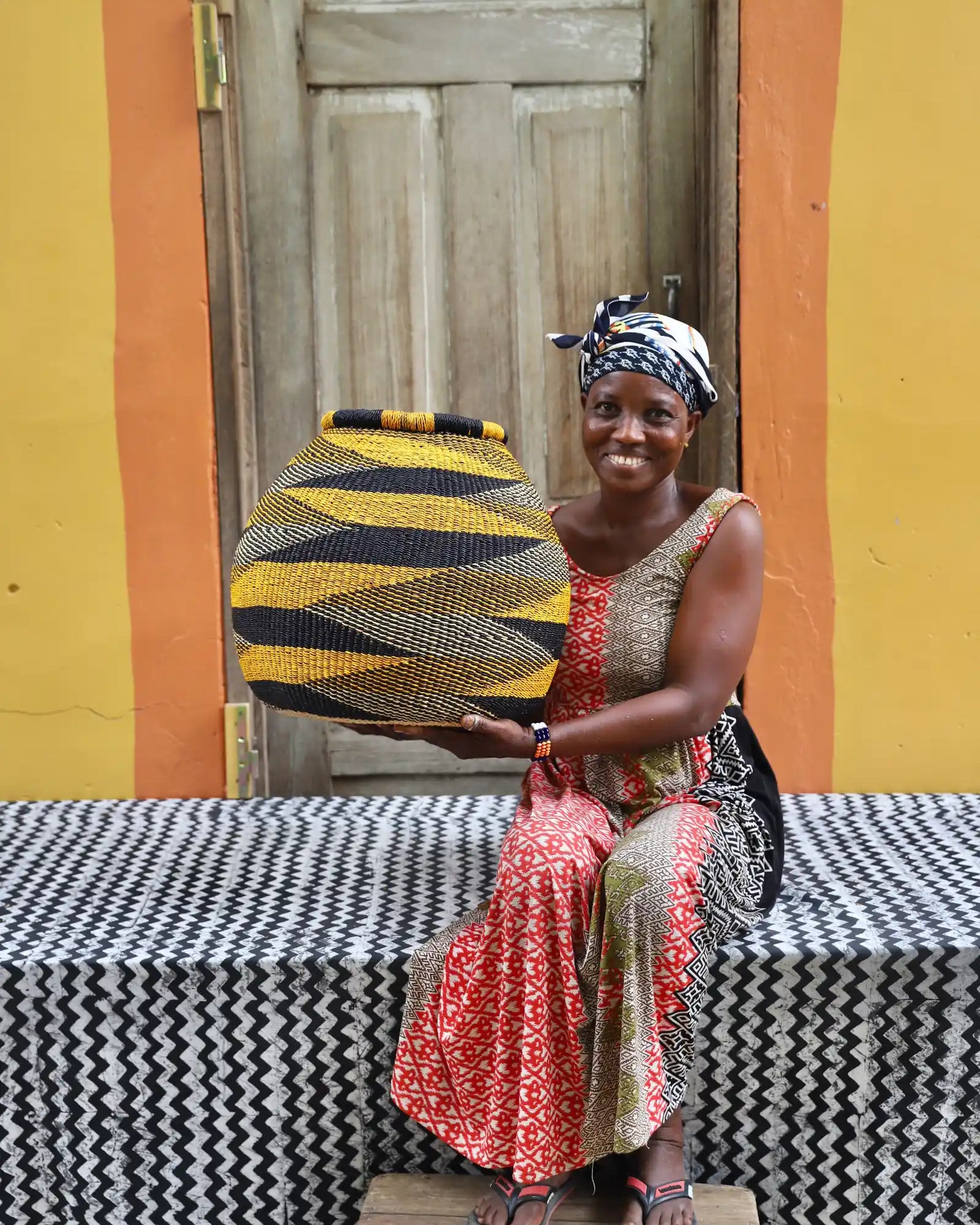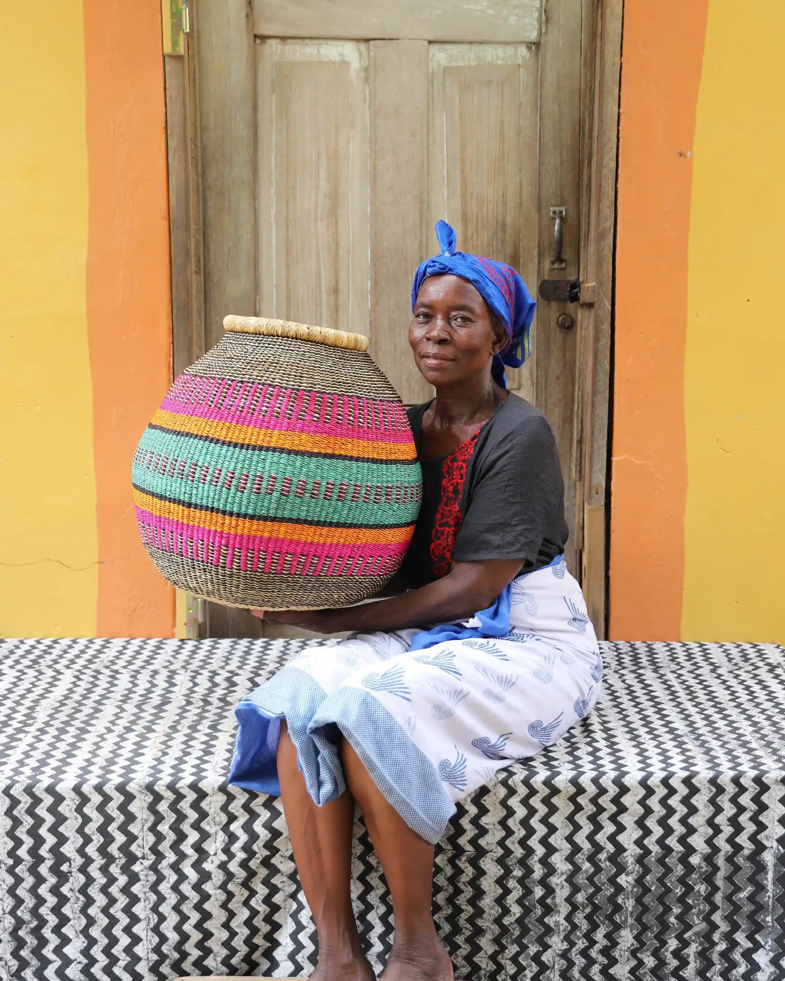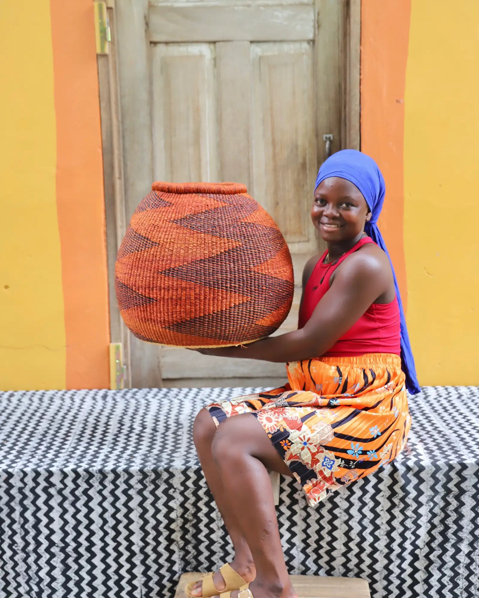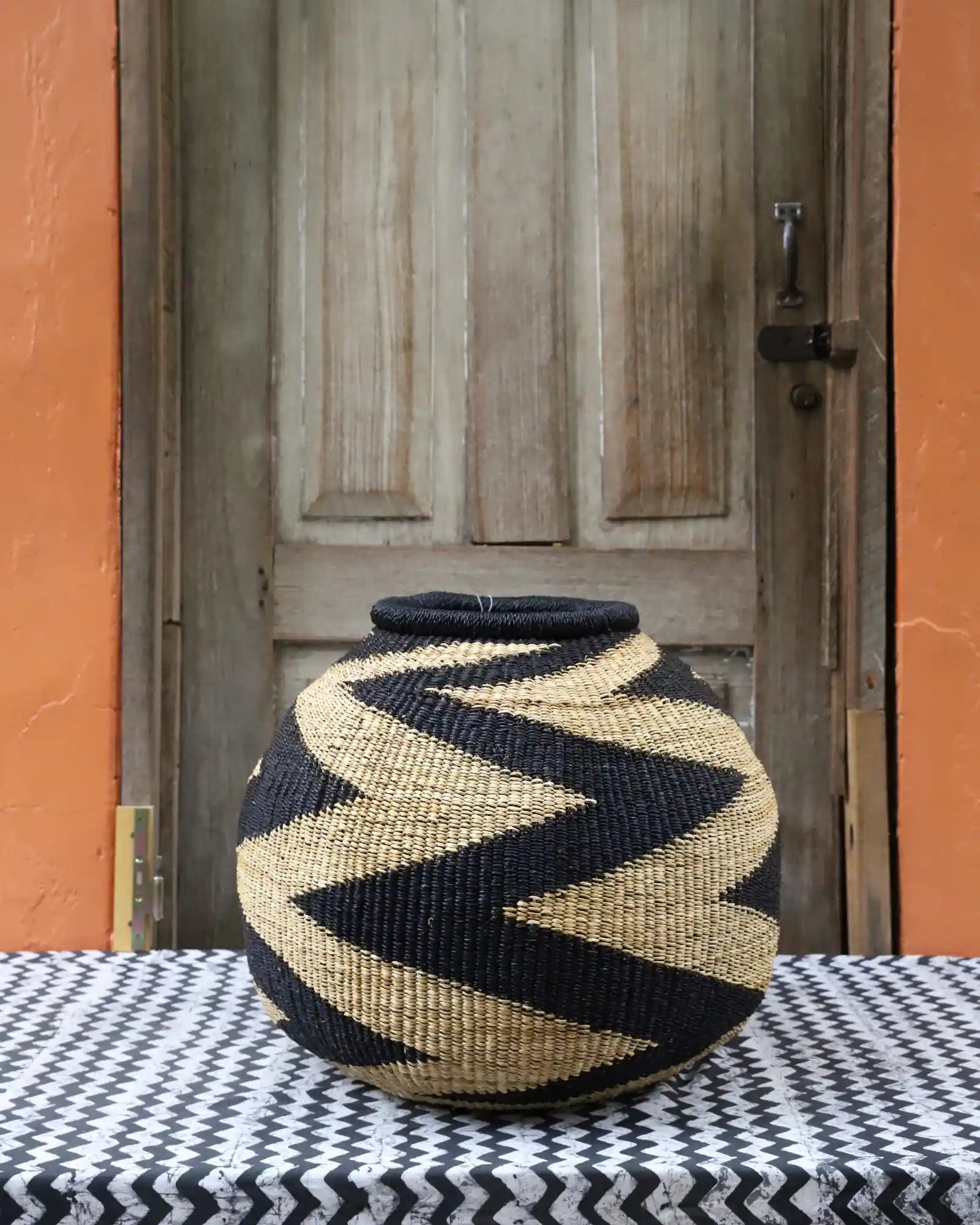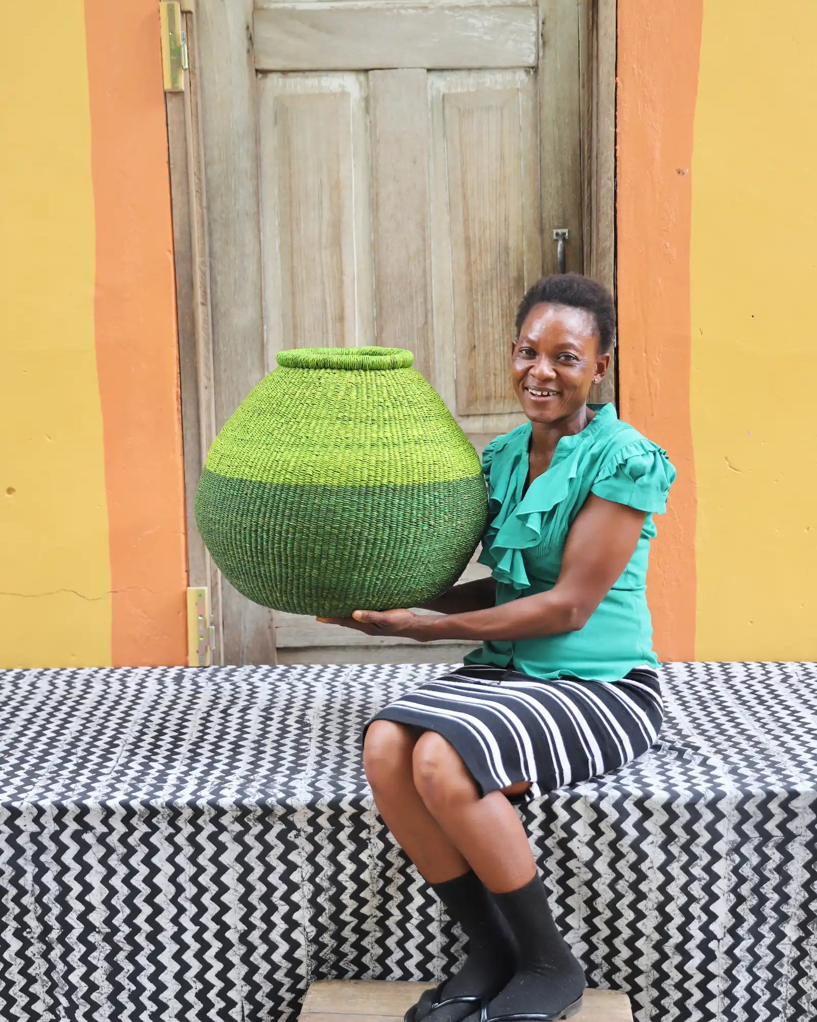Kenkia, meaning a large water-carrying gourd in Gurune, the language of Ghana’s Gurunsi people is the inspiration behind this full-bodied basket. Though simple in design, its elegant proportions demand the skill of an expert weaver. A true art piece, the Kenkia basket doubles as a stunning woven vase—just add a glass jar for fresh flowers or garden finds.