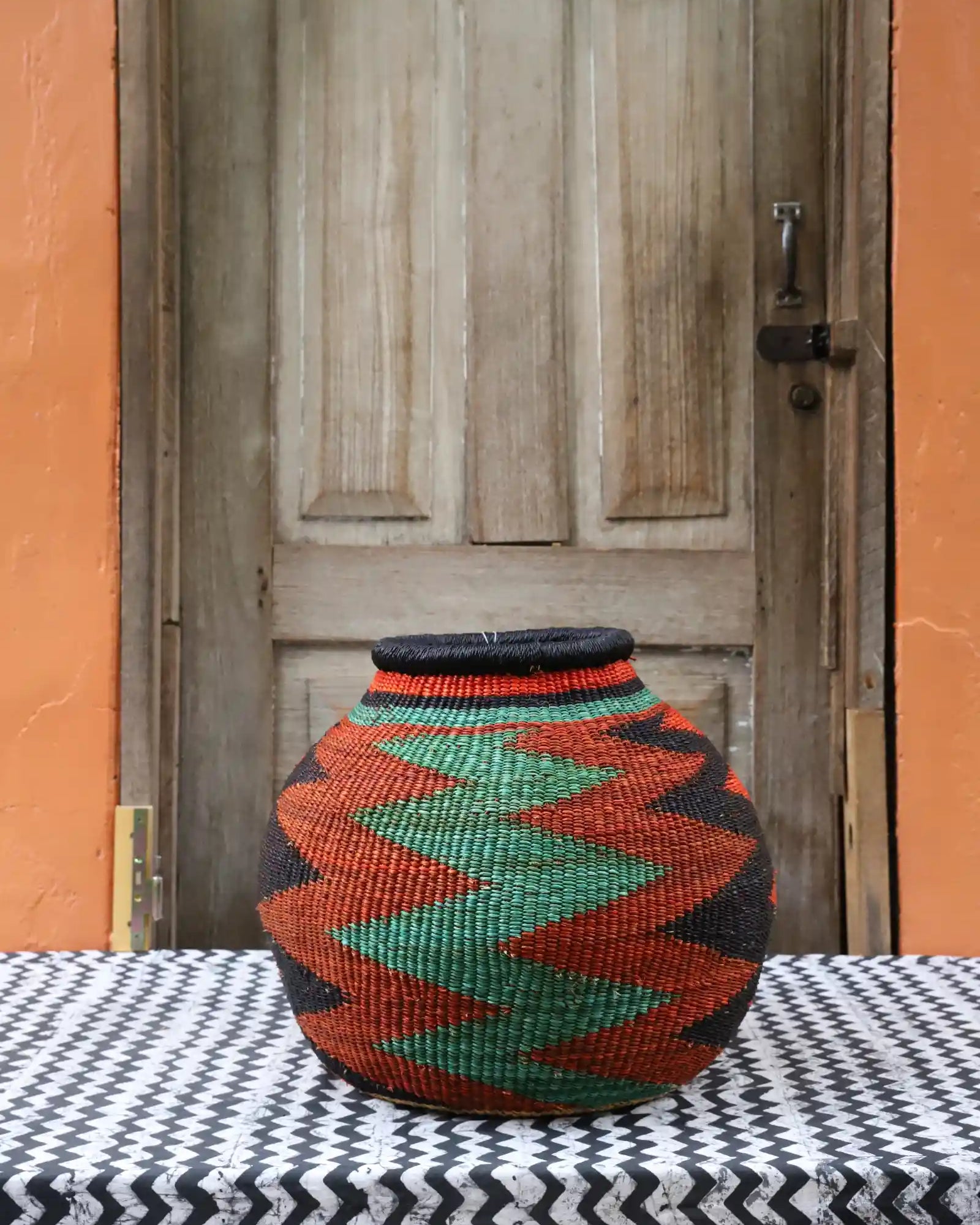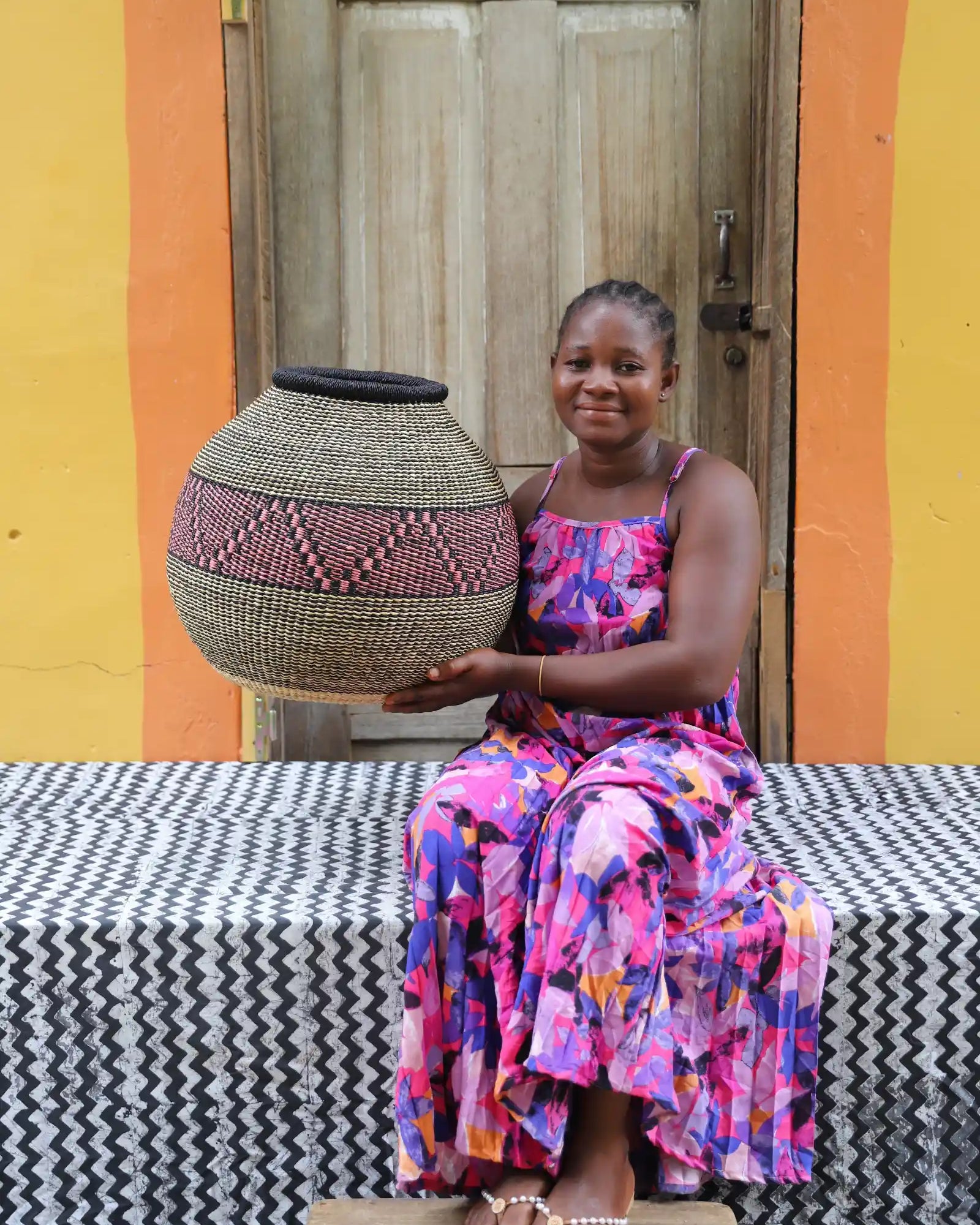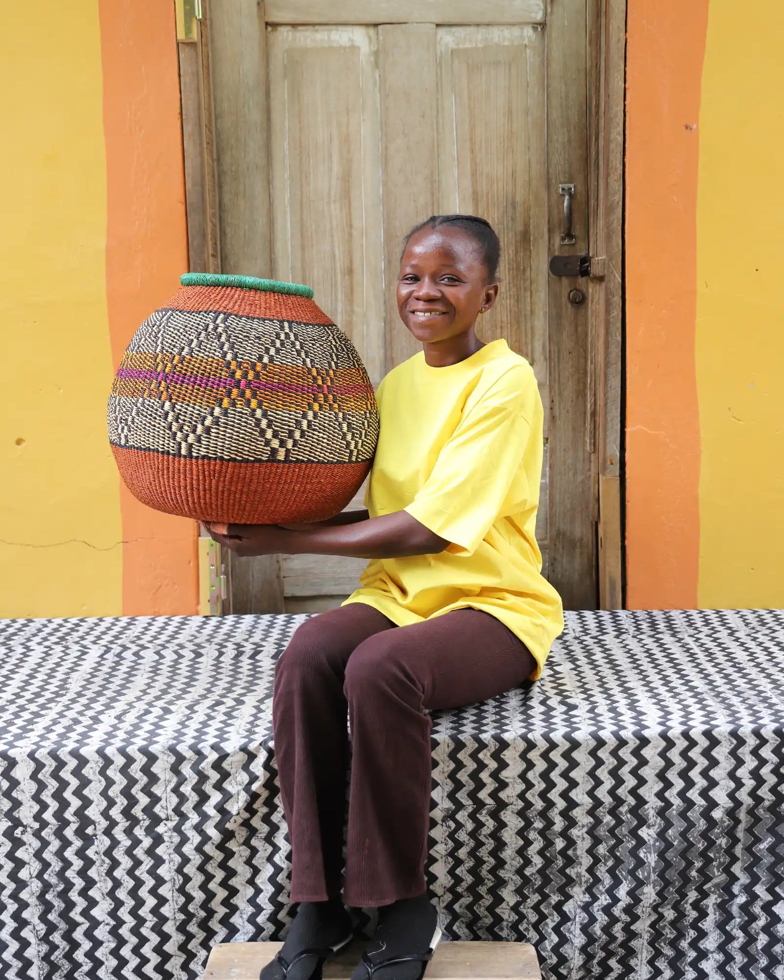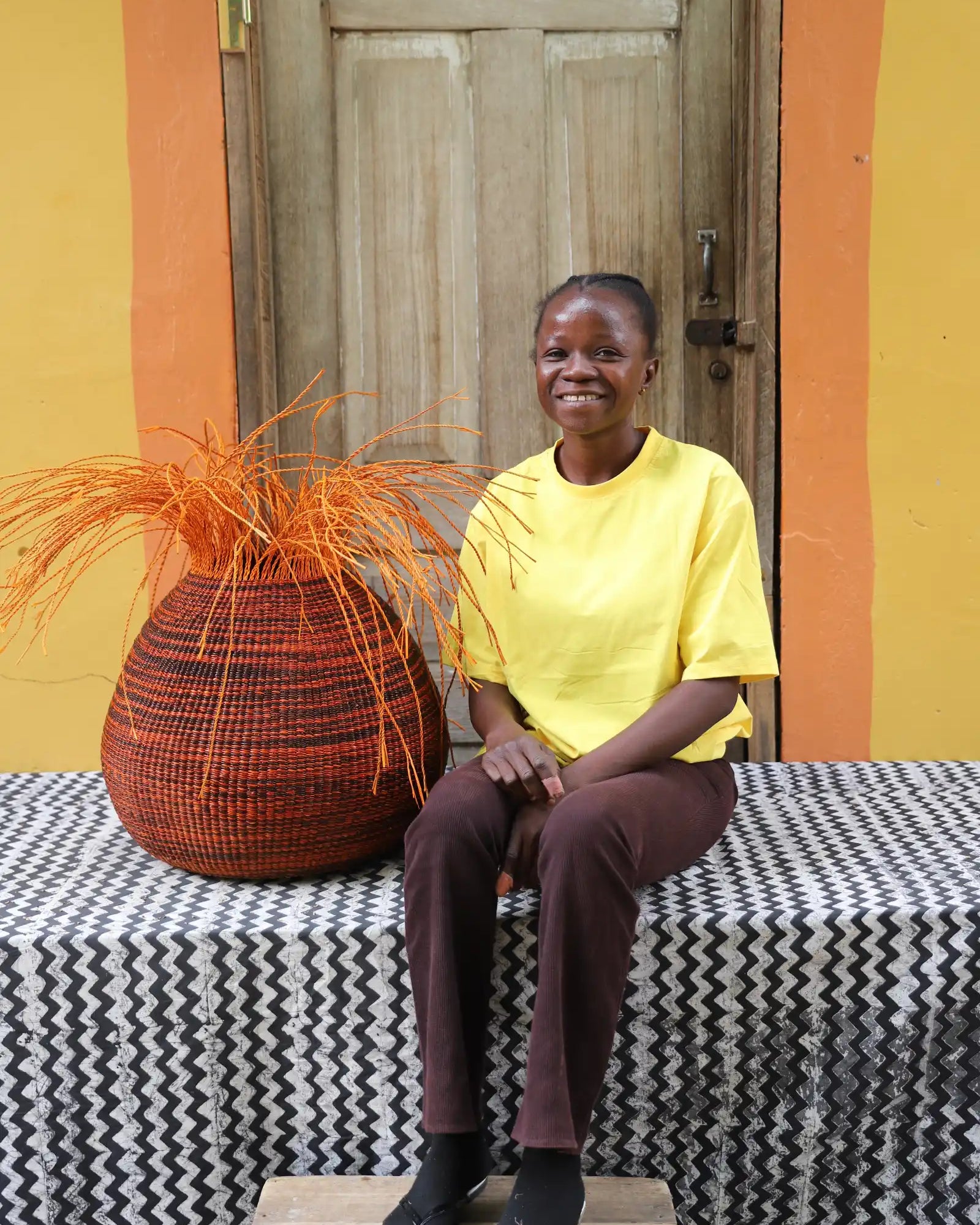 Kenkia, meaning a large water-carrying gourd in Gurune, the language of Ghana’s Gurunsi people is the inspiration behind this full-bodied basket. Though simple in design, its elegant proportions demand the skill of an expert weaver. A true art piece, the Kenkia basket doubles as a stunning woven vase—just add a glass jar for fresh flowers or garden finds.