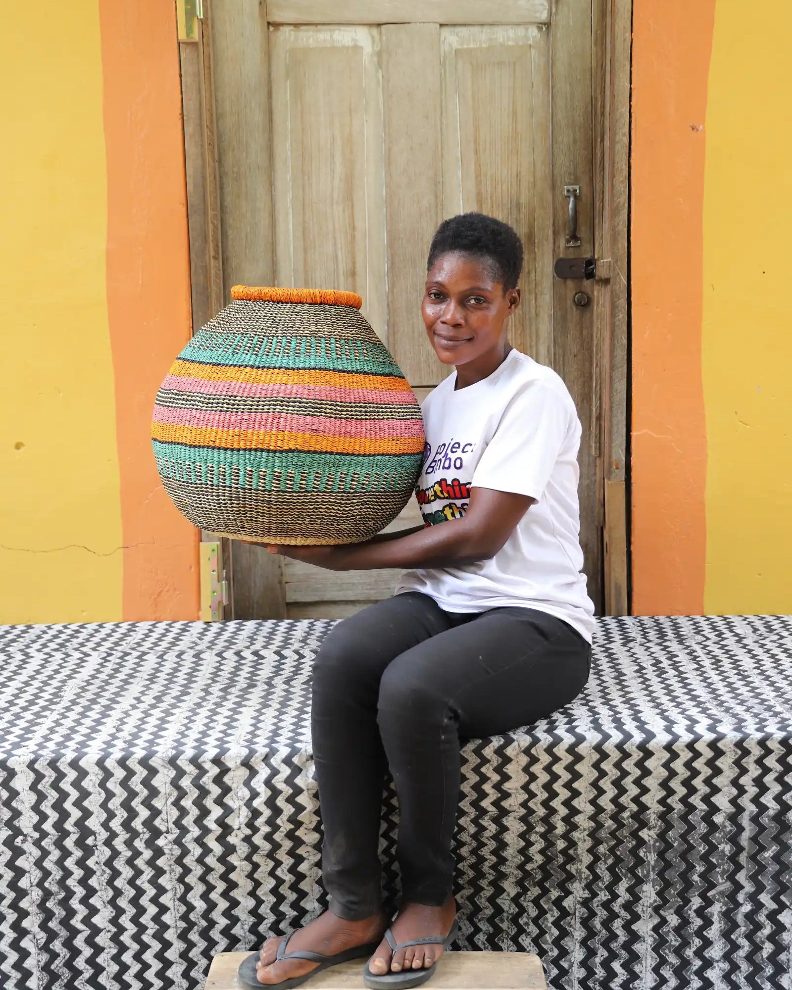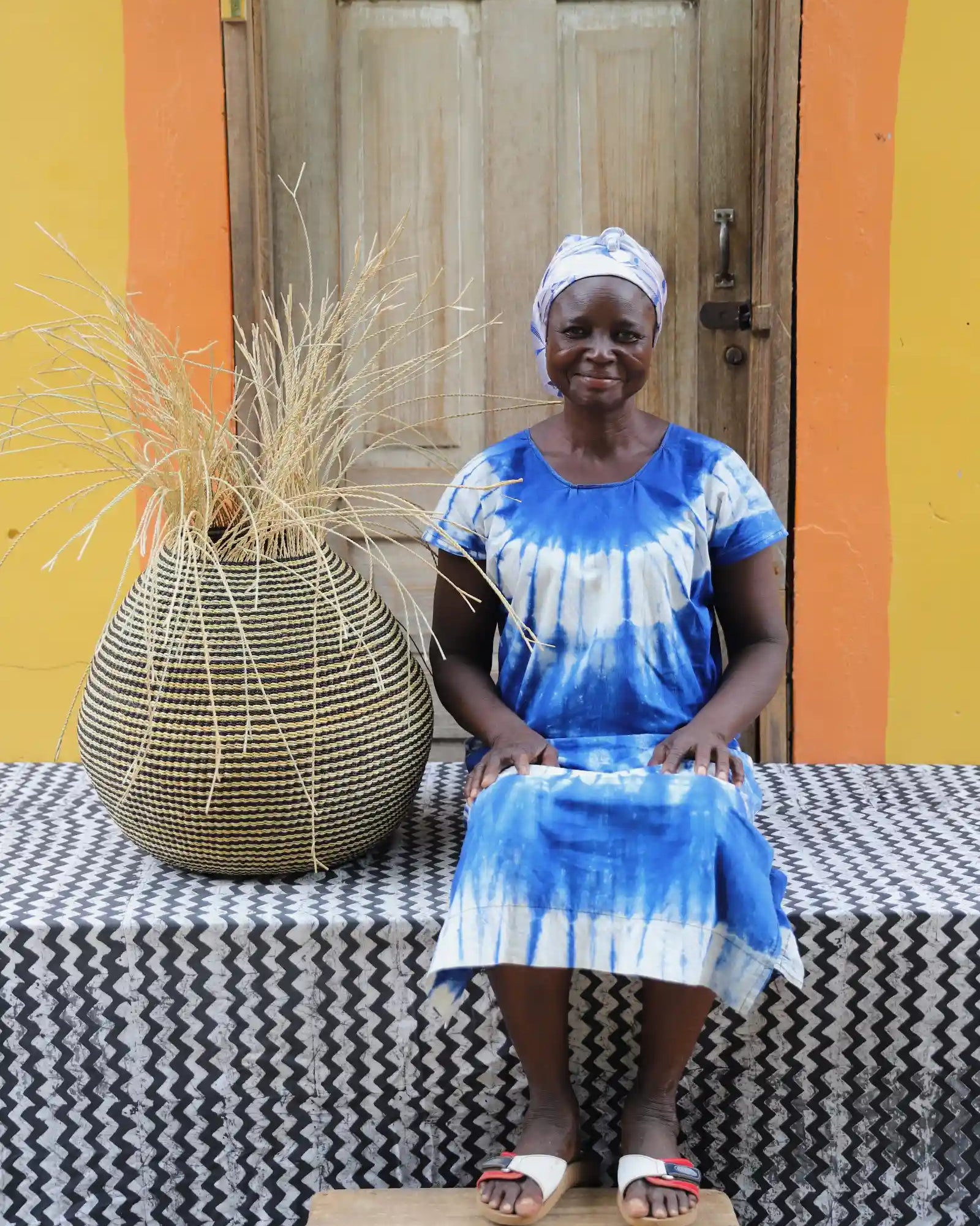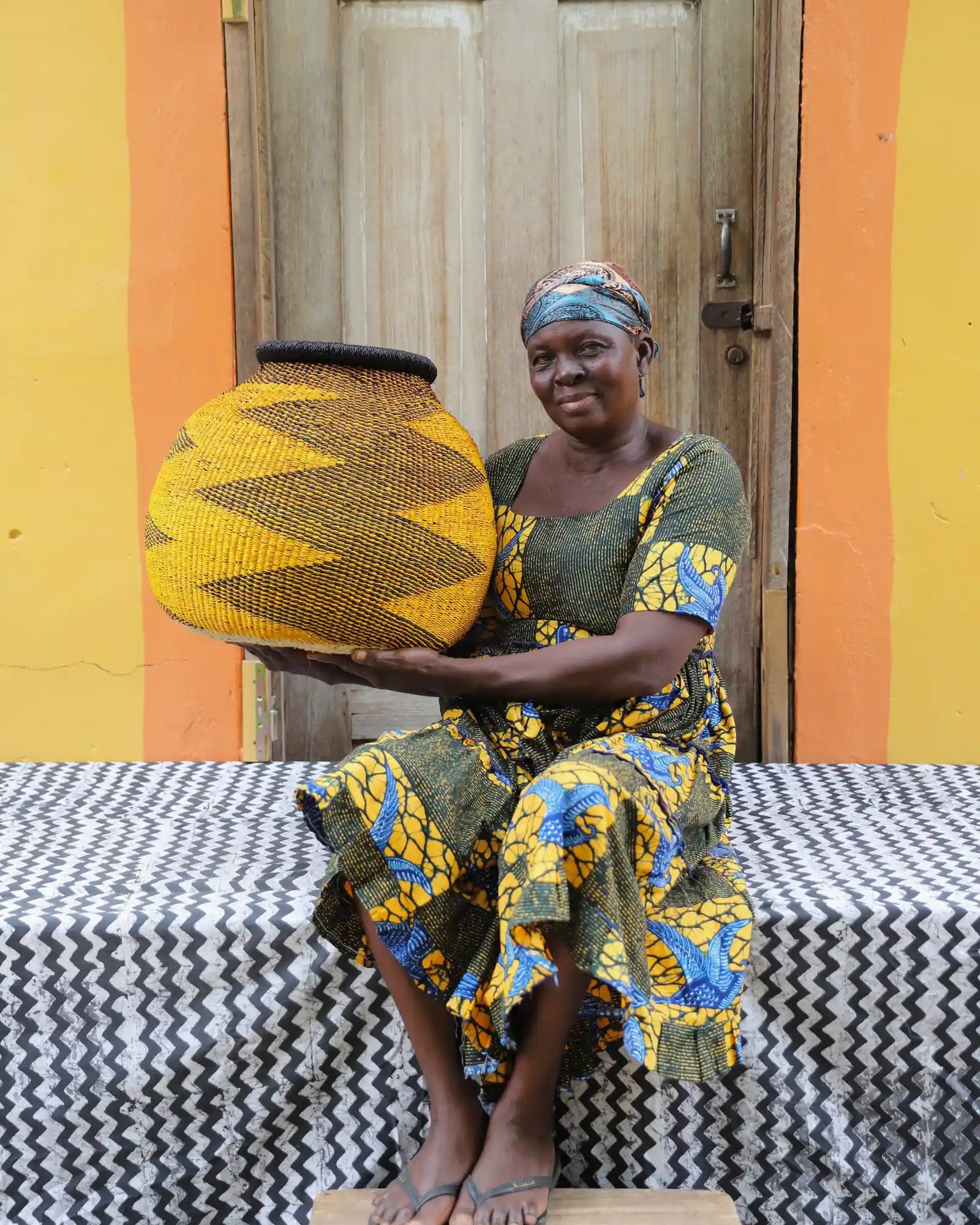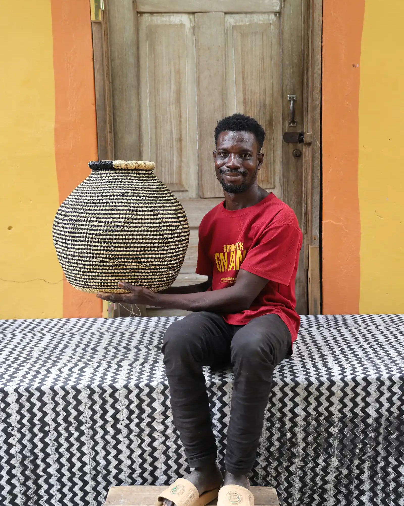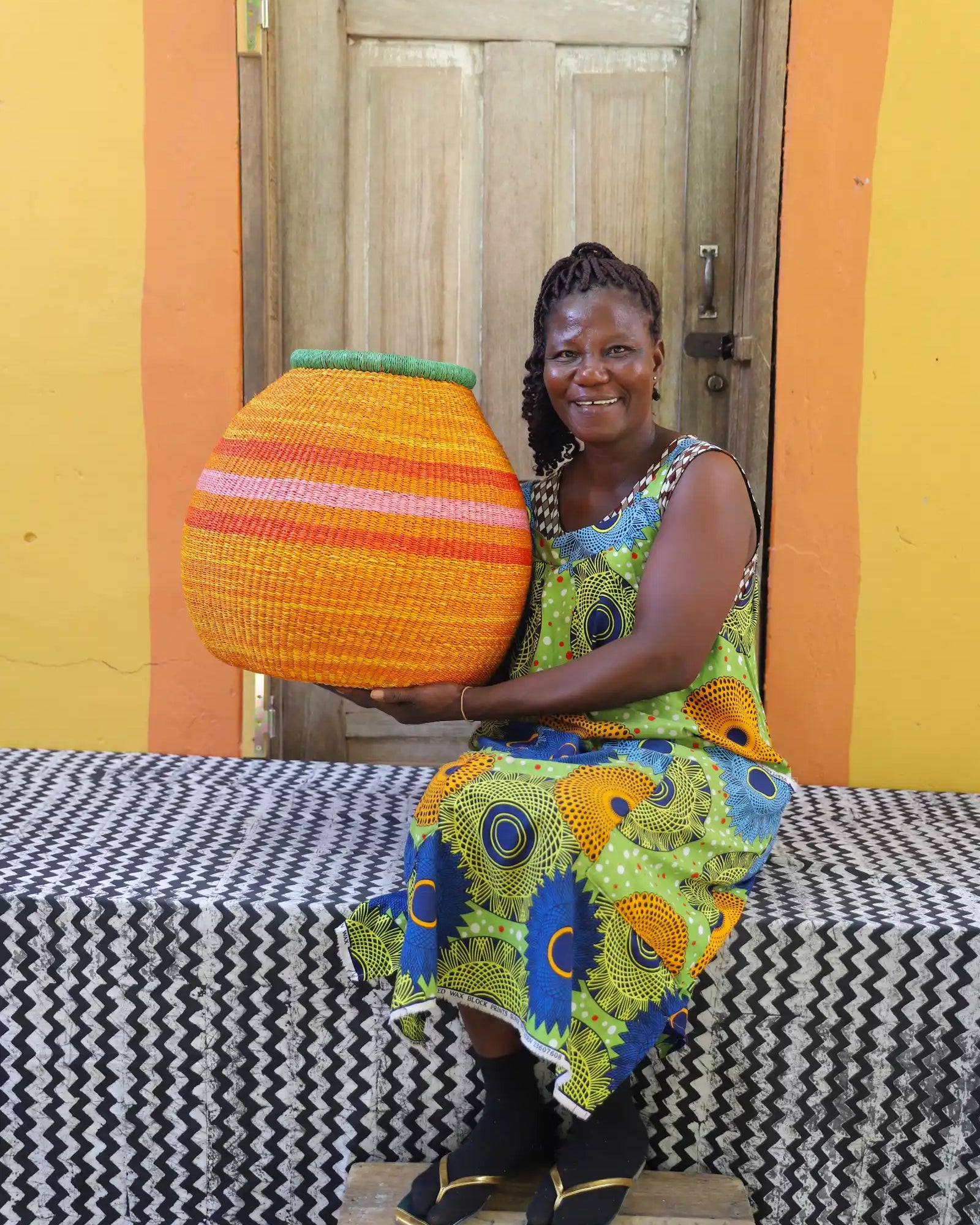 Kenkia, meaning a large water-carrying gourd in Gurune, the language of Ghana’s Gurunsi people is the inspiration behind this full-bodied basket. Though simple in design, its elegant proportions demand the skill of an expert weaver. A true art piece, the Kenkia basket doubles as a stunning woven vase—just add a glass jar for fresh flowers or garden finds.
