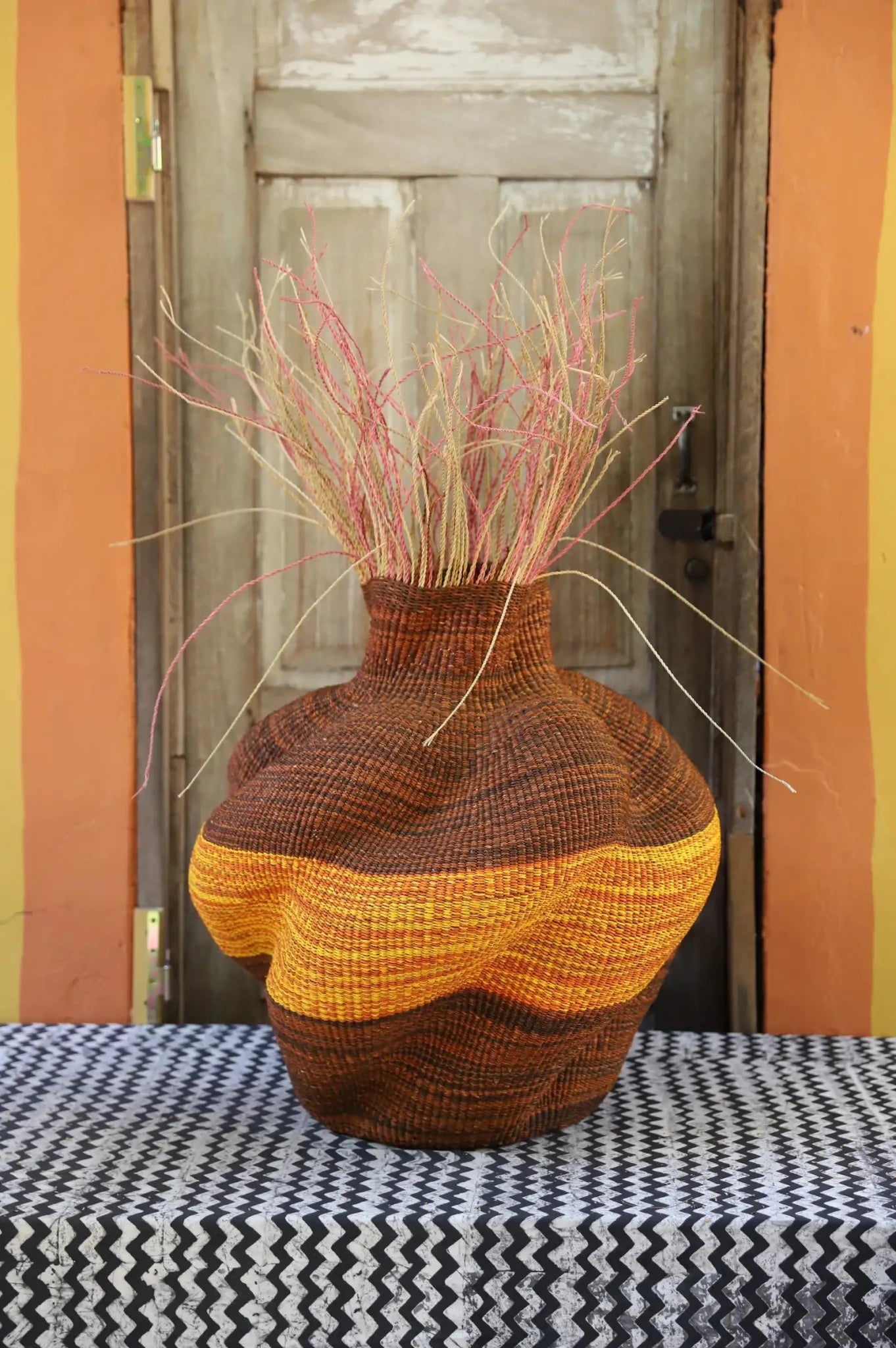 Named for its hanging straw and sculptural form, the Baobab Basket echoes Africa’s iconic ‘mother tree’—revered for its generous shade and nourishing fruit. The Baobab tree also inspired the name of our company, chosen for its warm nature and deep roots in the community. This piece features our signature spiraling technique, a reflection of our bond with land, culture, and craft.
