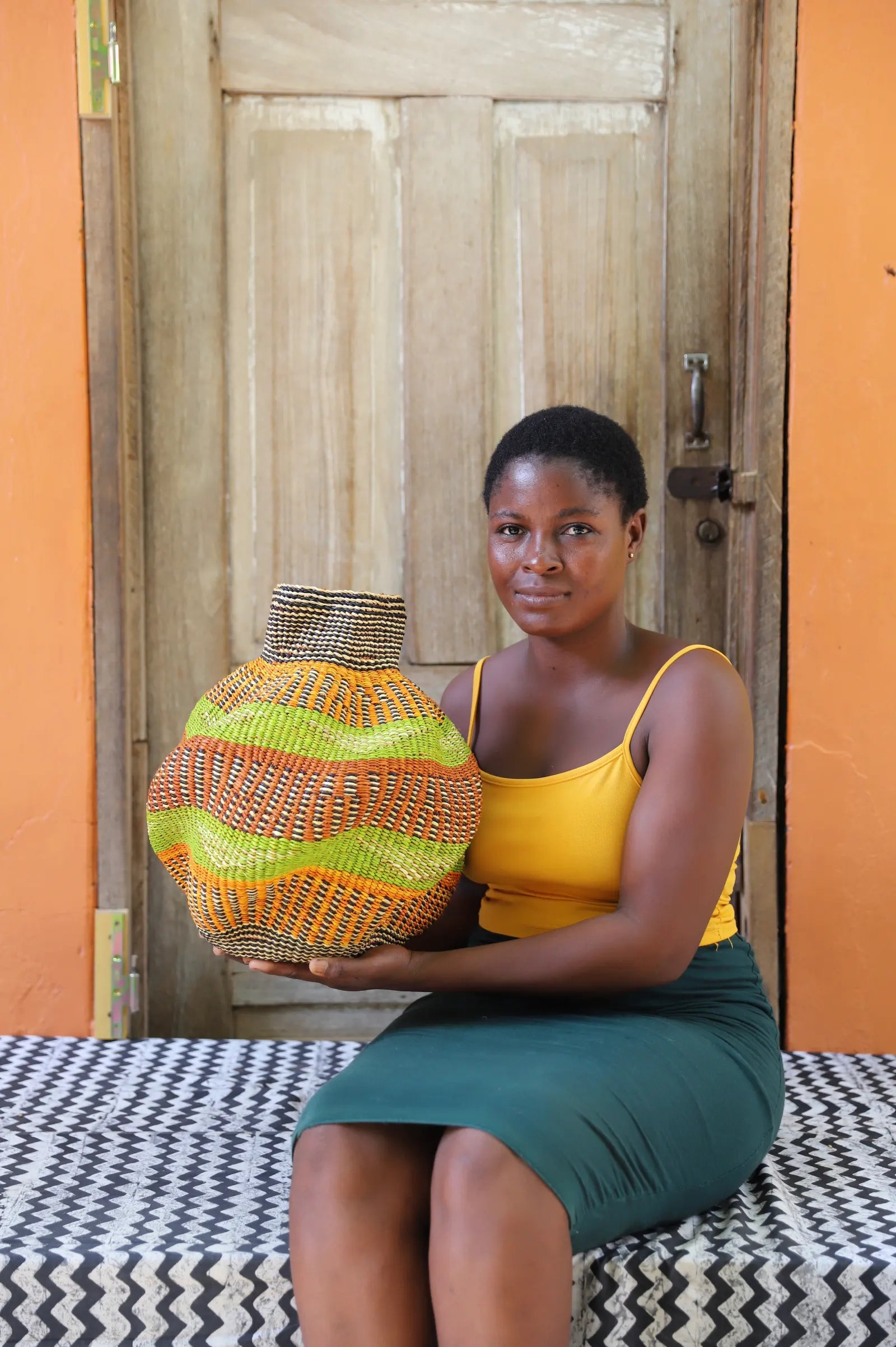 The weaver of this Baba Tree basket will receive a commission on the retail price of this basket in addition to what they were initially paid upon completion of the basket. 12.5% for the large and medium sizes, and 10% commission for the tiny size.