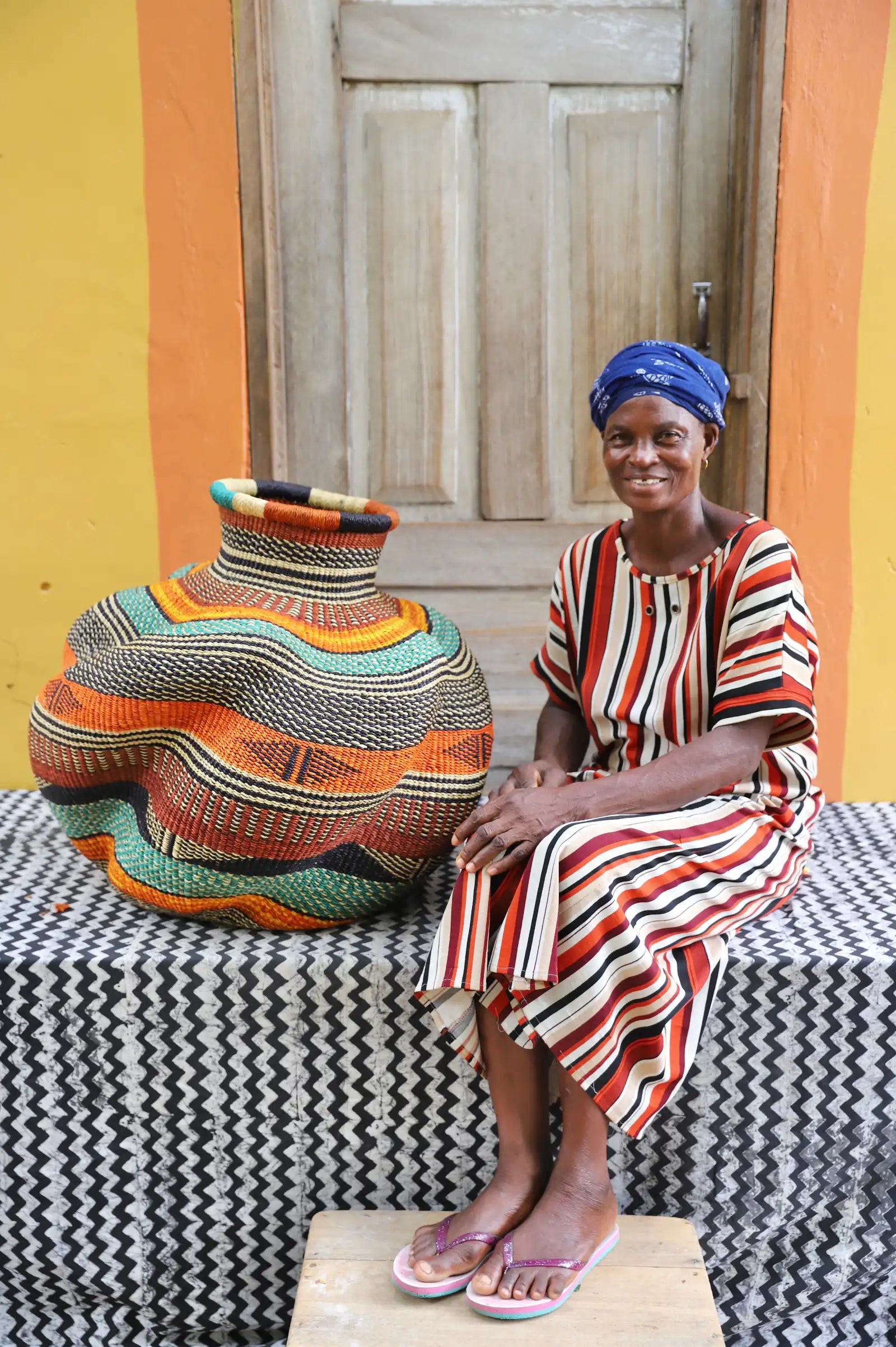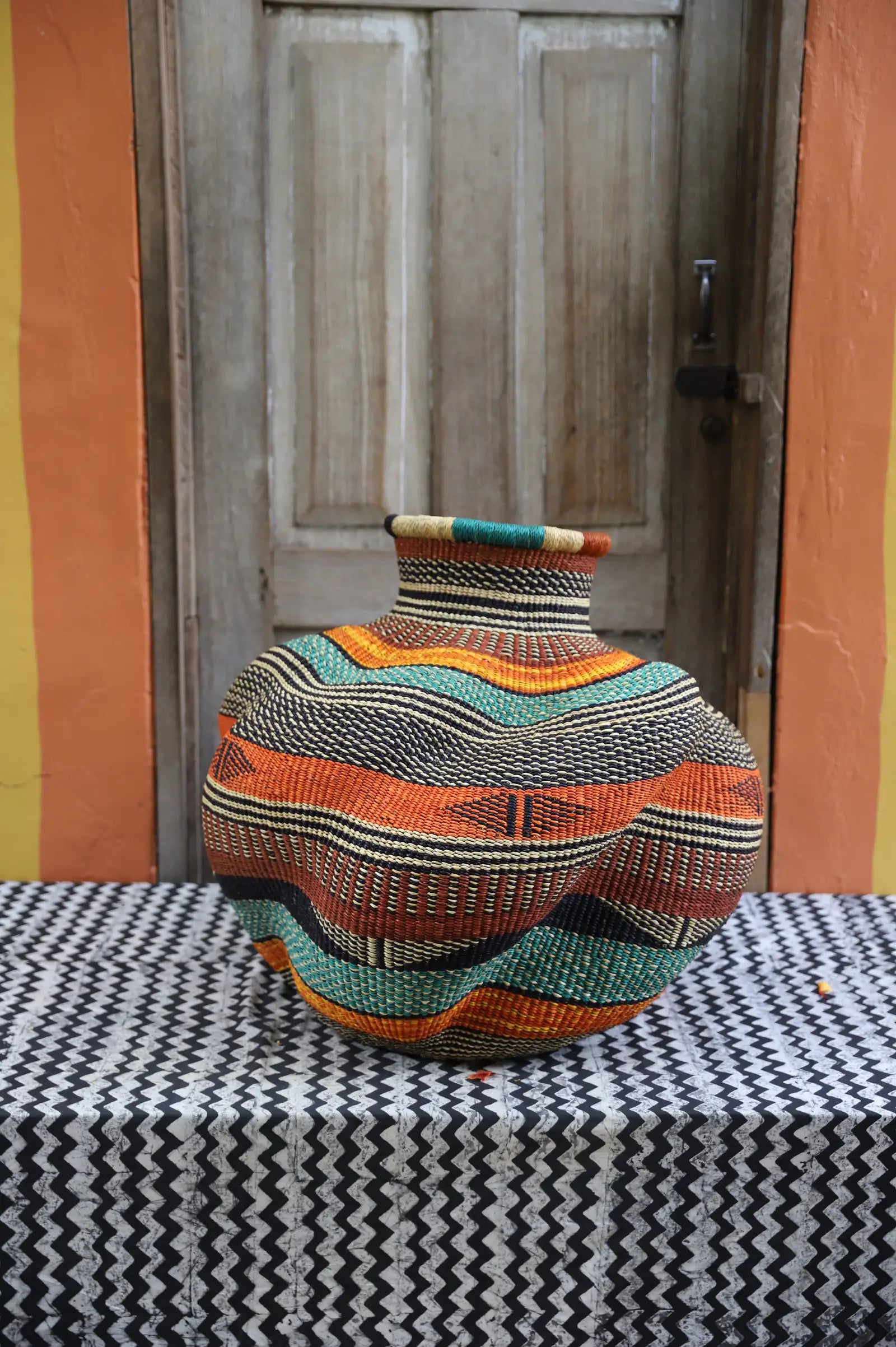 “The basket arrived yesterday evening 7/29 and it is ABSOLUTELY GORGEOUS!!!!! It arrived in perfect condition and needs no shaping! Eva is a master weaver. I will continue to check out her work. I need another piece, possibly larger!”