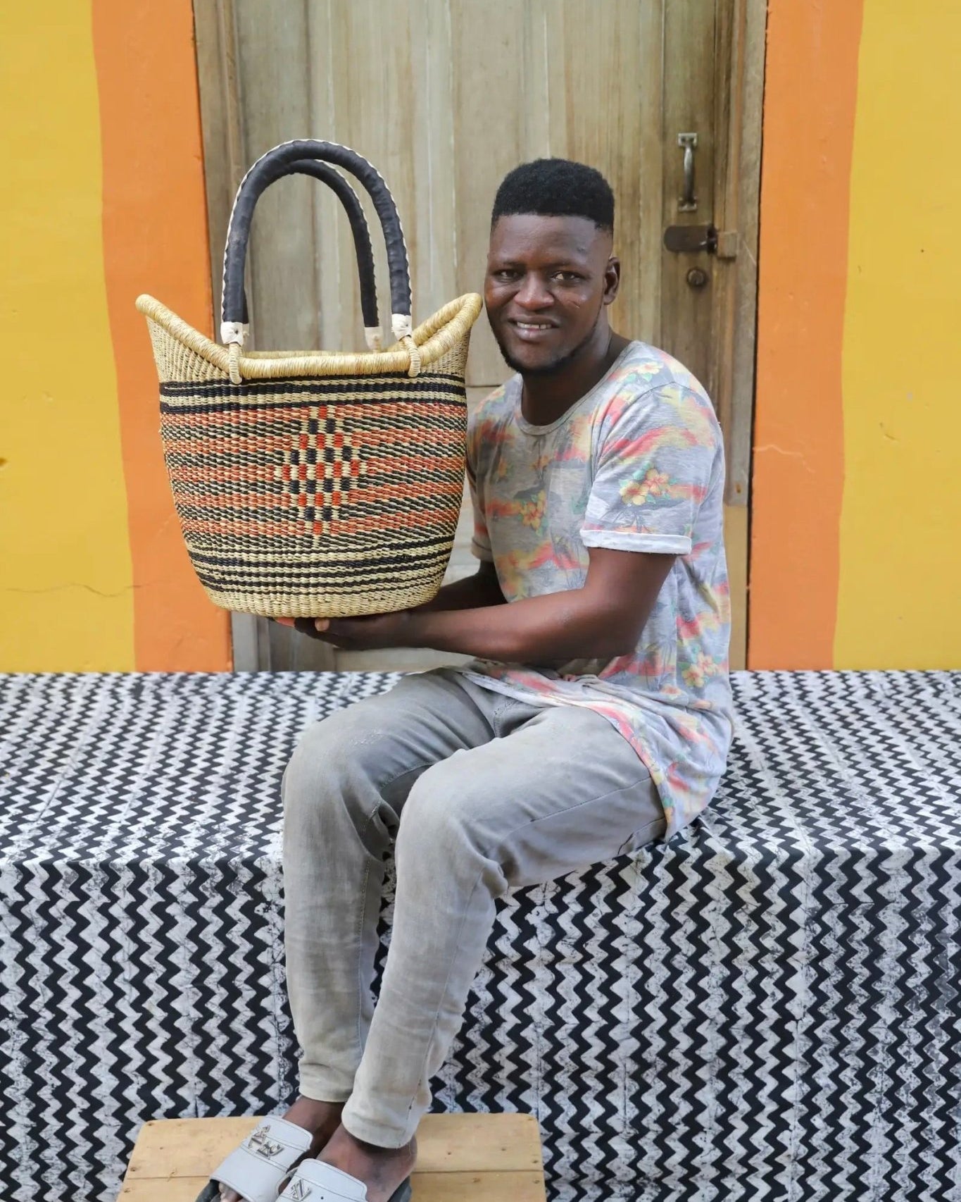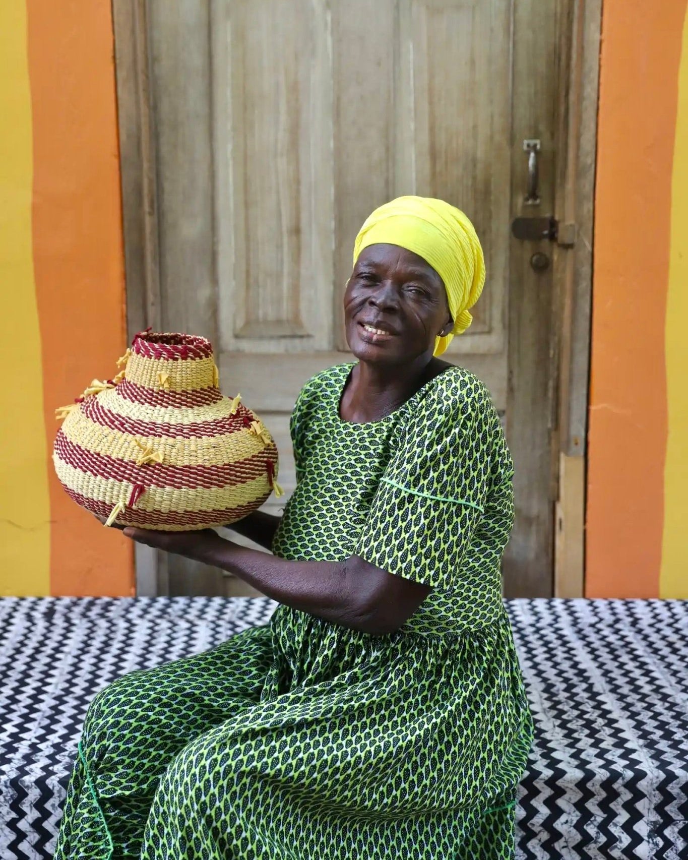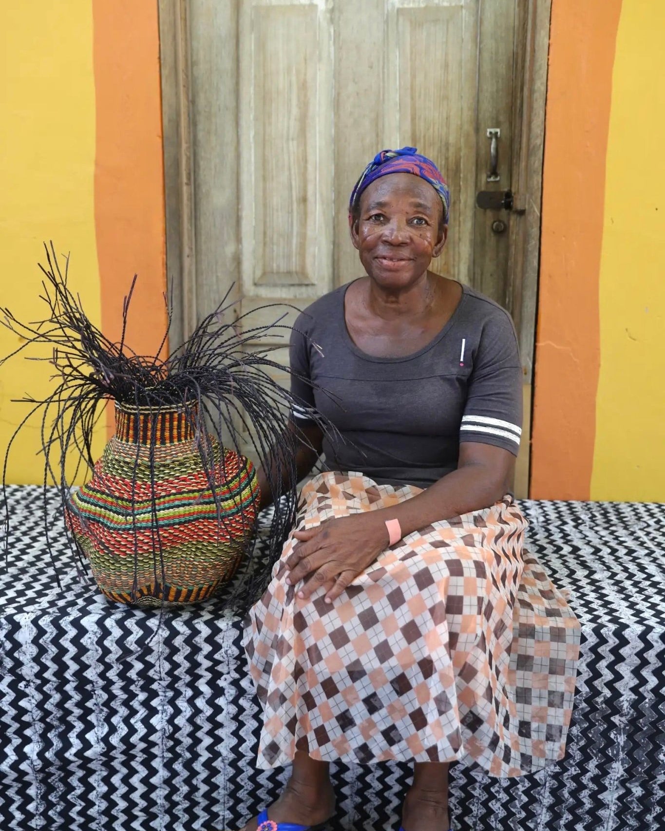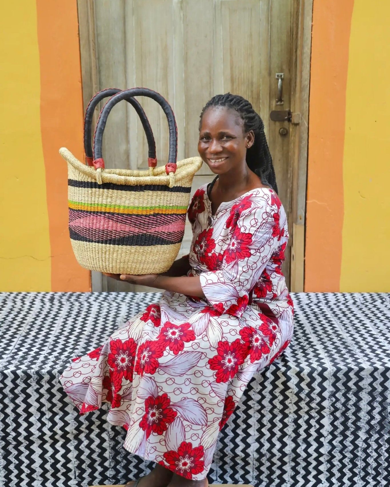 In the photos, the weaver holding each basket is the weaver that created it.