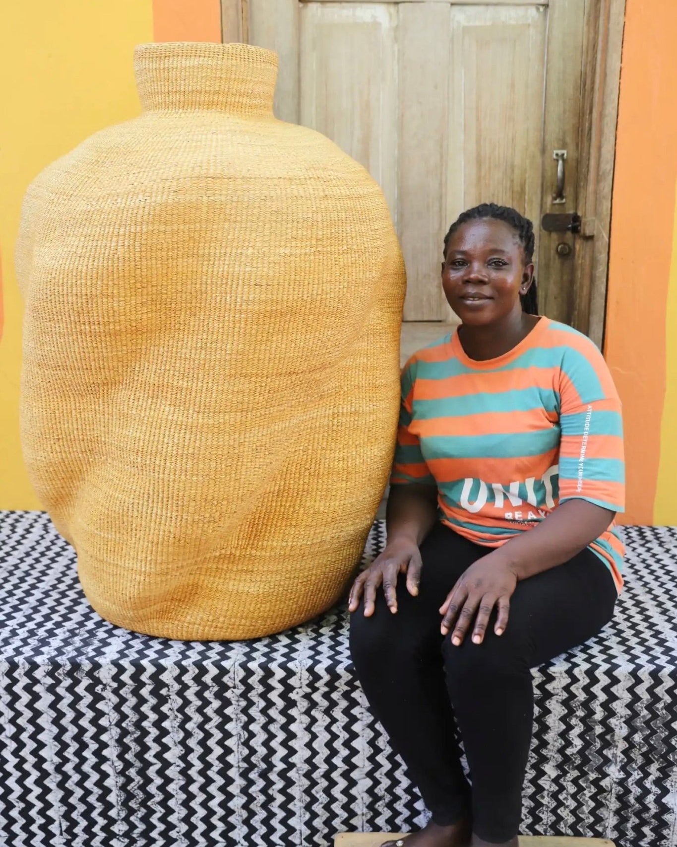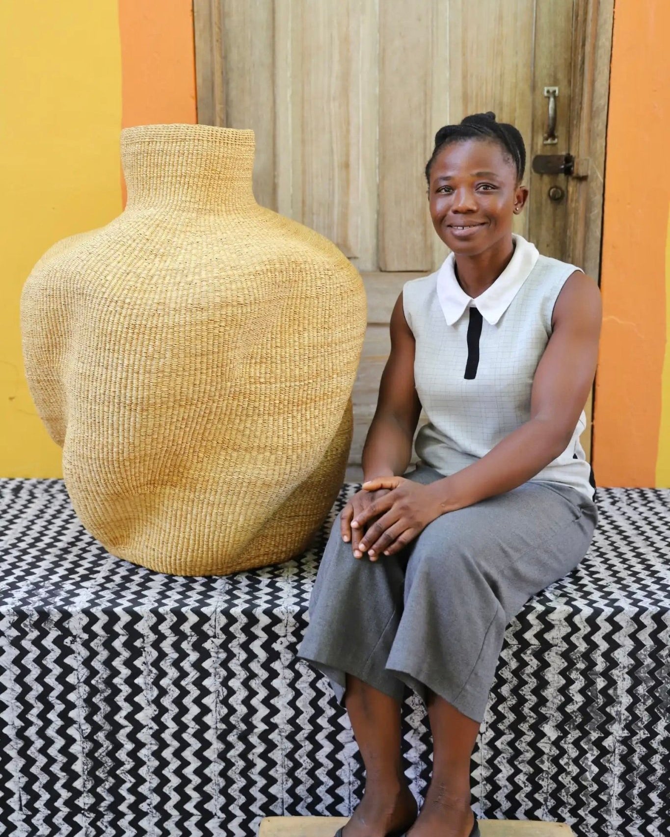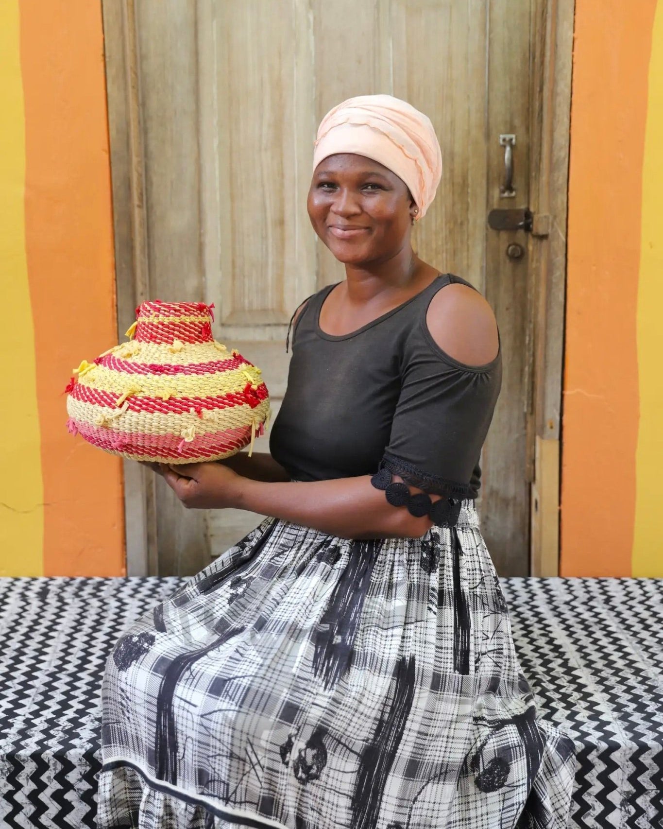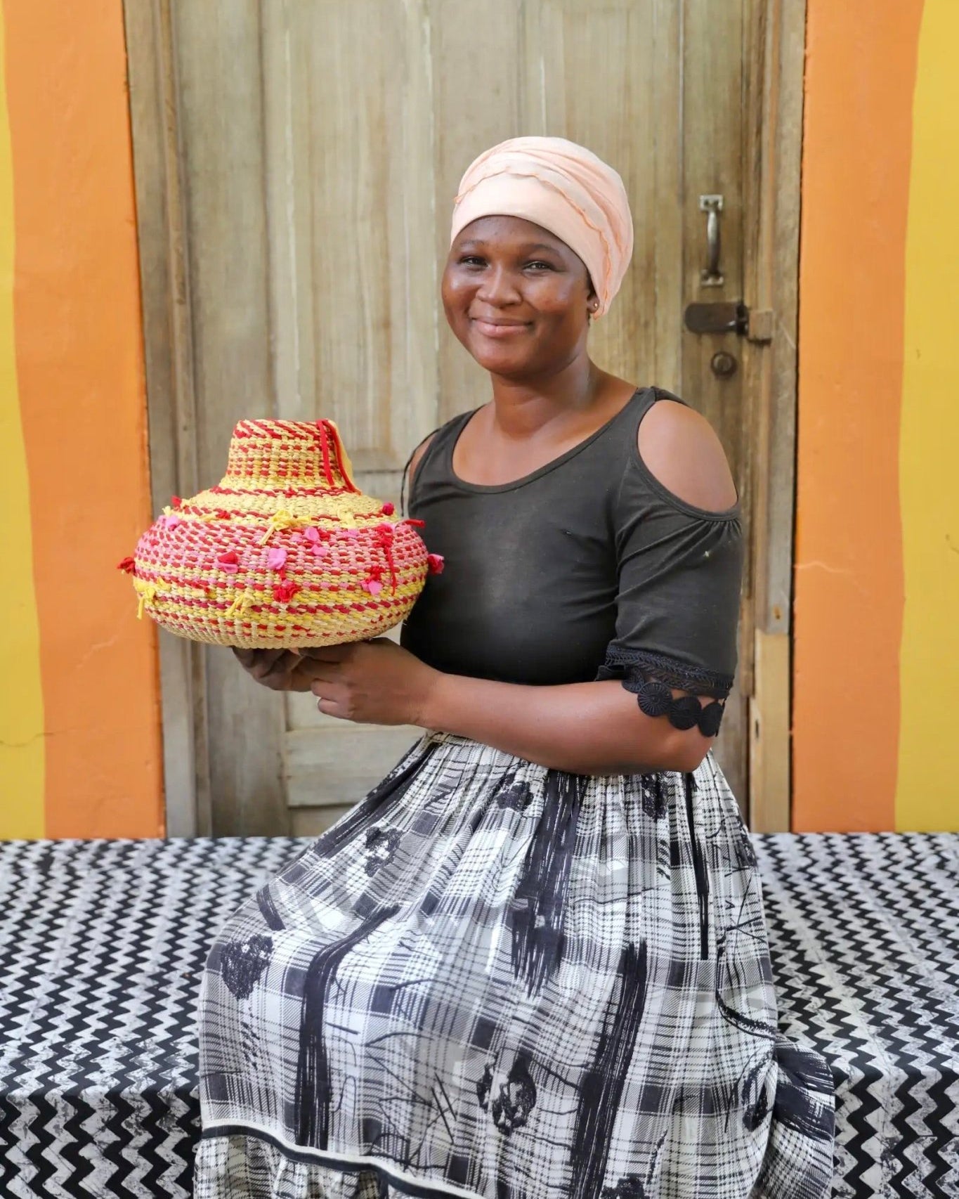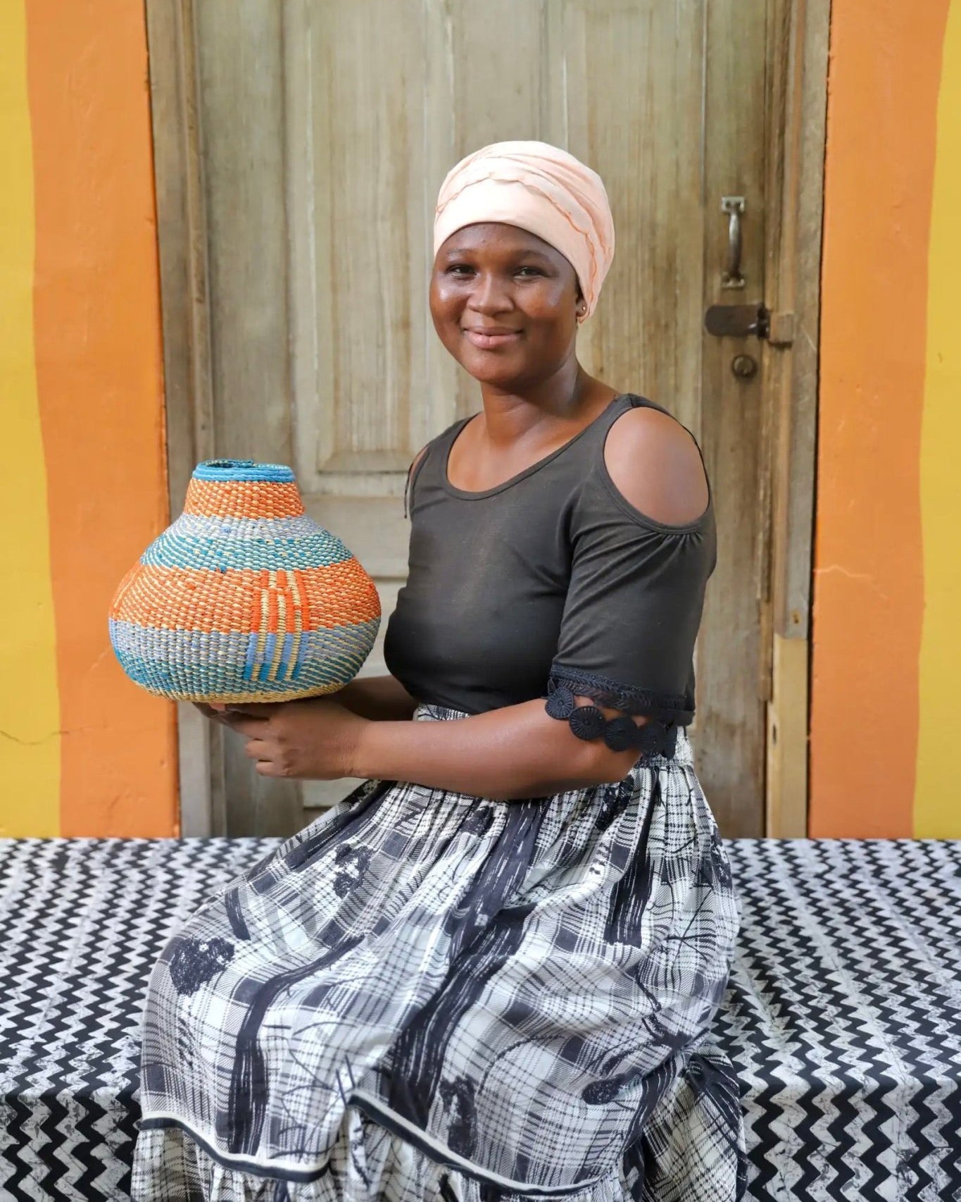In the photos, the weaver holding each basket is the weaver that created it.