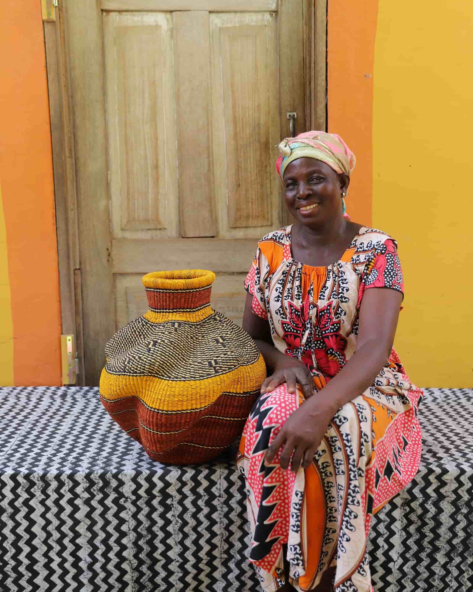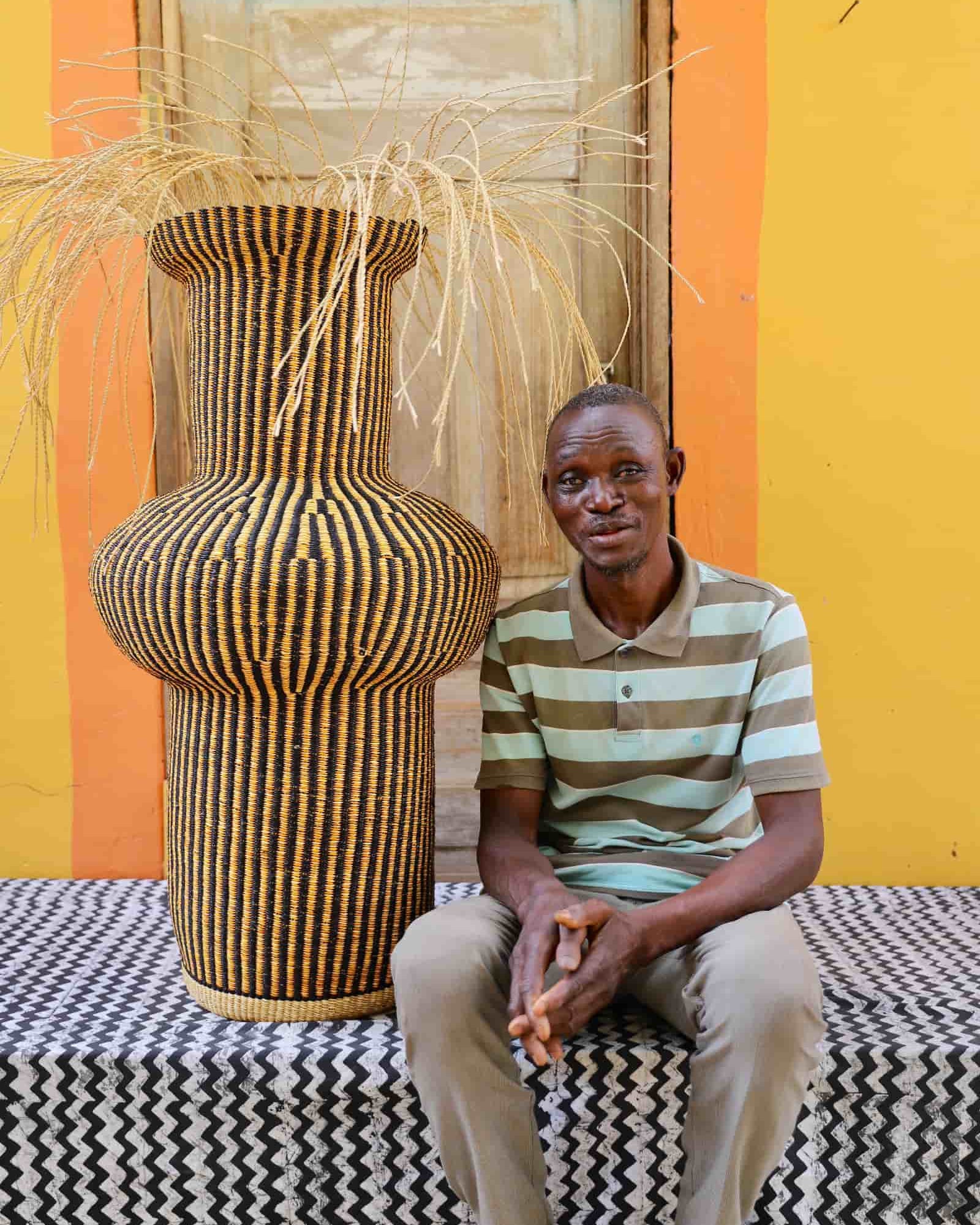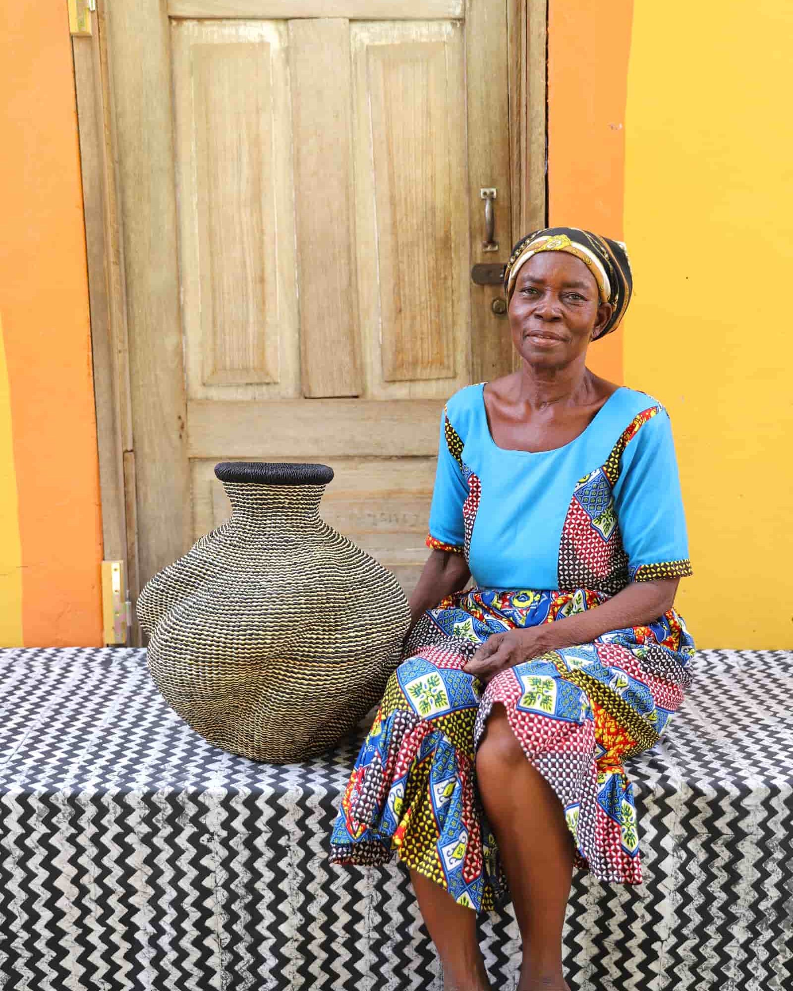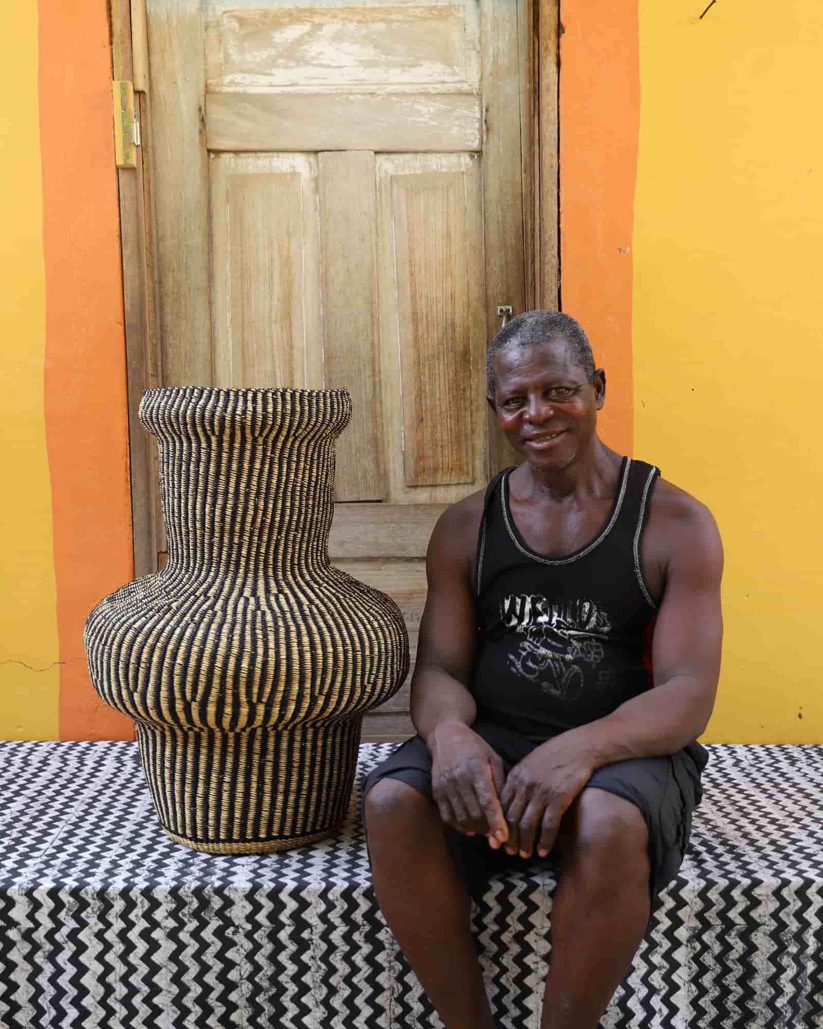 In the photos, the weaver holding each basket is the weaver that created it.