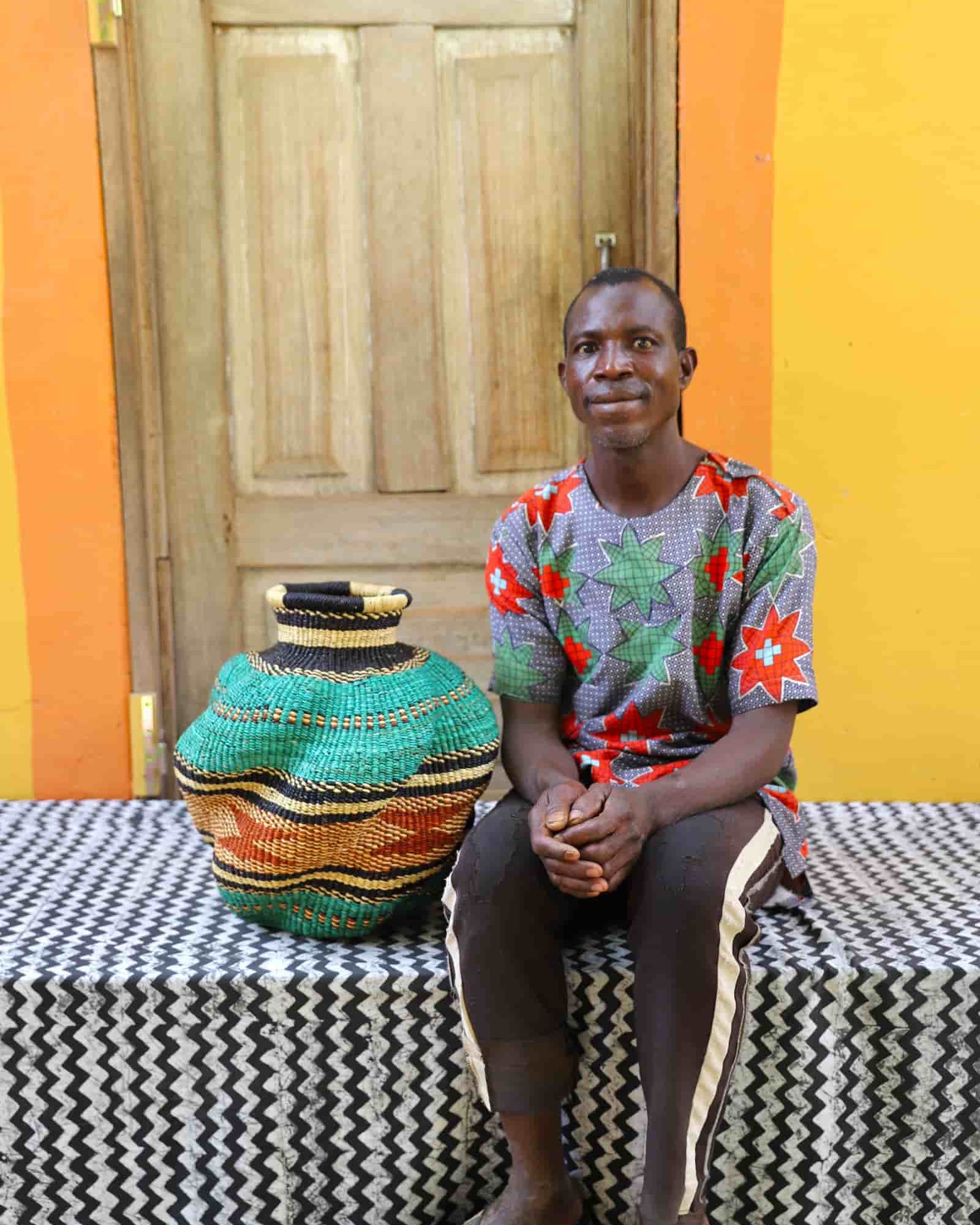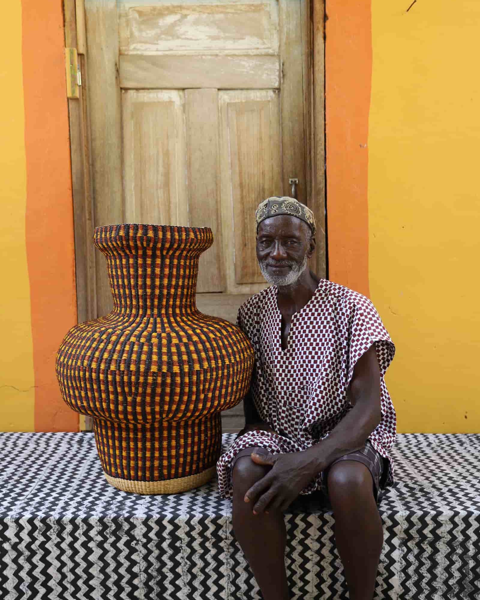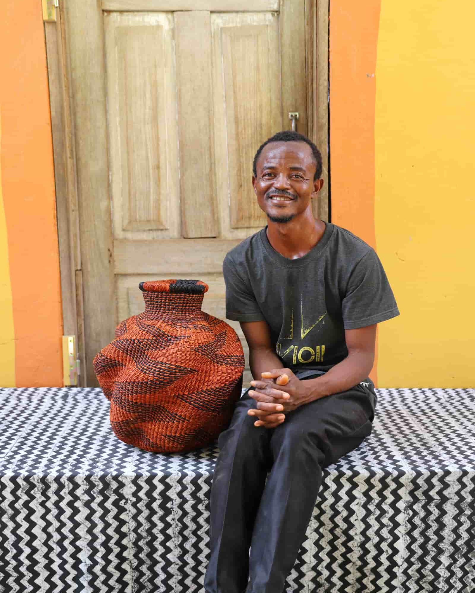 In the photos, the weaver holding each basket is the weaver that created it.