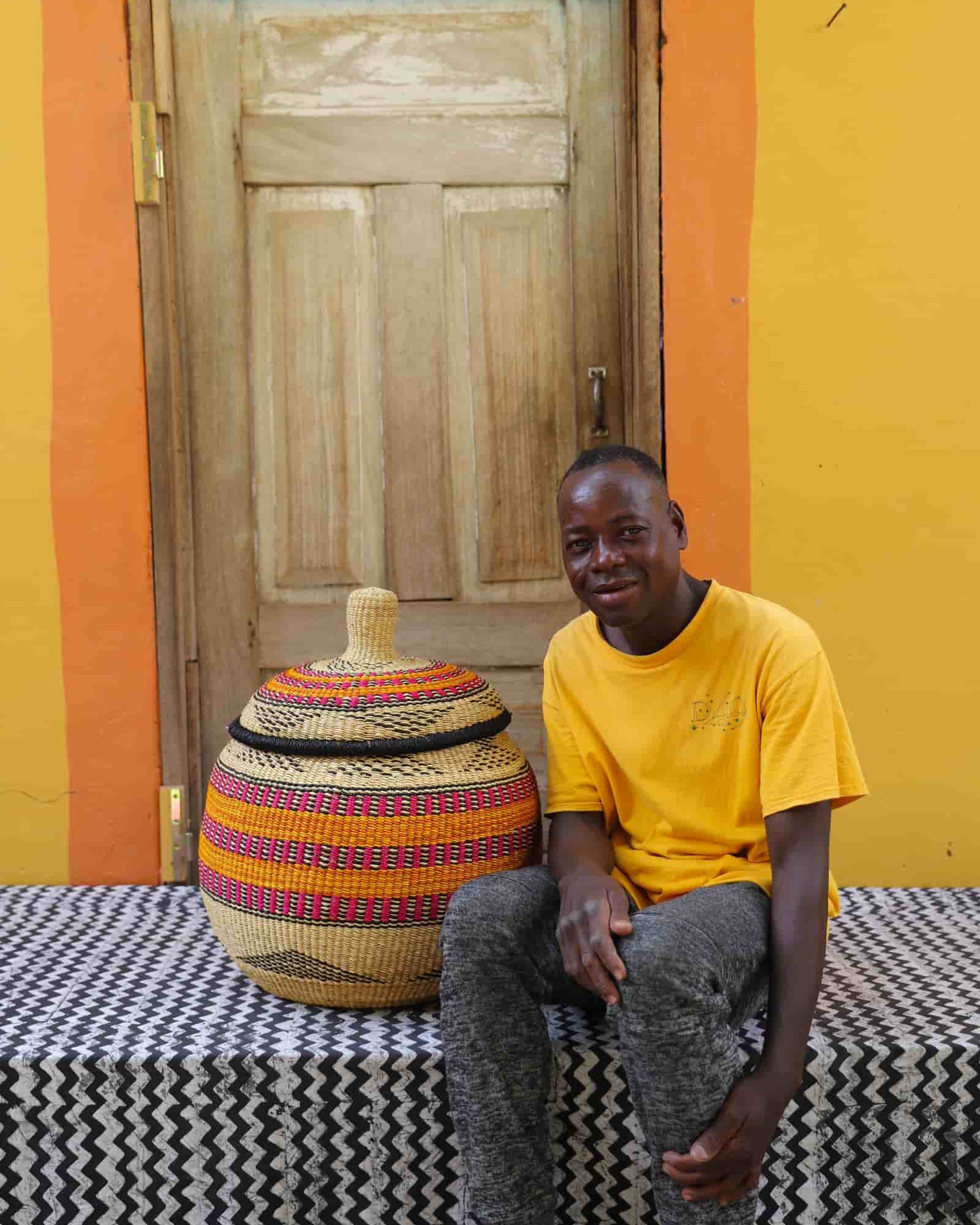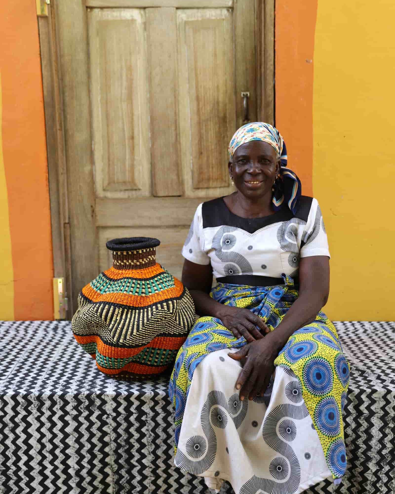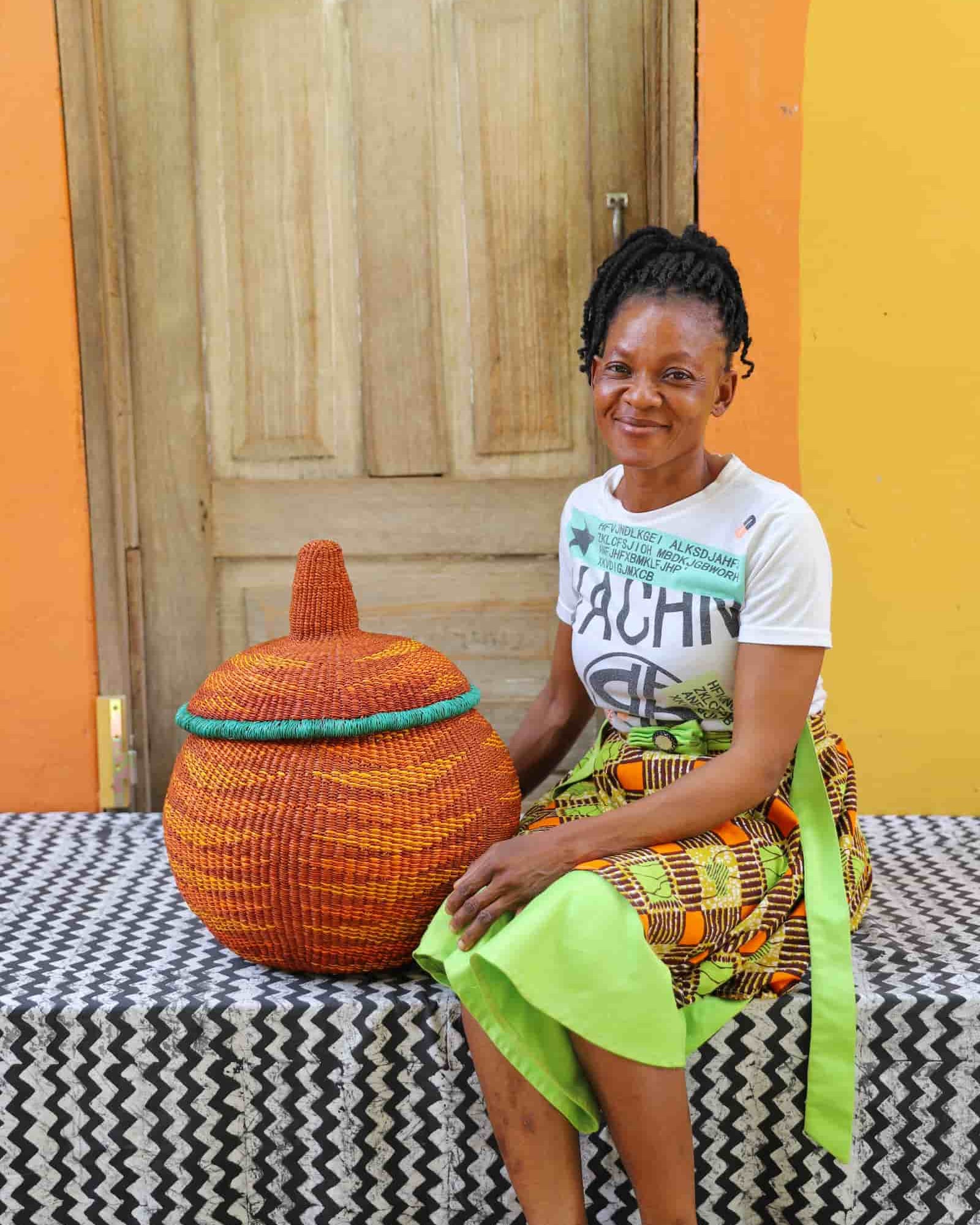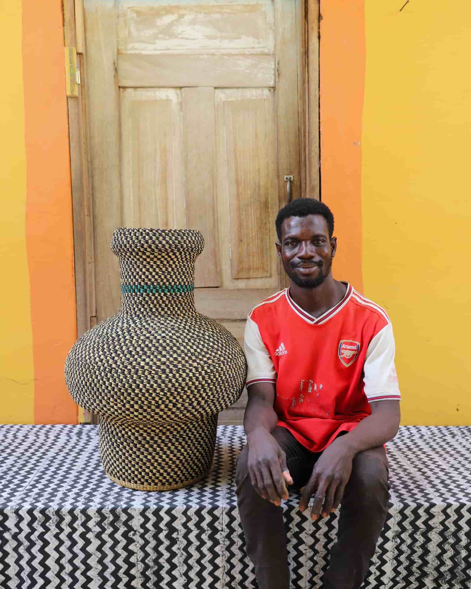 In the photos, the weaver holding each basket is the weaver that created it.