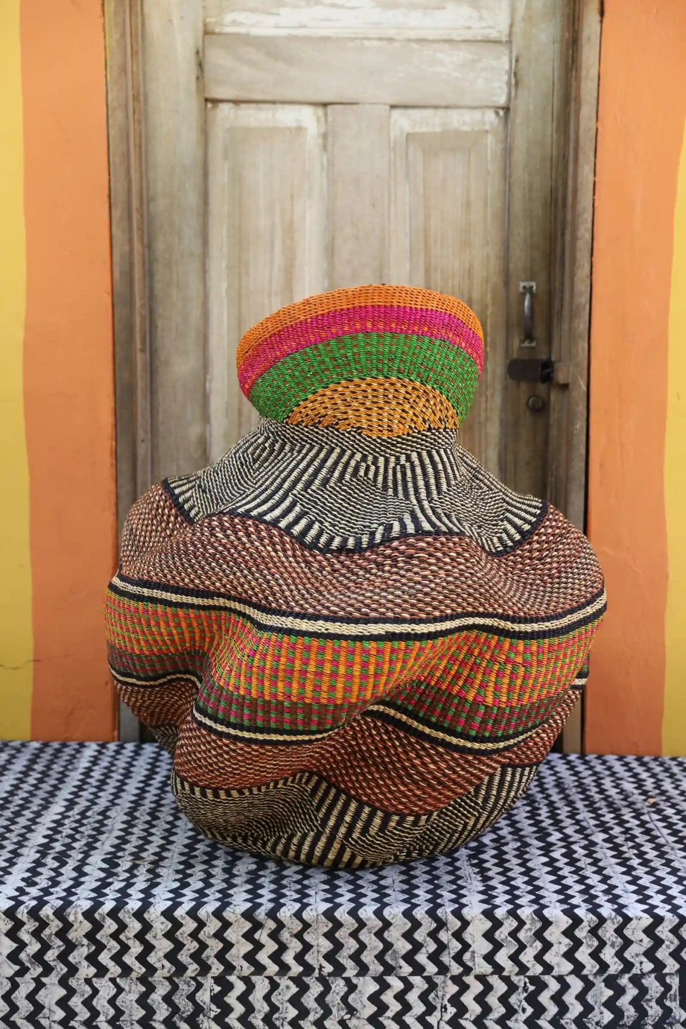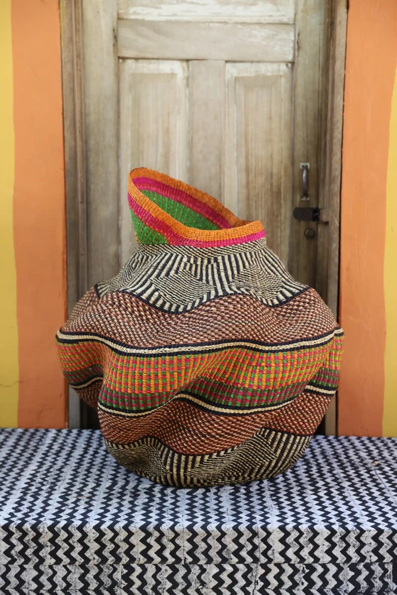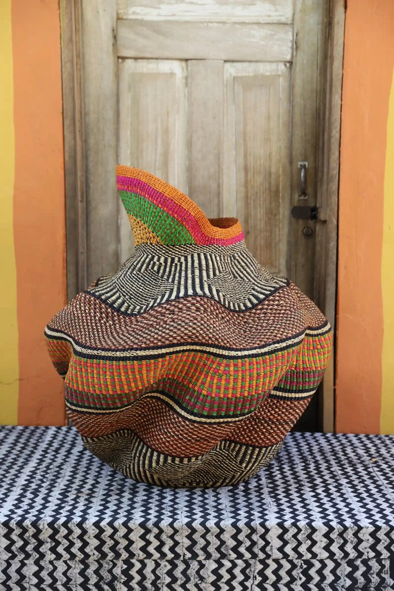 Yoomelingah-yure (Bent Pot) is an art basket that speaks in curves and quiet presence. Handwoven with care, its graceful form captures the stillness of dusk and the beauty of craftsmanship. A sculptural piece for those who see baskets as more than function—this is basketry as poetry.