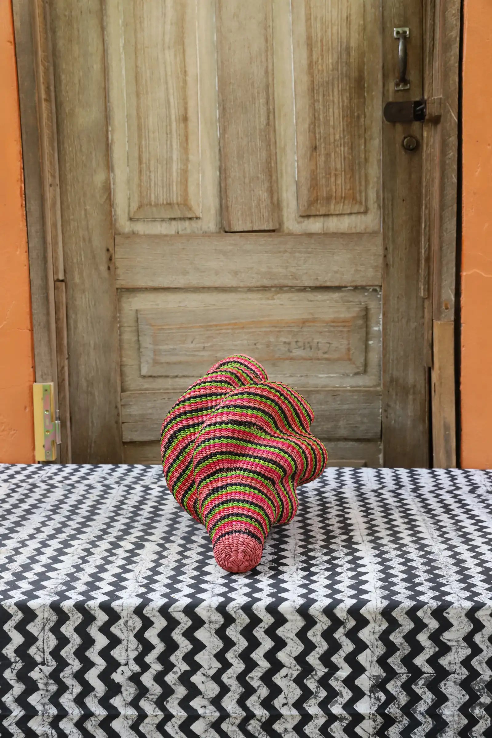 Katayeli-tia (Conch), known as the snail basket in Gurune, is an ode to the feminine. Crafted by artisan Perpetual over 3 1⁄2 weeks, its exquisite spiral design captivates with multi-dimensional beauty. Perfect as a striking statement in an entrance or overlooking the ocean in your beach home.