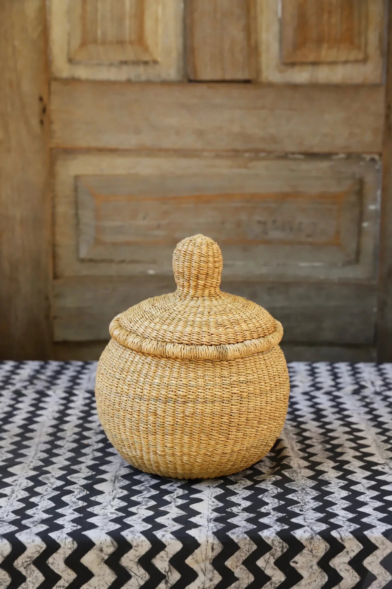 Also Known as Kuope-oh, Orbit was the trusted keeper of flour, salt, and other essentials for preparing TZ, a staple dish in Ghana. It's perfectly fitting lid made it ideal for gently storing ingredients. Orbit serves as a beautiful storage solution and decorative art piece, bringing tradition into the home while keeping spaces functional and graceful.