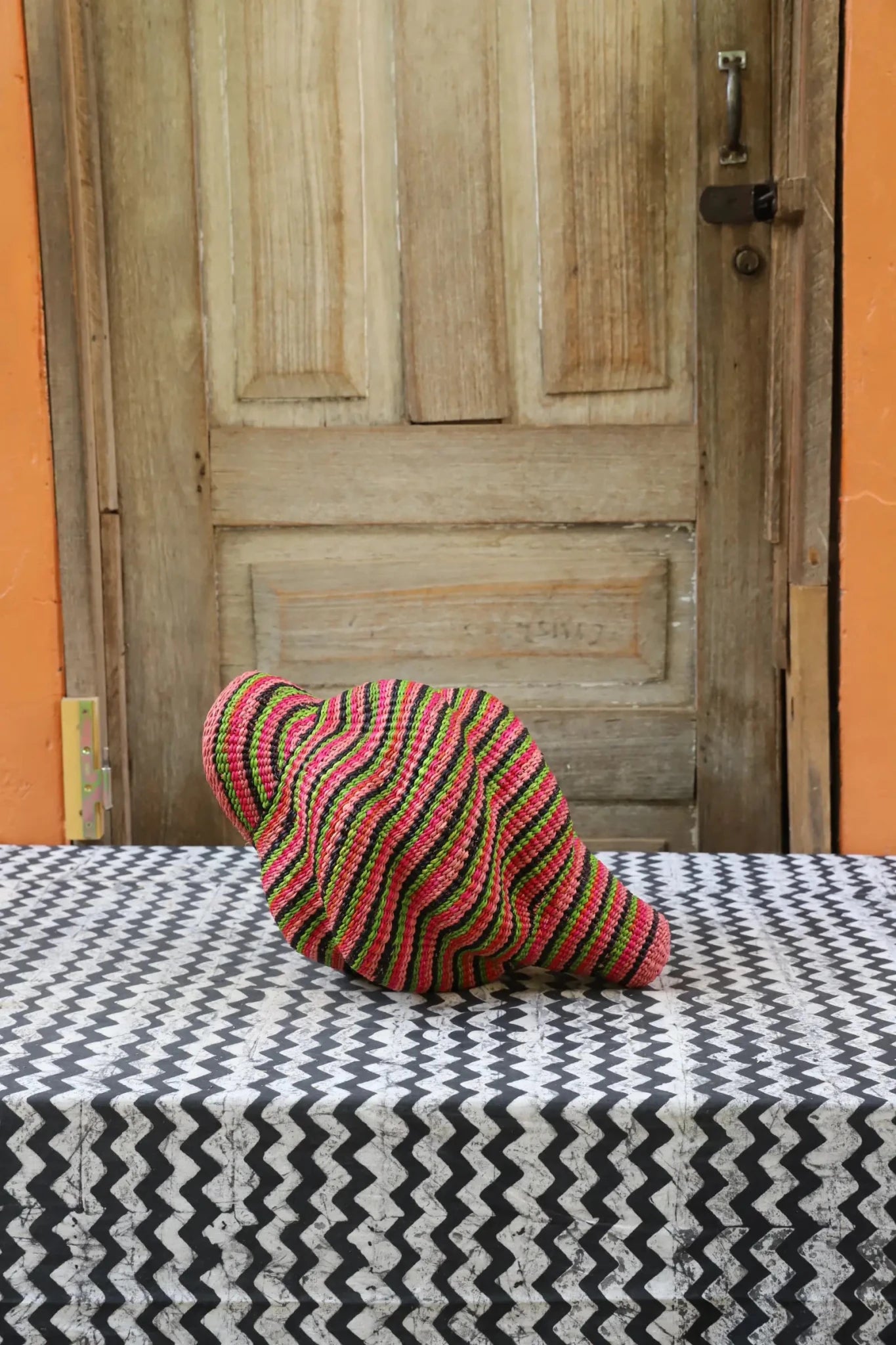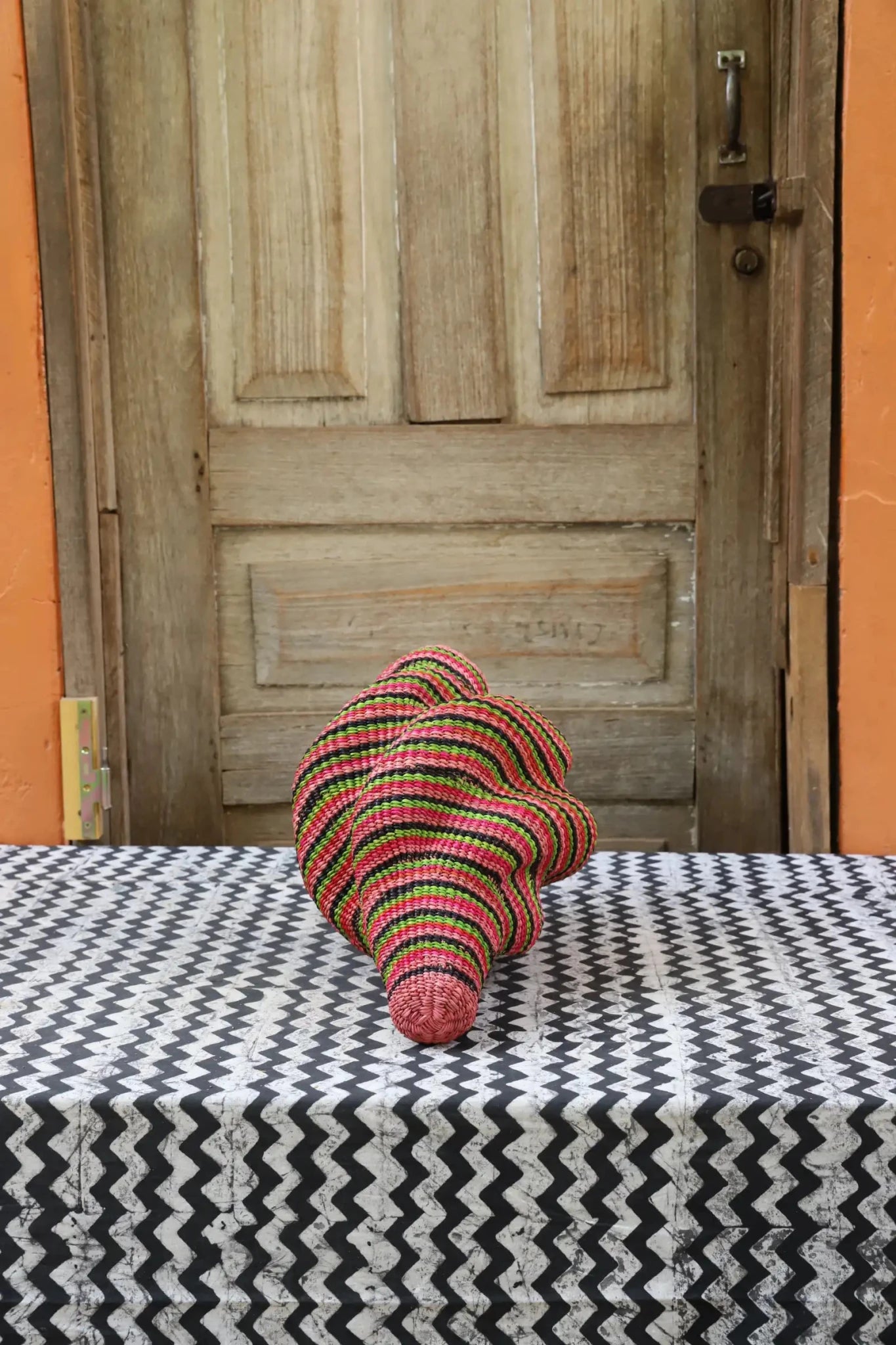 Katayeli-tia (Conch), known as the snail basket in Gurune, is an ode to the feminine. Crafted by artisan Perpetual over 3 1⁄2 weeks, its exquisite spiral design captivates with multi-dimensional beauty. Perfect as a striking statement in an entrance or overlooking the ocean in your beach home.