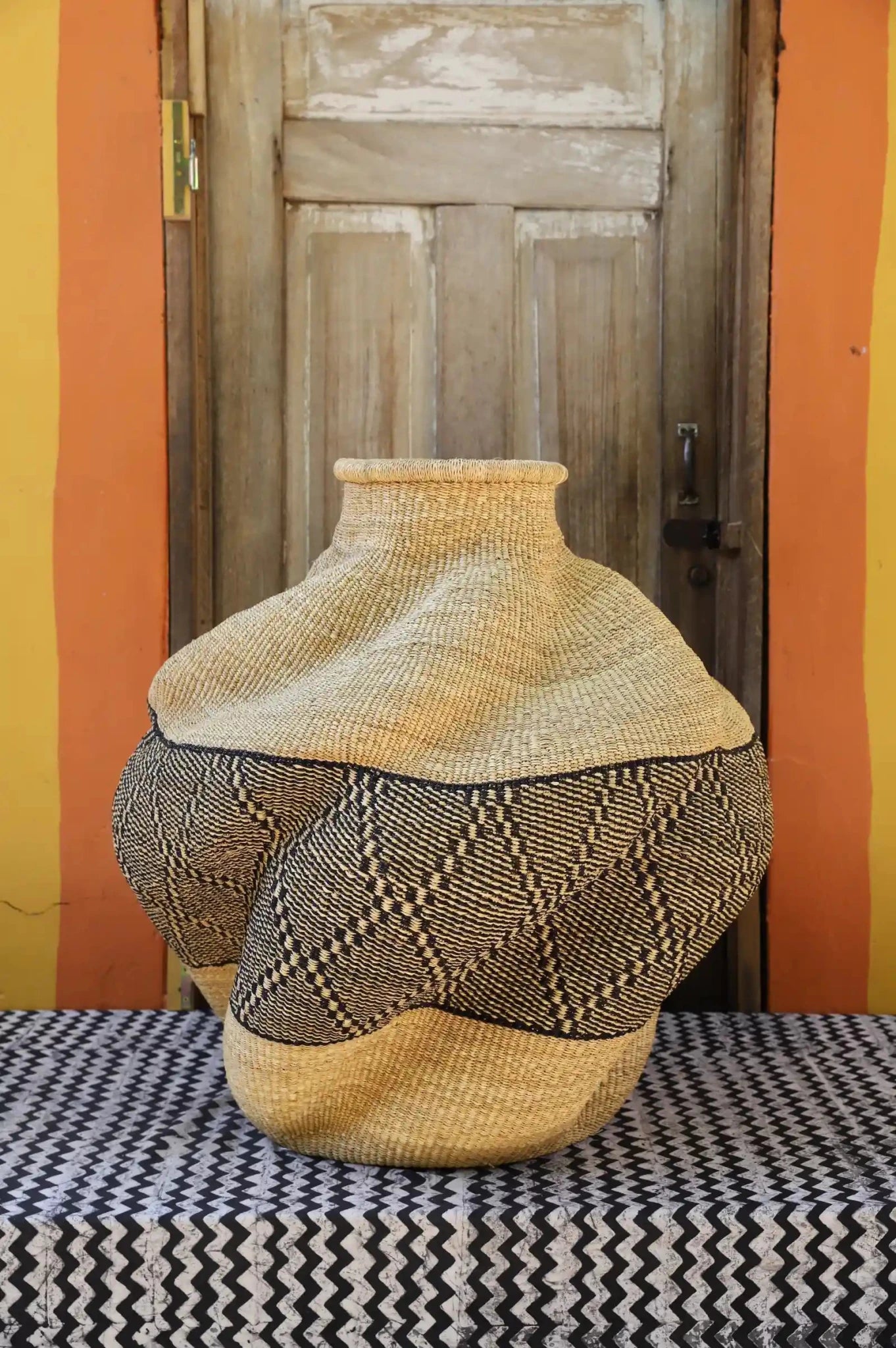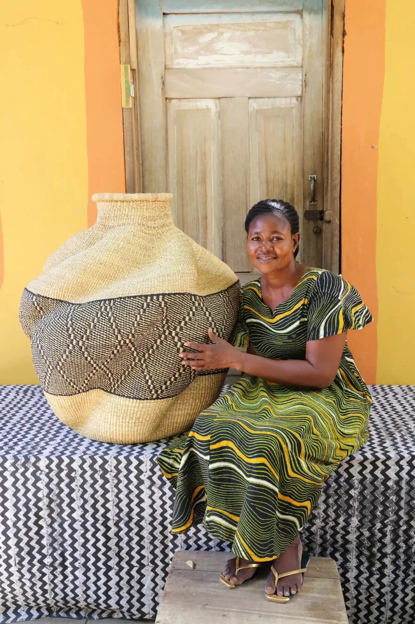 In the Gurune language of Ghana’s Upper East Region, De-engo means ‘a meeting of chiefs.’ These vibrant gatherings are filled with color, conversation, music, and dance. Our artisan weaver beautifully captures this spirit in the basket’s twisting form and striking use of color. Exclusive to The Baba Tree, this one-of-a-kind piece is perfect for the discerning collector.