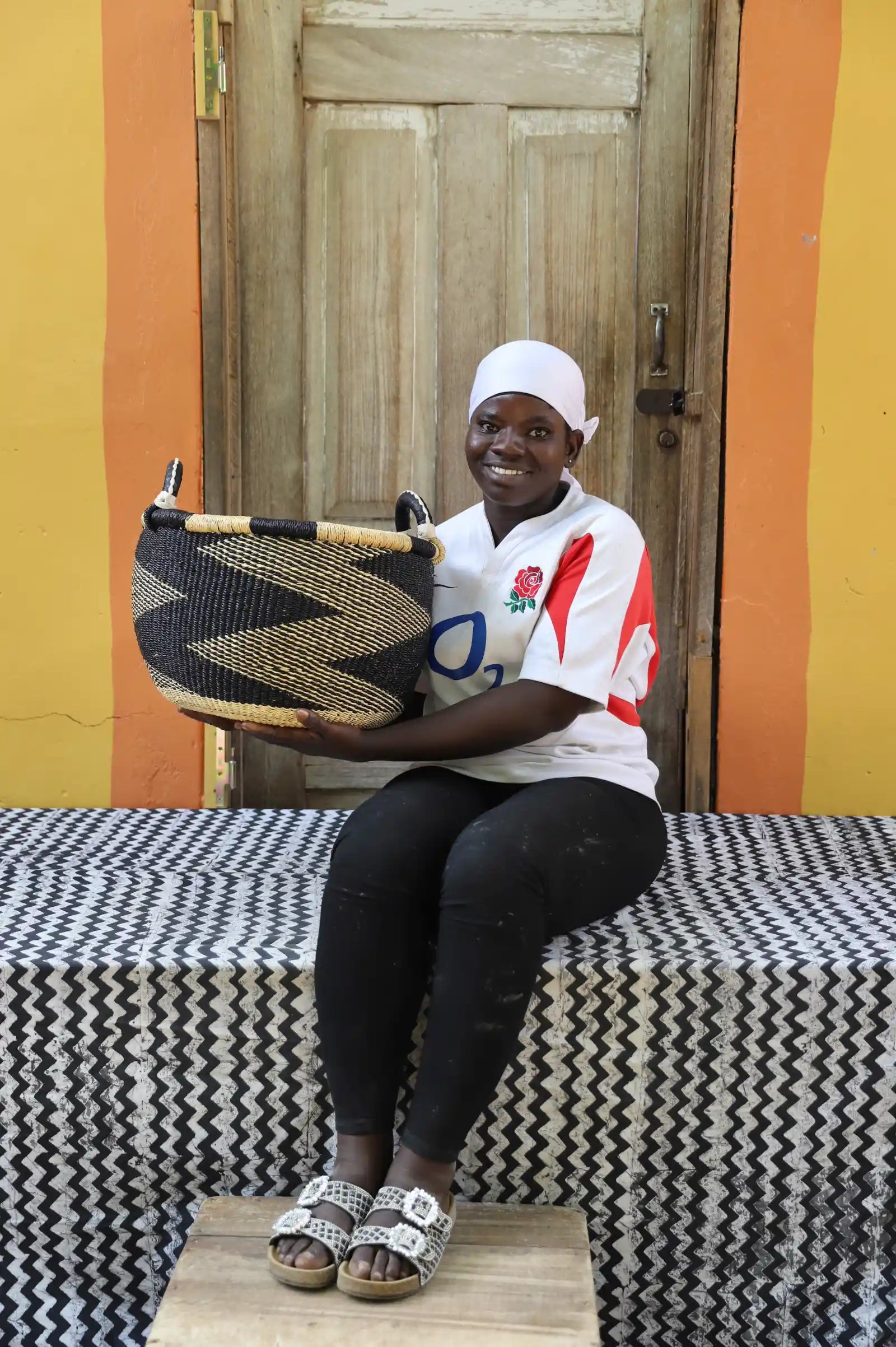 Gbenka, named after the traditional sieve used to filter pito (a beloved millet brew) is one of the first basket forms woven in Ghana’s Upper East Region. A symbol of hospitality and community, it carries the spirit of shared celebration. Now reimagined as functional storage for holding fruits, textiles, or treasures.