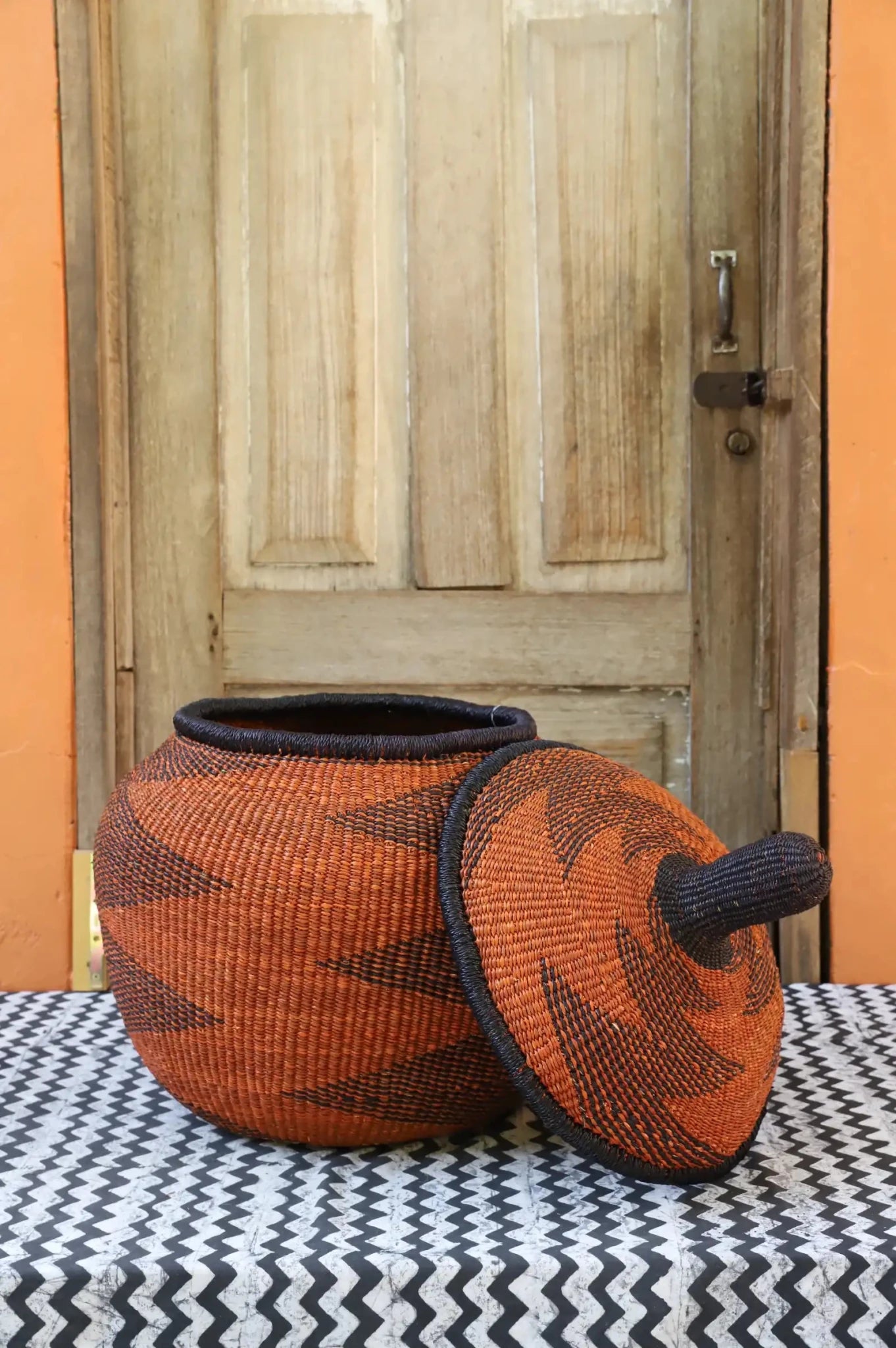Also Known as Kuope-oh, Orbit was the trusted keeper of flour, salt, and other essentials for preparing TZ, a staple dish in Ghana. It's perfectly fitting lid made it ideal for gently storing ingredients. Orbit serves as a beautiful storage solution and decorative art piece, bringing tradition into the home while keeping spaces functional and graceful.