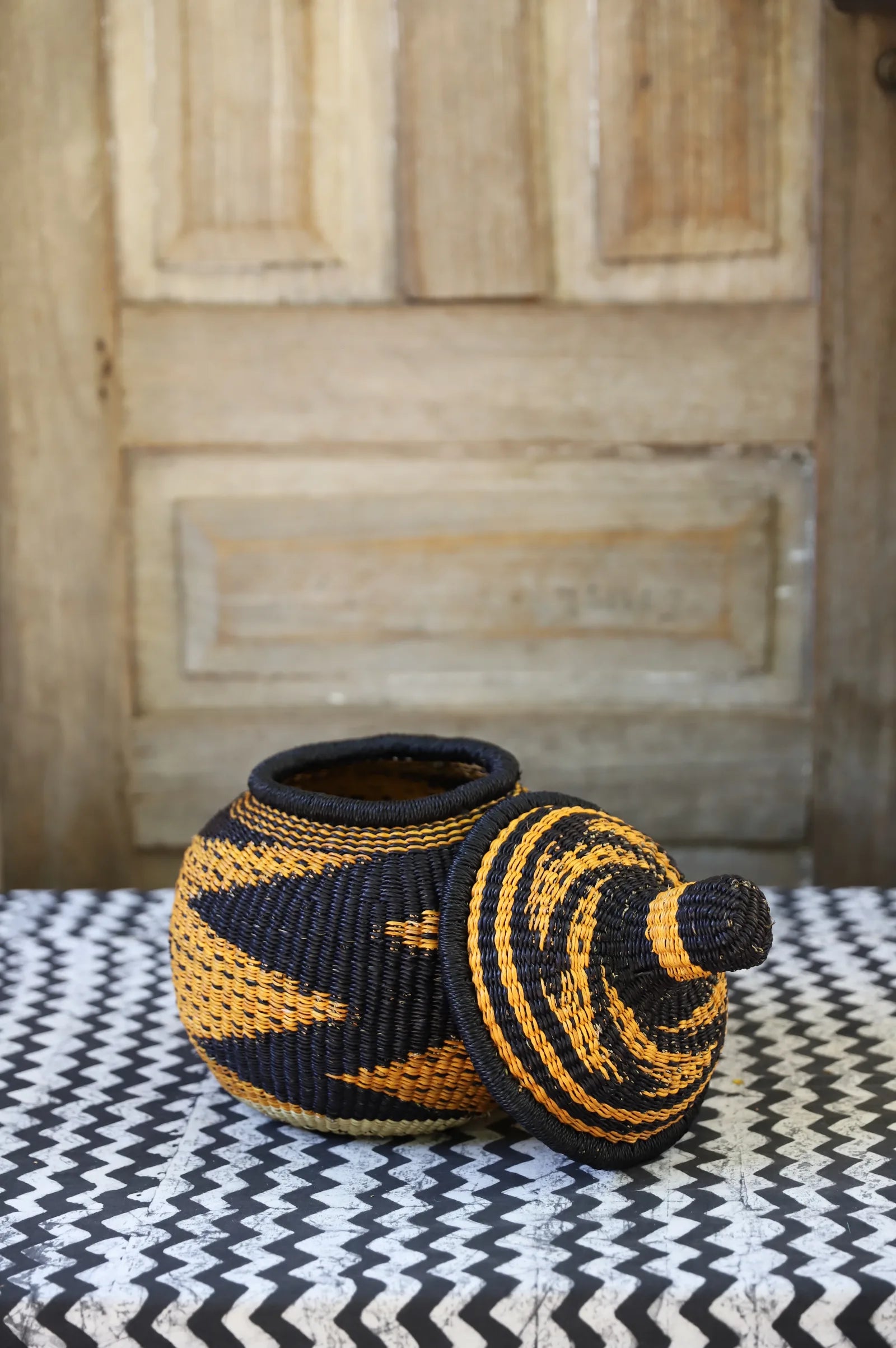 Also Known as Kuope-oh, Orbit was the trusted keeper of flour, salt, and other essentials for preparing TZ, a staple dish in Ghana. It's perfectly fitting lid made it ideal for gently storing ingredients. Orbit serves as a beautiful storage solution and decorative art piece, bringing tradition into the home while keeping spaces functional and graceful.