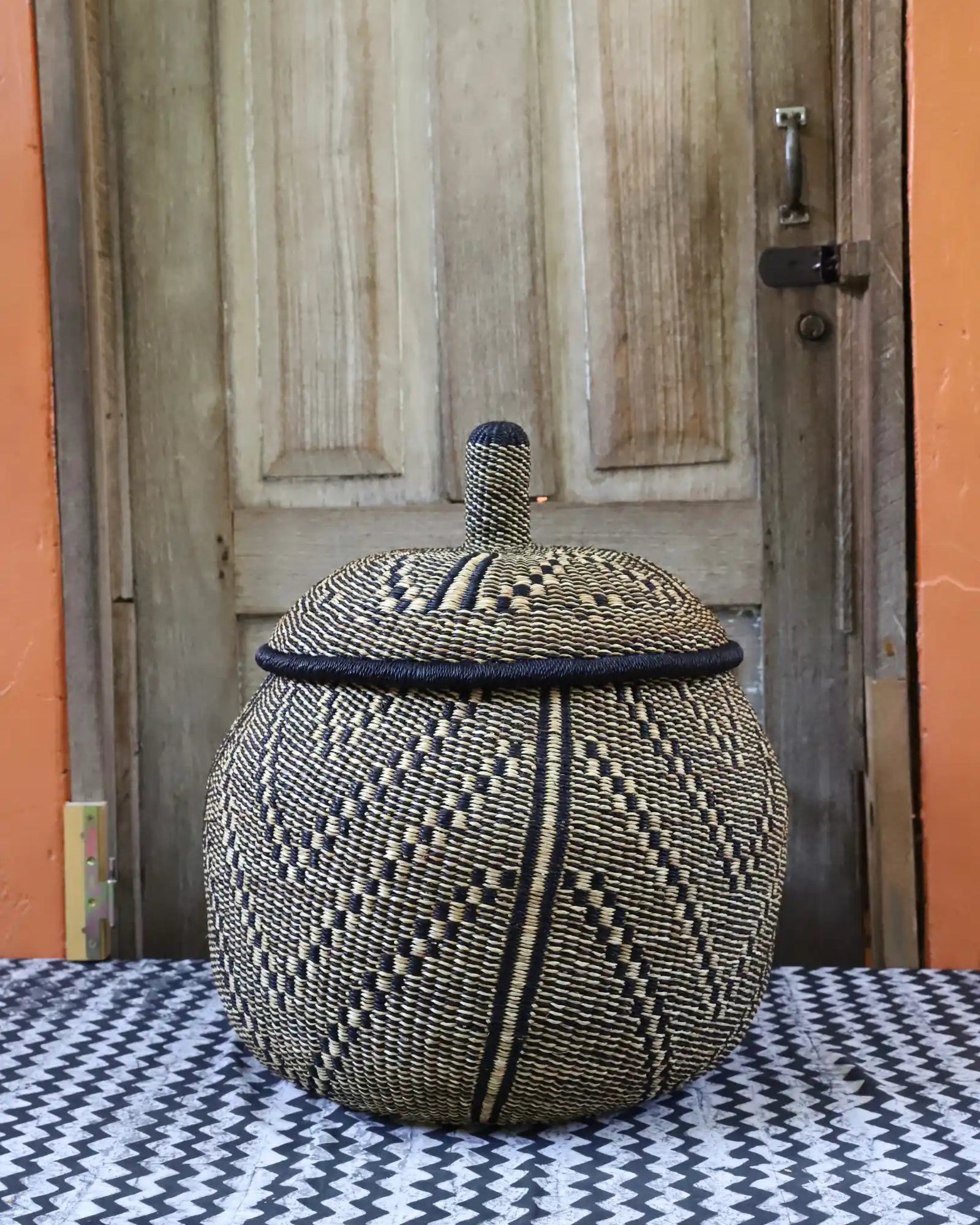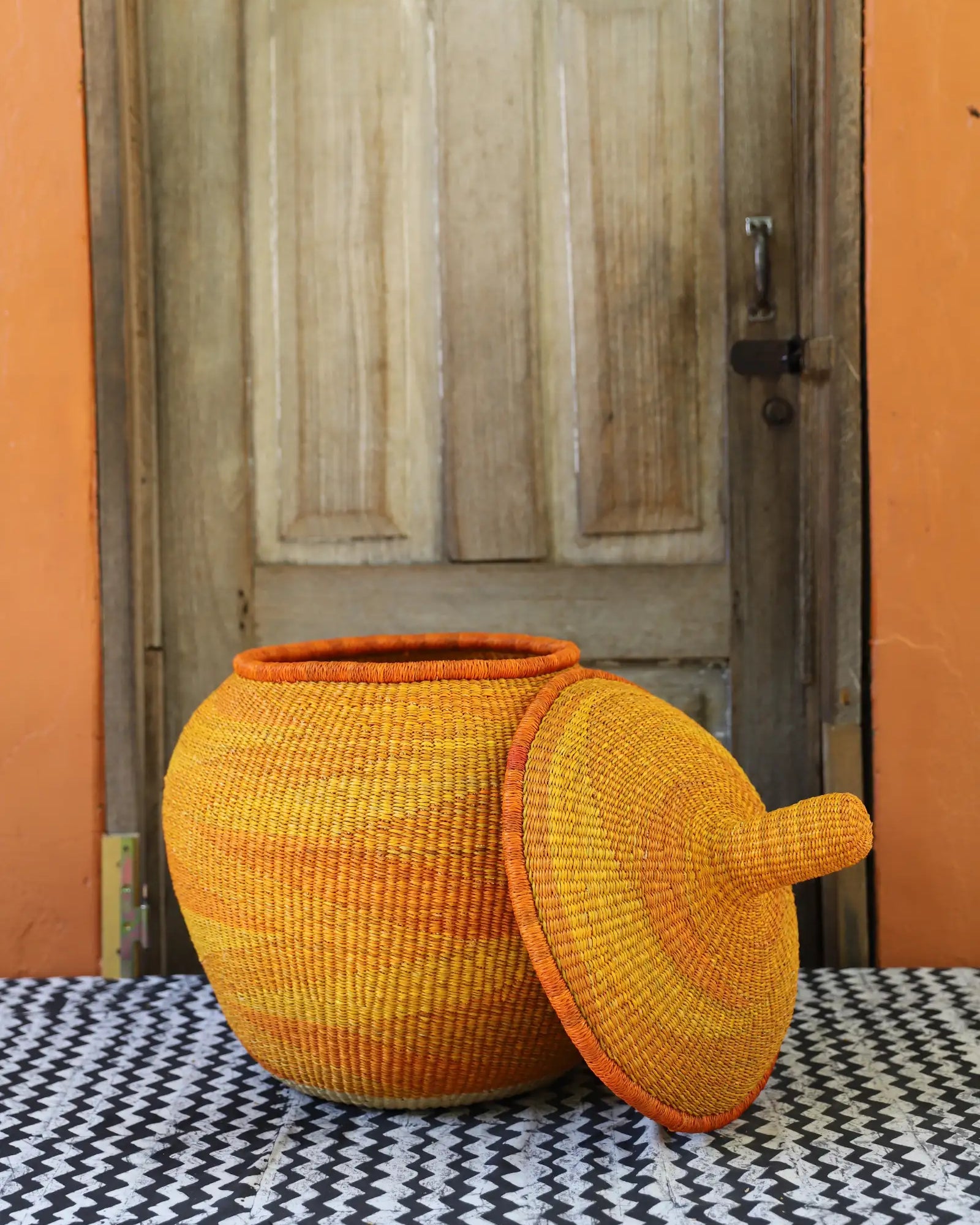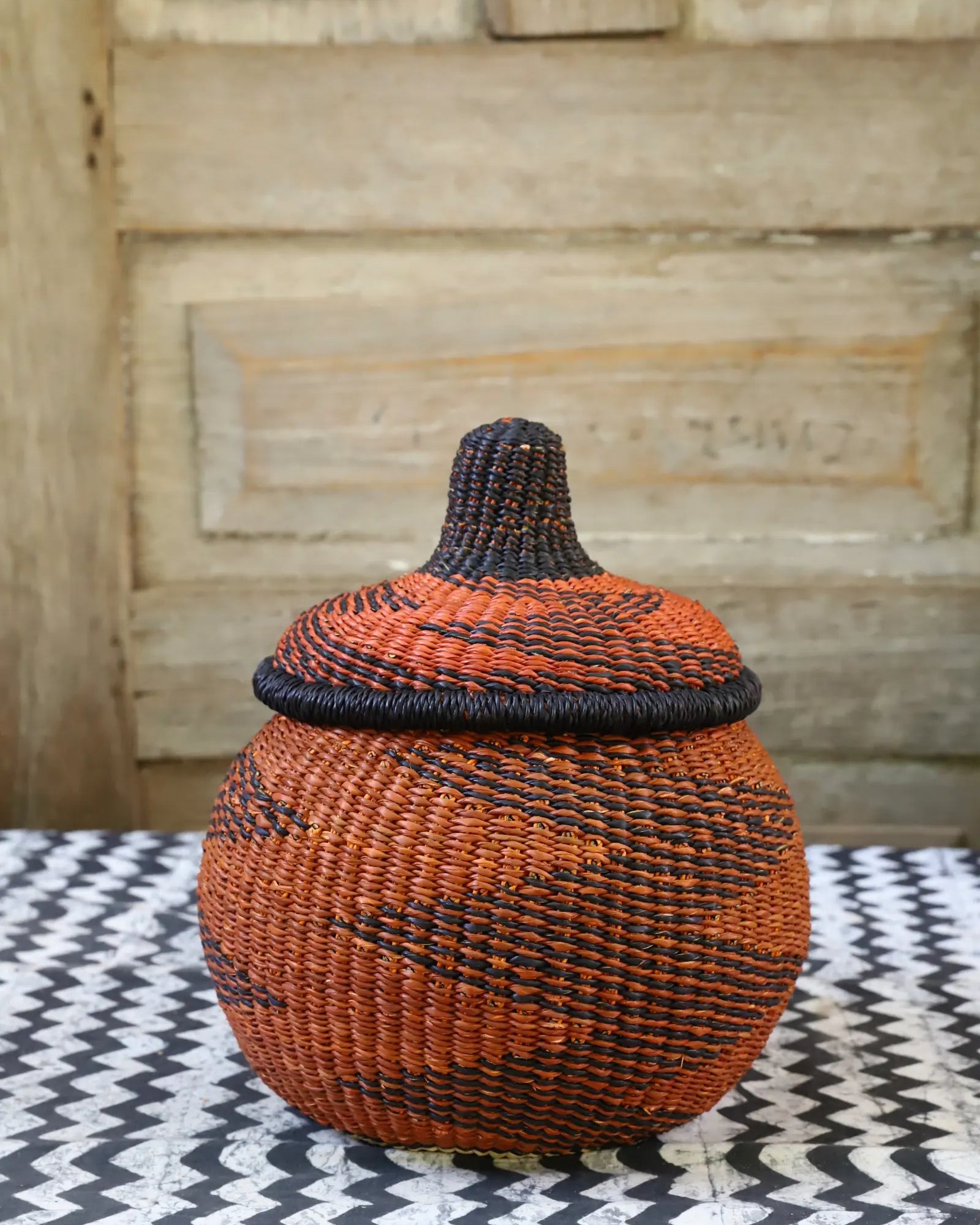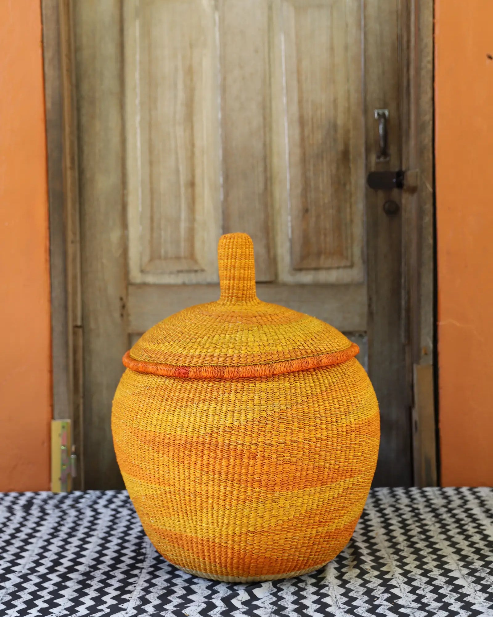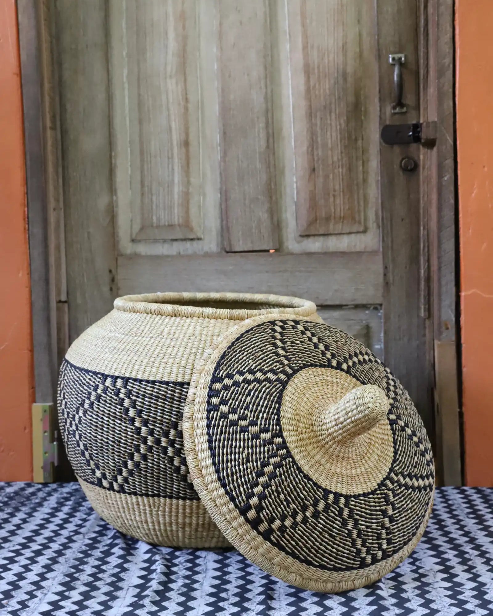 Also Known as Kuope-oh, Orbit was the trusted keeper of flour, salt, and other essentials for preparing TZ, a staple dish in Ghana. It's perfectly fitting lid made it ideal for gently storing ingredients. Orbit serves as a beautiful storage solution and decorative art piece, bringing tradition into the home while keeping spaces functional and graceful.