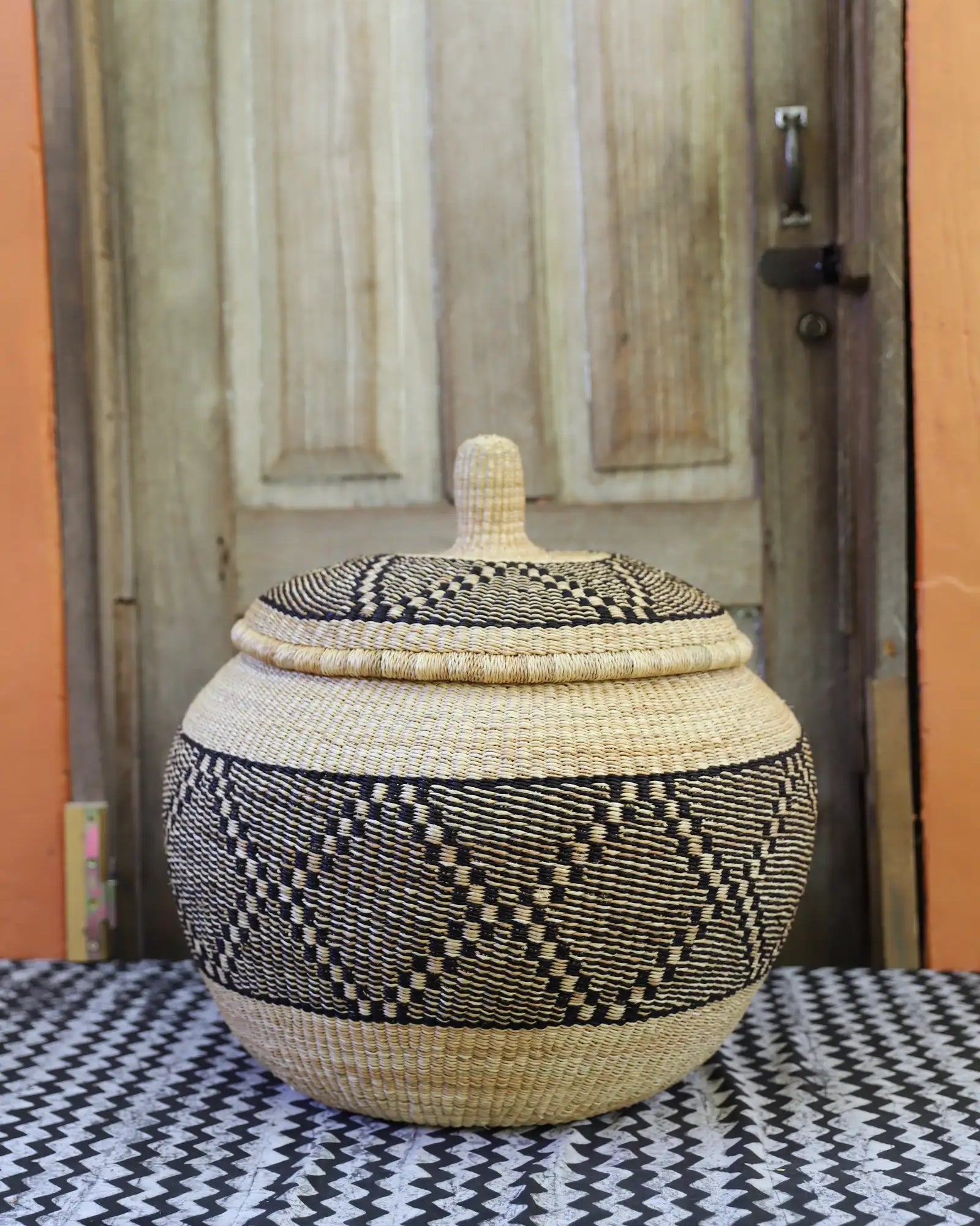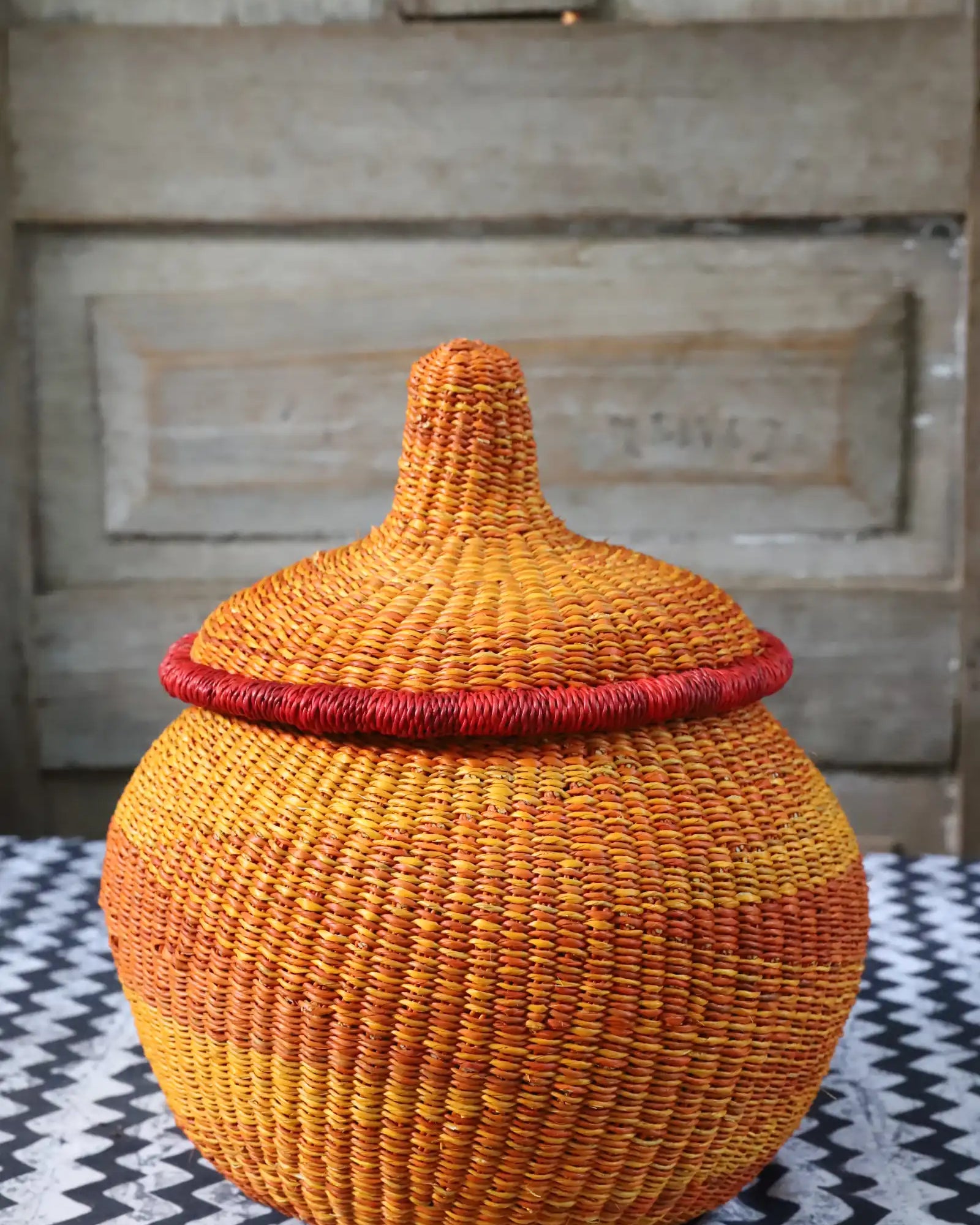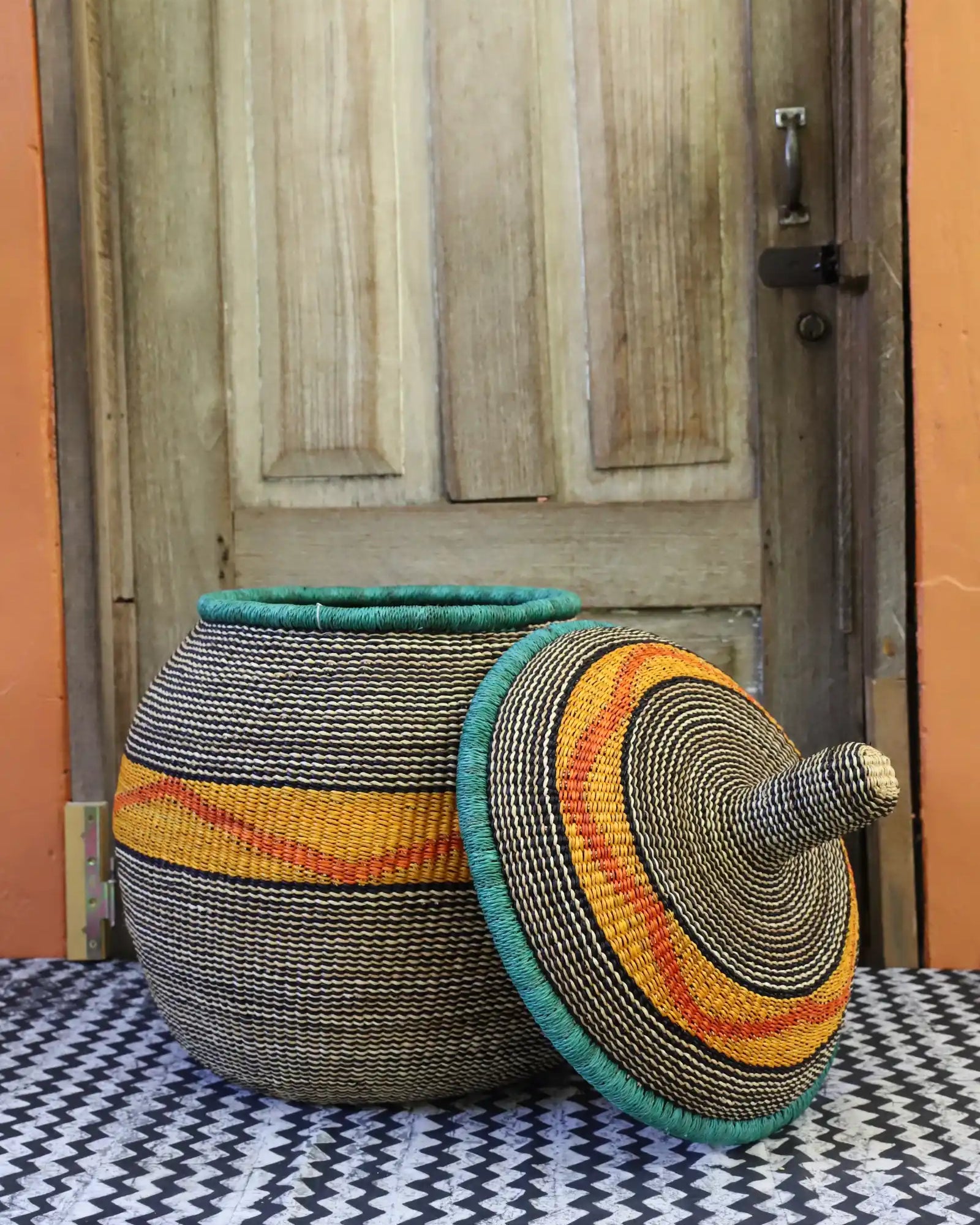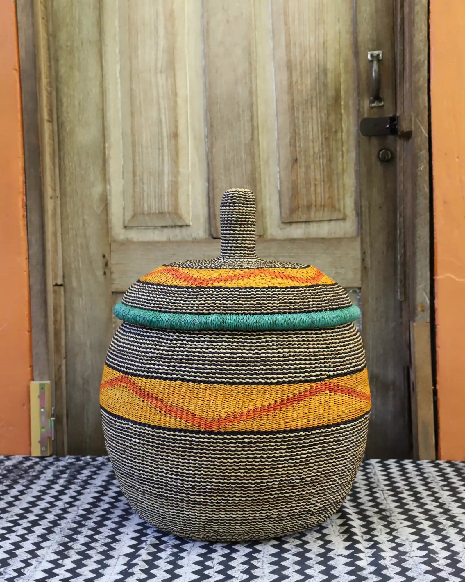 Also Known as Kuope-oh, Orbit was the trusted keeper of flour, salt, and other essentials for preparing TZ, a staple dish in Ghana. It's perfectly fitting lid made it ideal for gently storing ingredients. Orbit serves as a beautiful storage solution and decorative art piece, bringing tradition into the home while keeping spaces functional and graceful.
