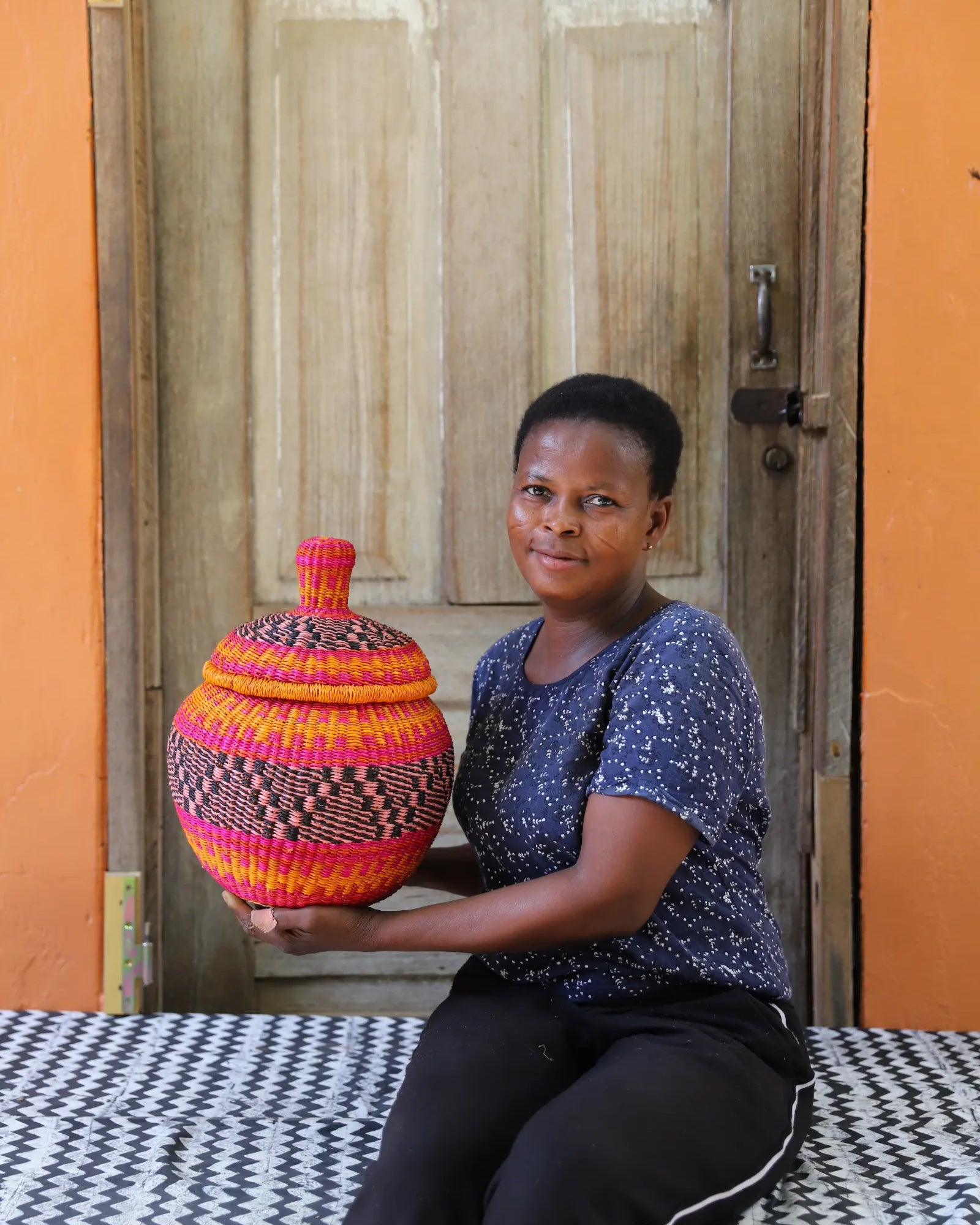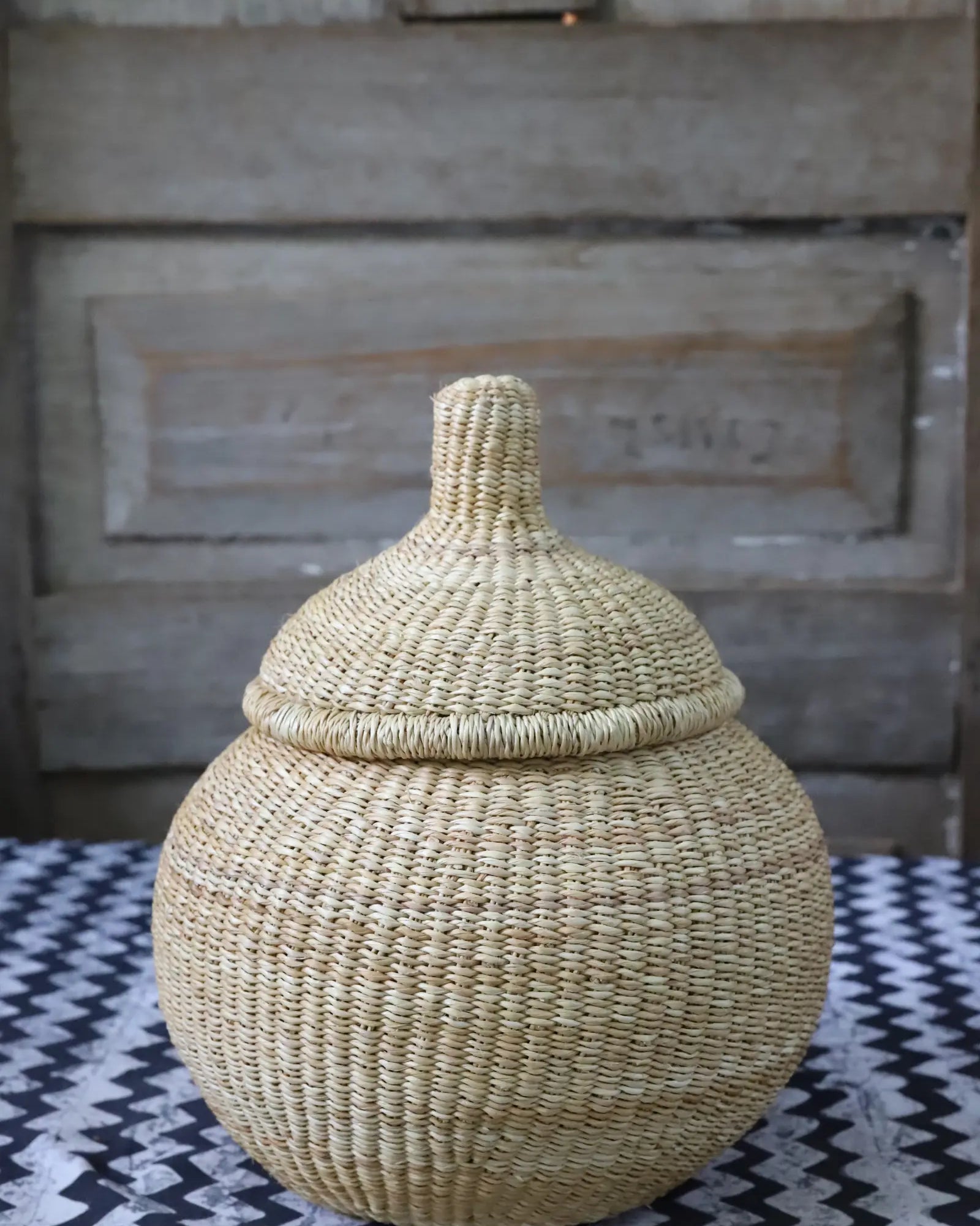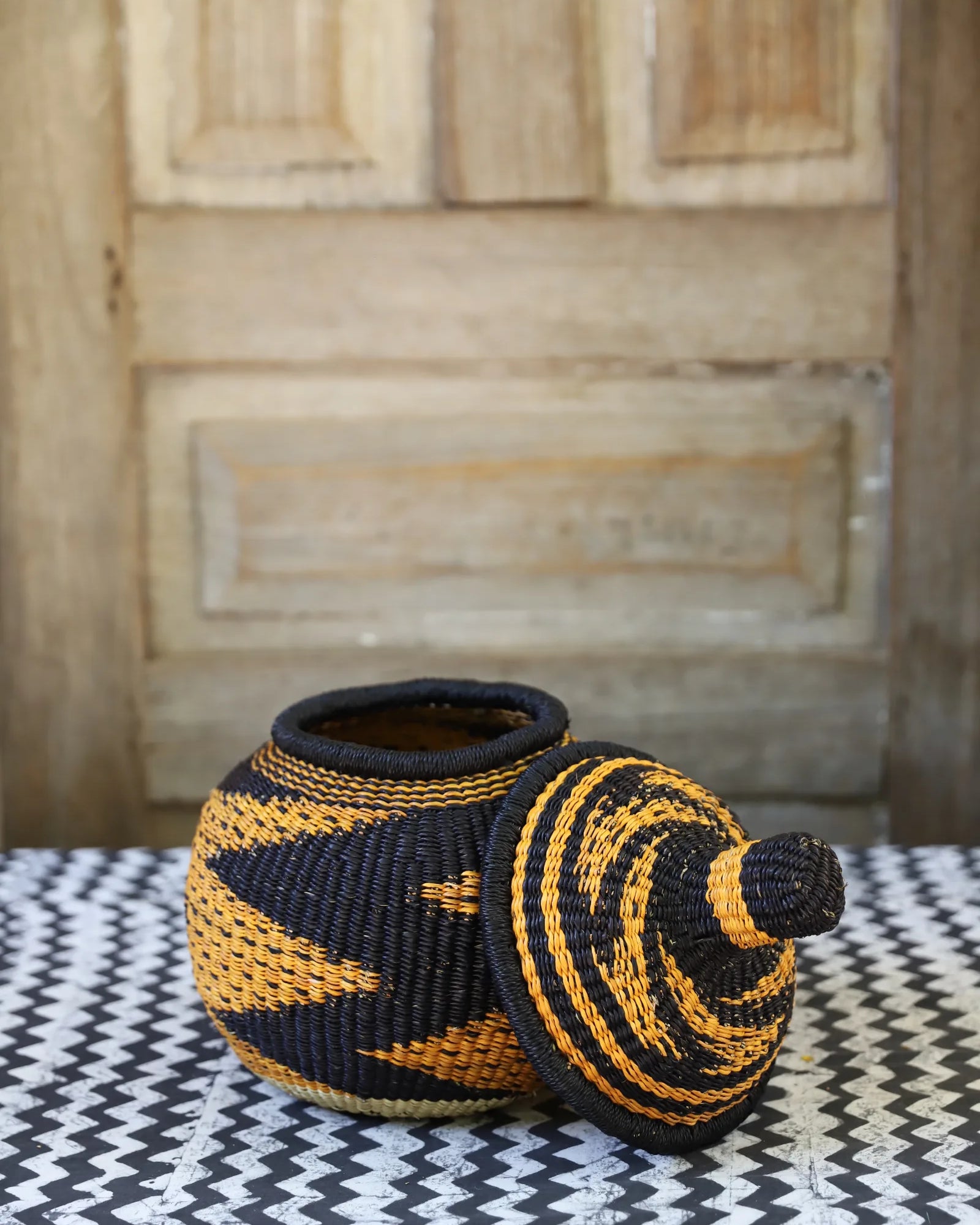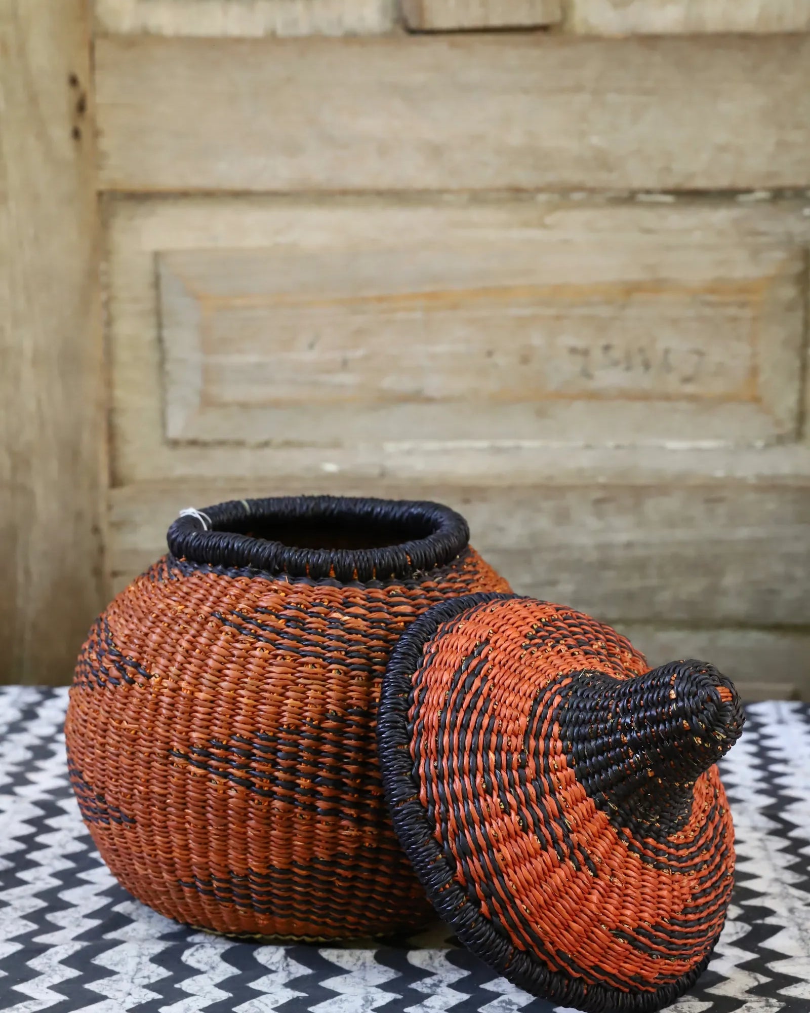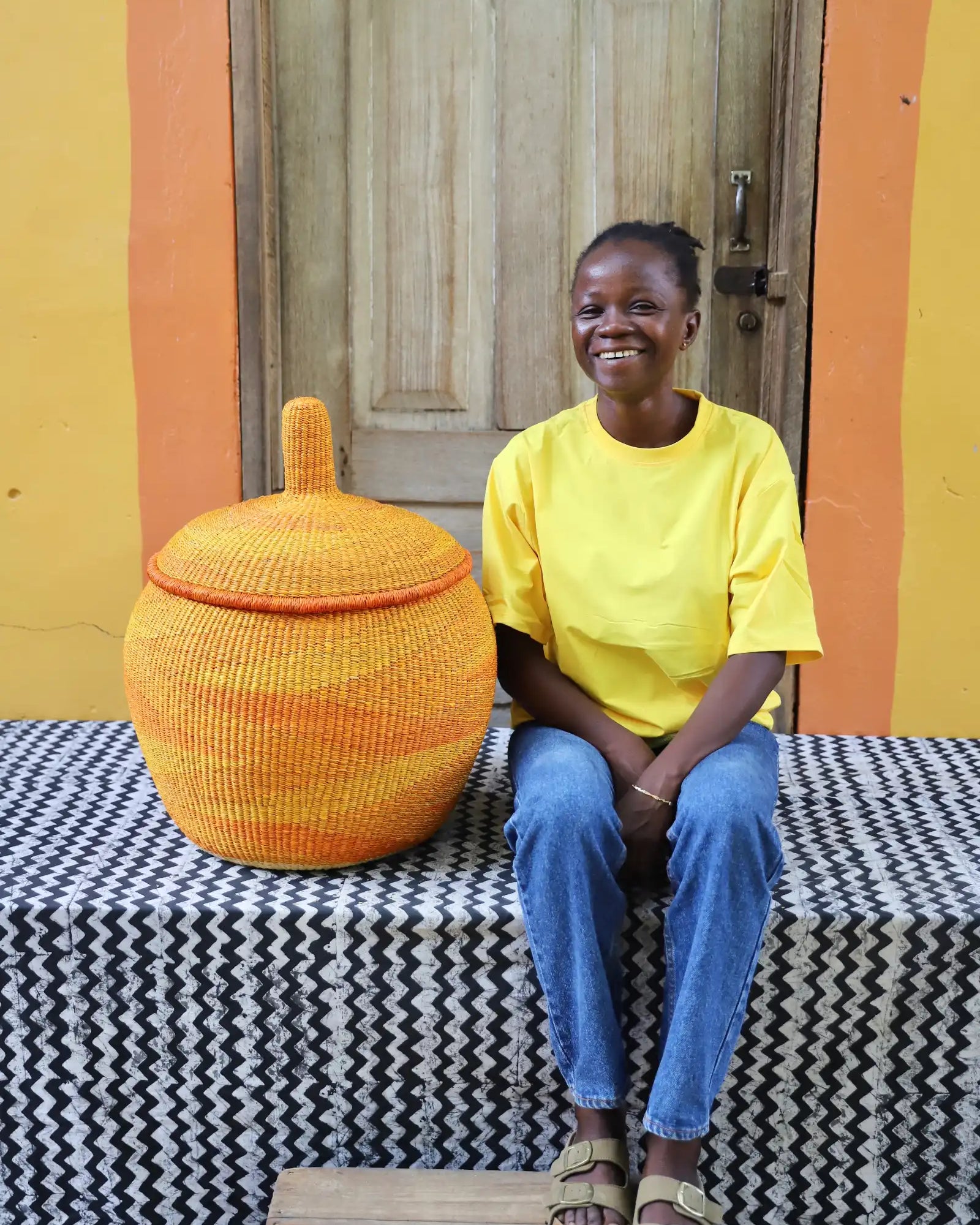Also Known as Kuope-oh, Orbit was the trusted keeper of flour, salt, and other essentials for preparing TZ, a staple dish in Ghana. It's perfectly fitting lid made it ideal for gently storing ingredients. Orbit serves as a beautiful storage solution and decorative art piece, bringing tradition into the home while keeping spaces functional and graceful.