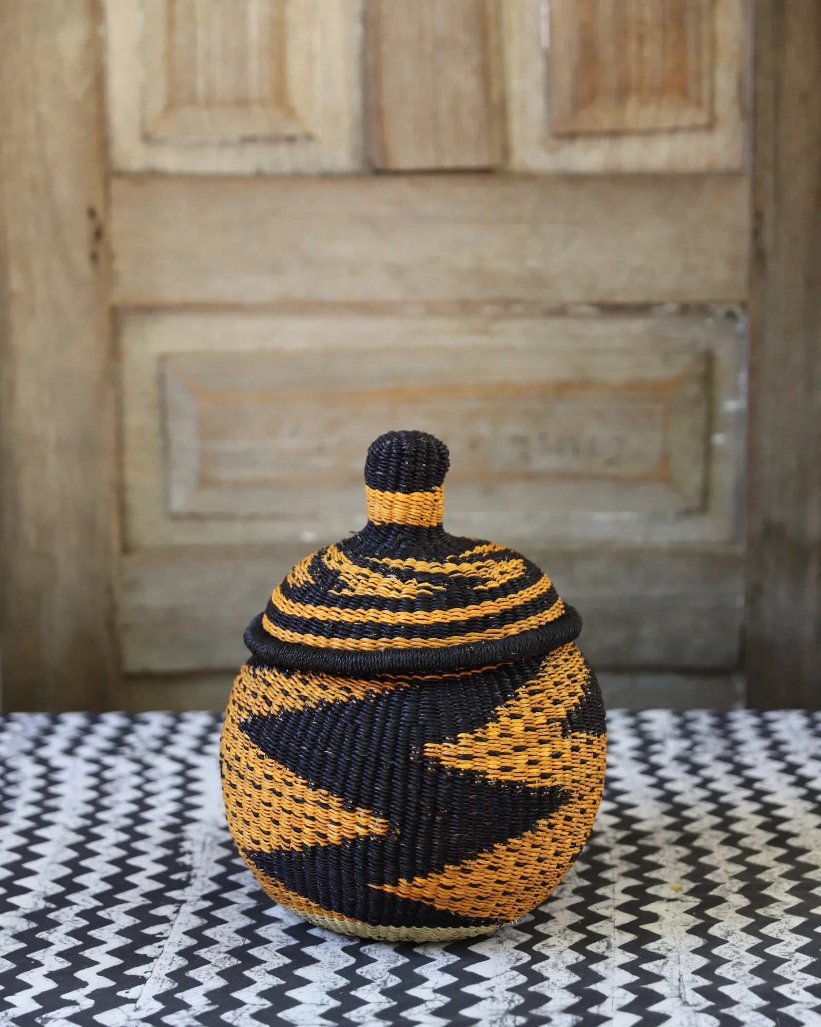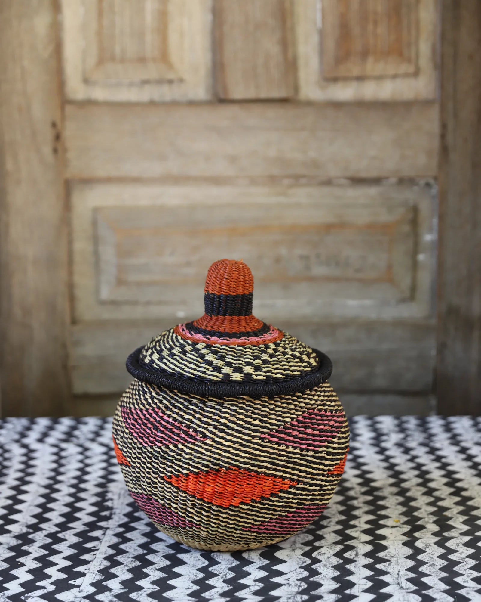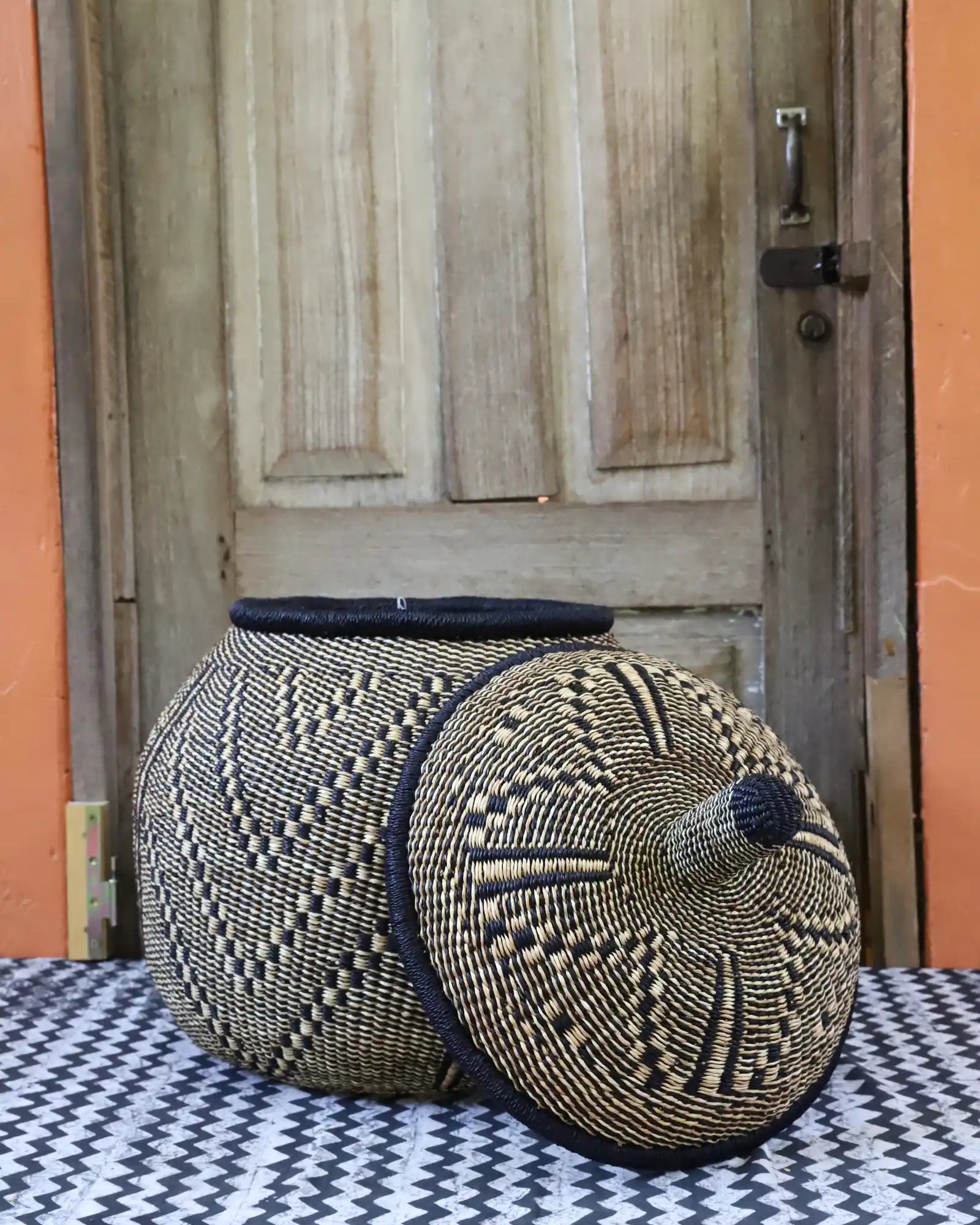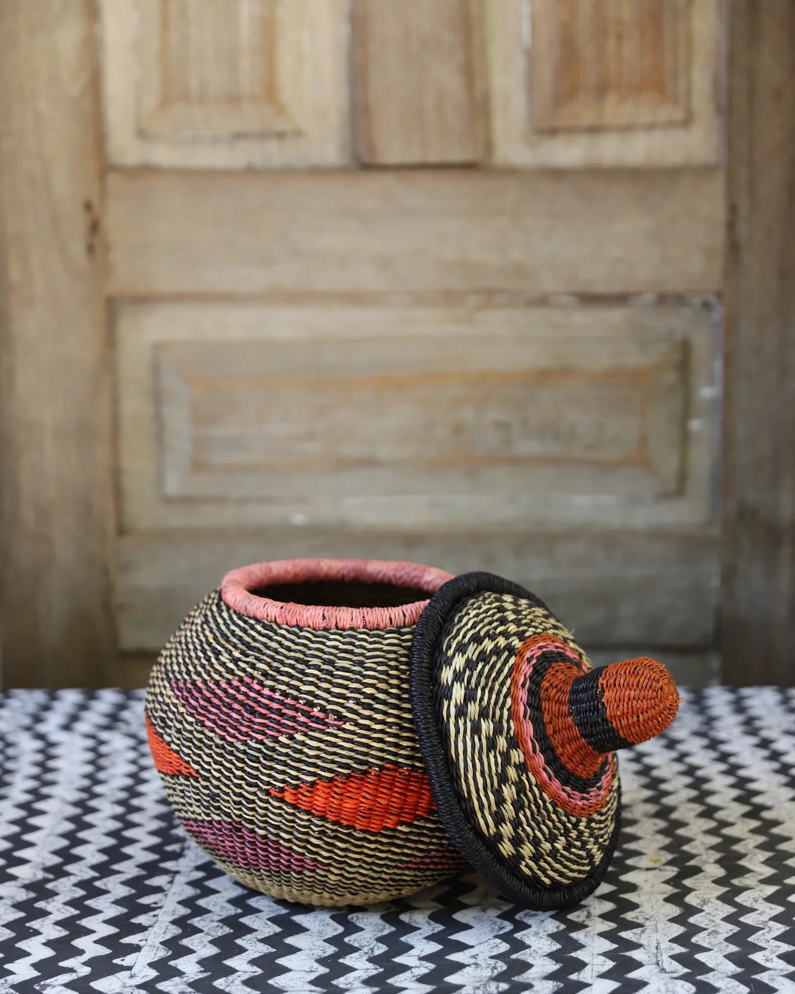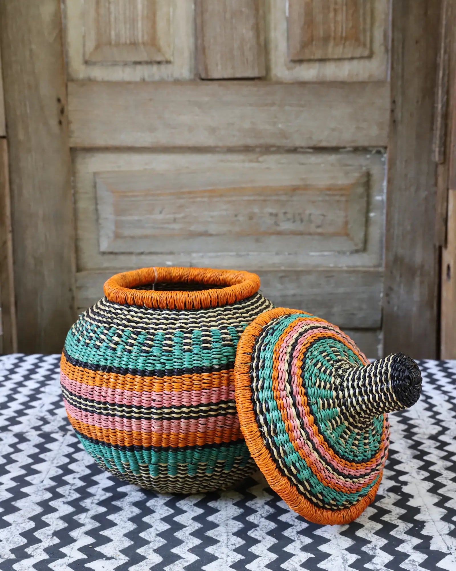 Also Known as Kuope-oh, Orbit was the trusted keeper of flour, salt, and other essentials for preparing TZ, a staple dish in Ghana. It's perfectly fitting lid made it ideal for gently storing ingredients. Orbit serves as a beautiful storage solution and decorative art piece, bringing tradition into the home while keeping spaces functional and graceful.
