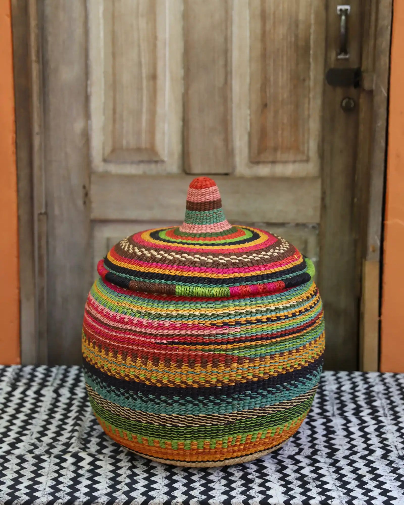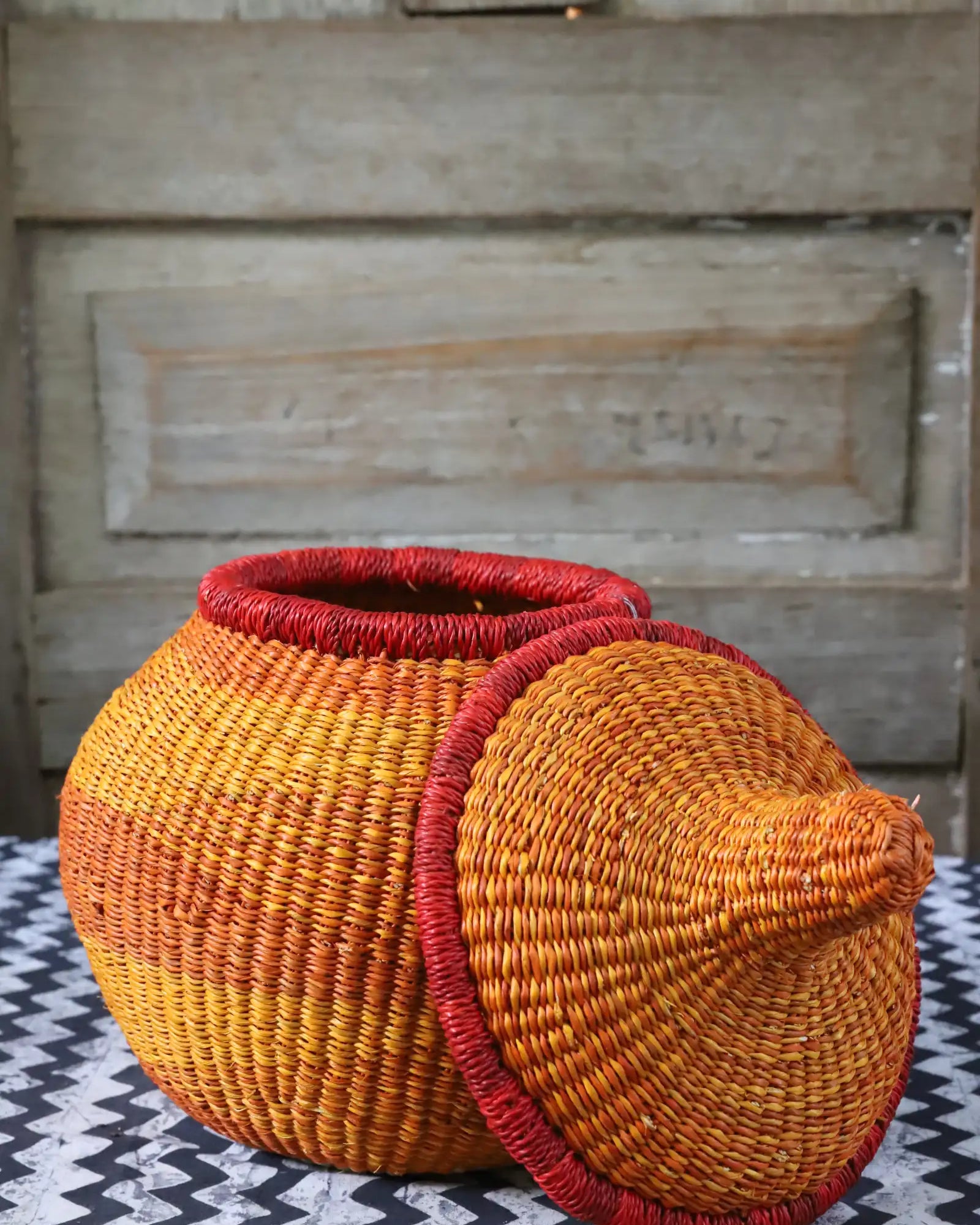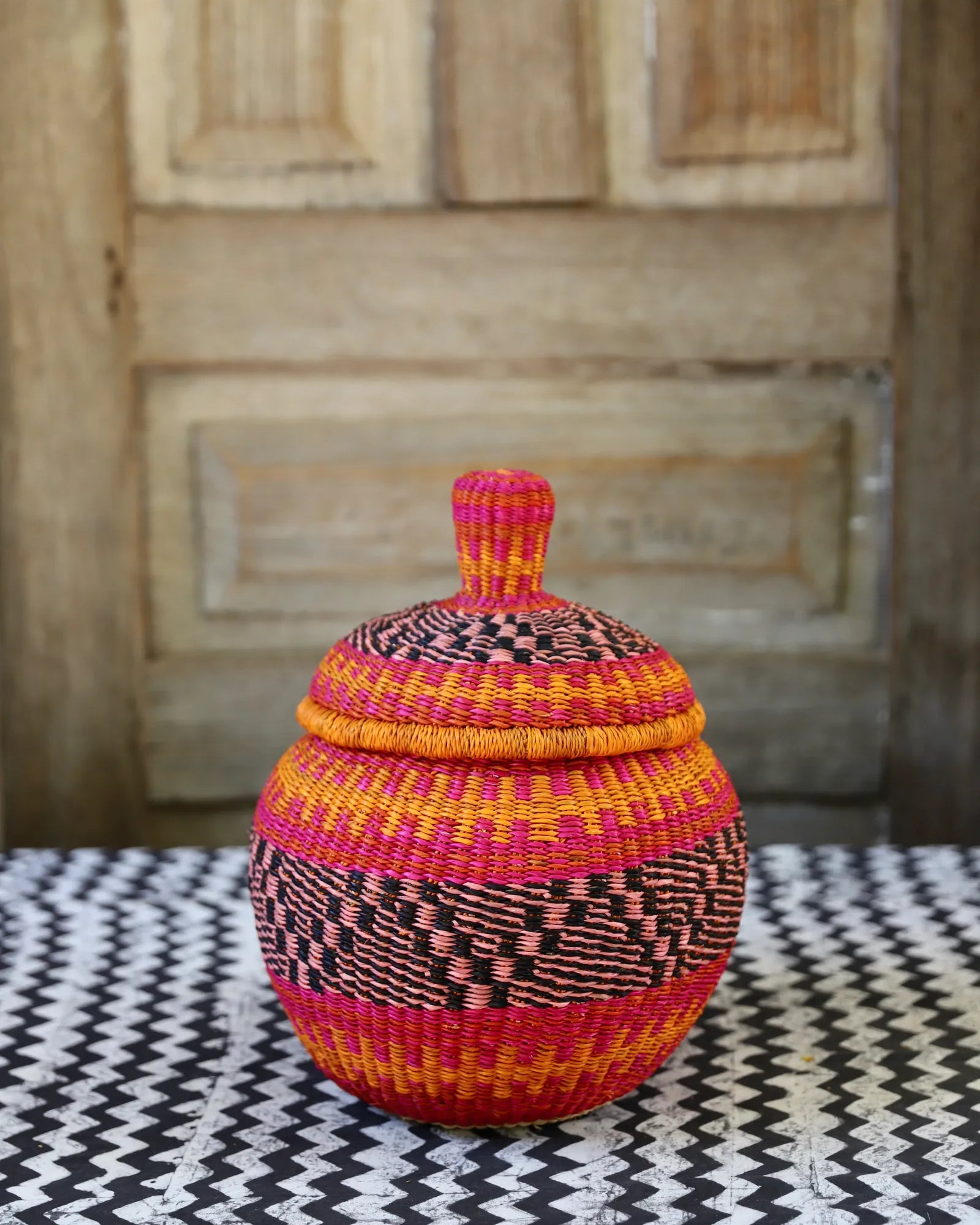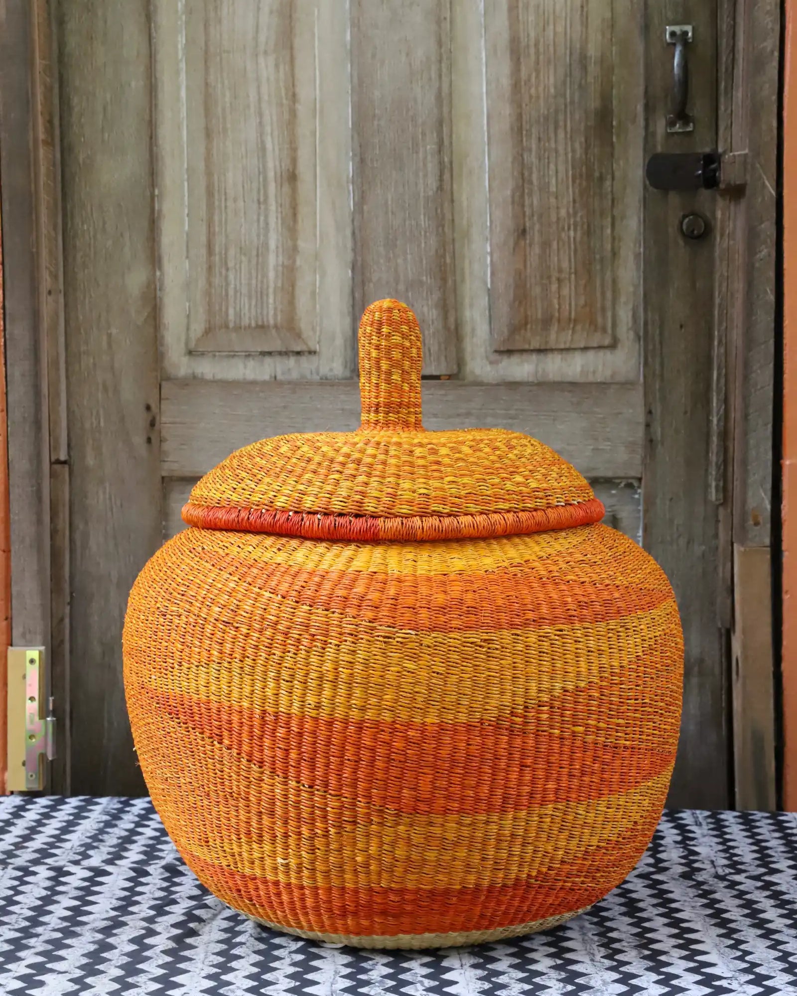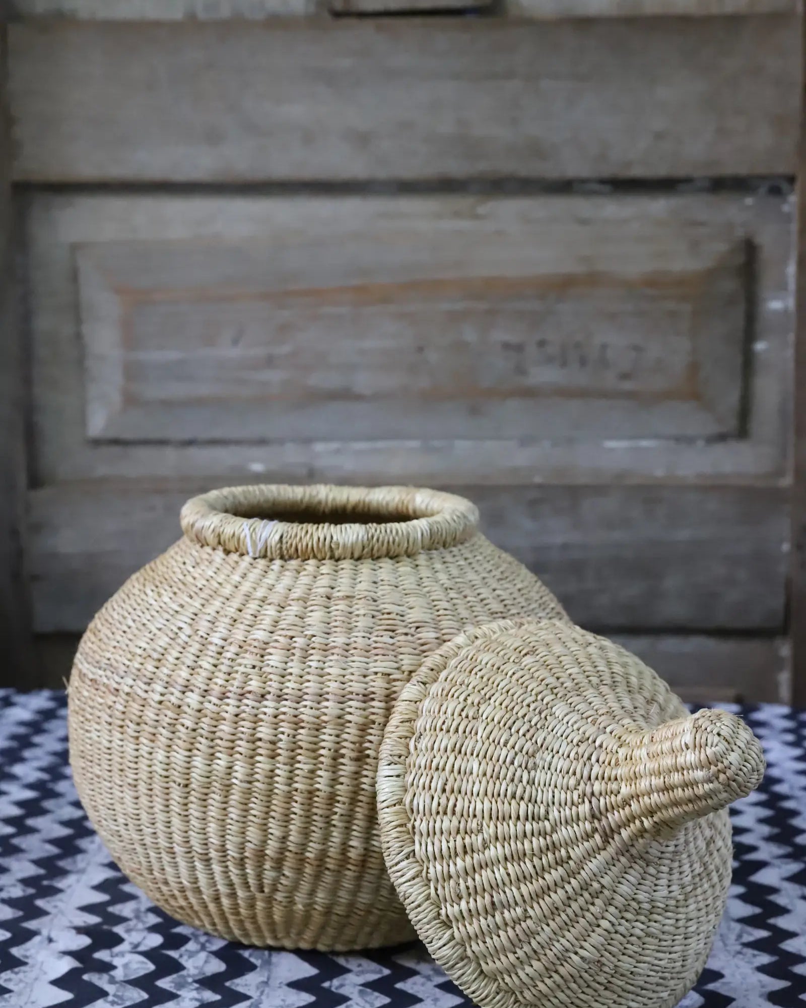 Also Known as Kuope-oh, Orbit was the trusted keeper of flour, salt, and other essentials for preparing TZ, a staple dish in Ghana. It's perfectly fitting lid made it ideal for gently storing ingredients. Orbit serves as a beautiful storage solution and decorative art piece, bringing tradition into the home while keeping spaces functional and graceful.