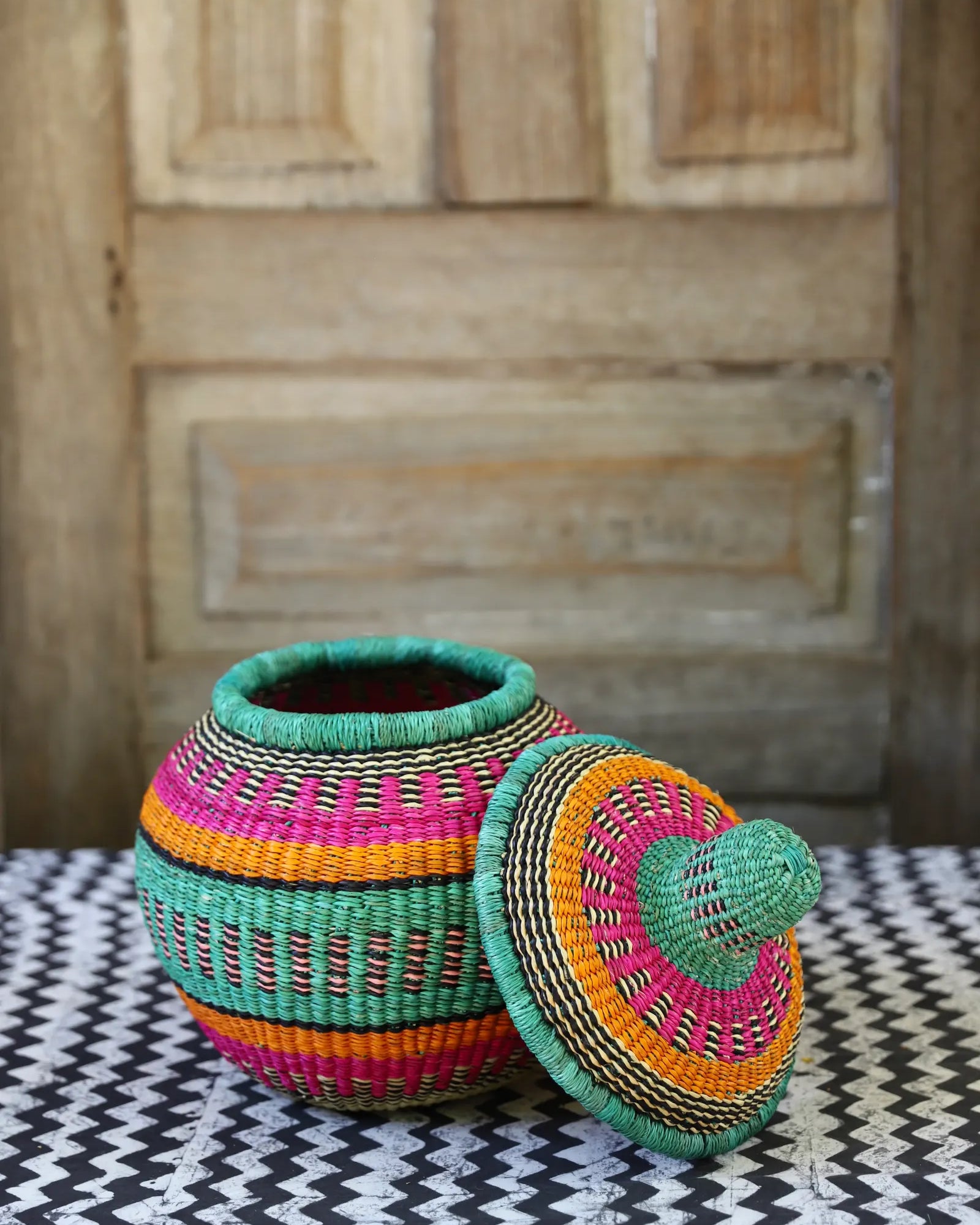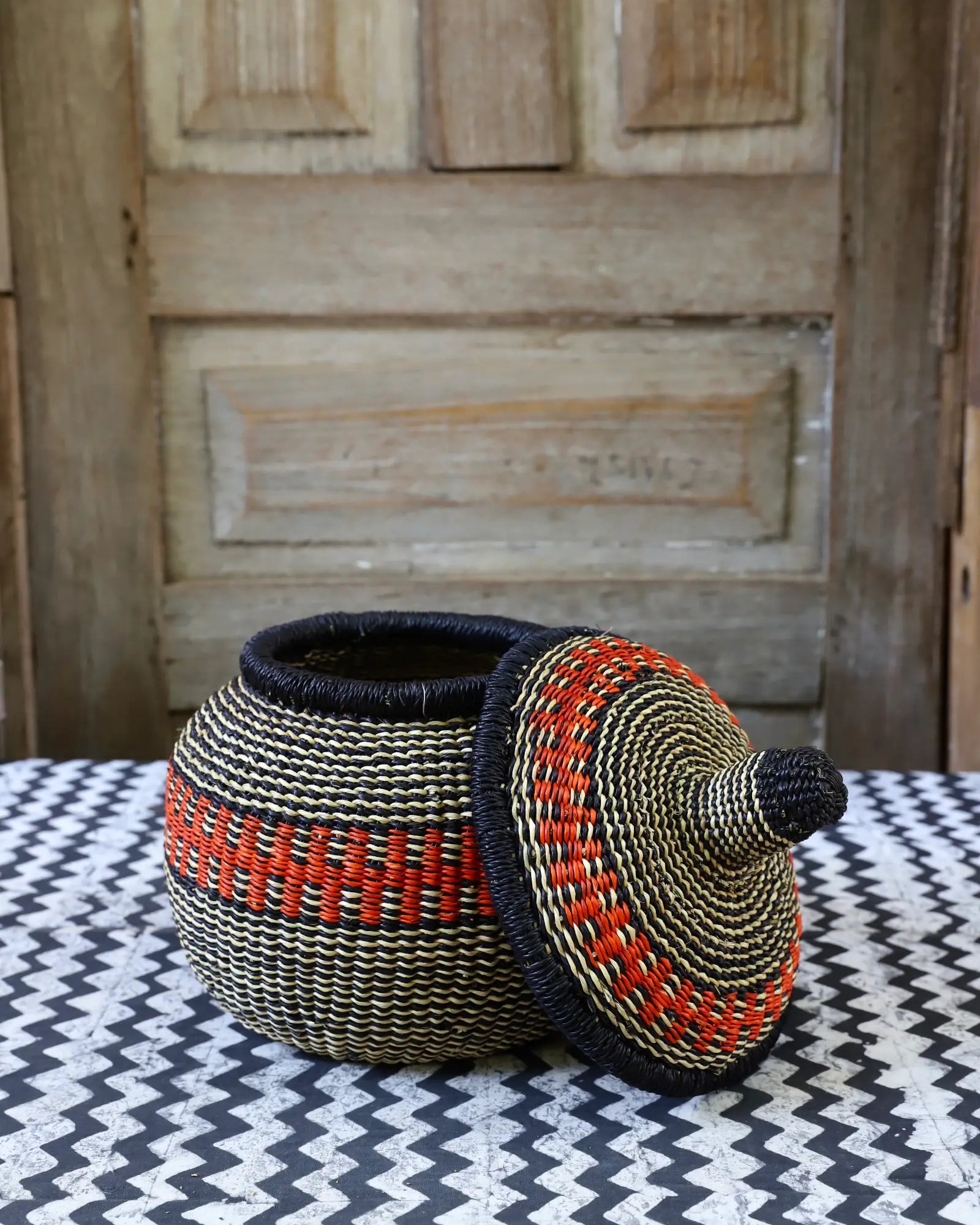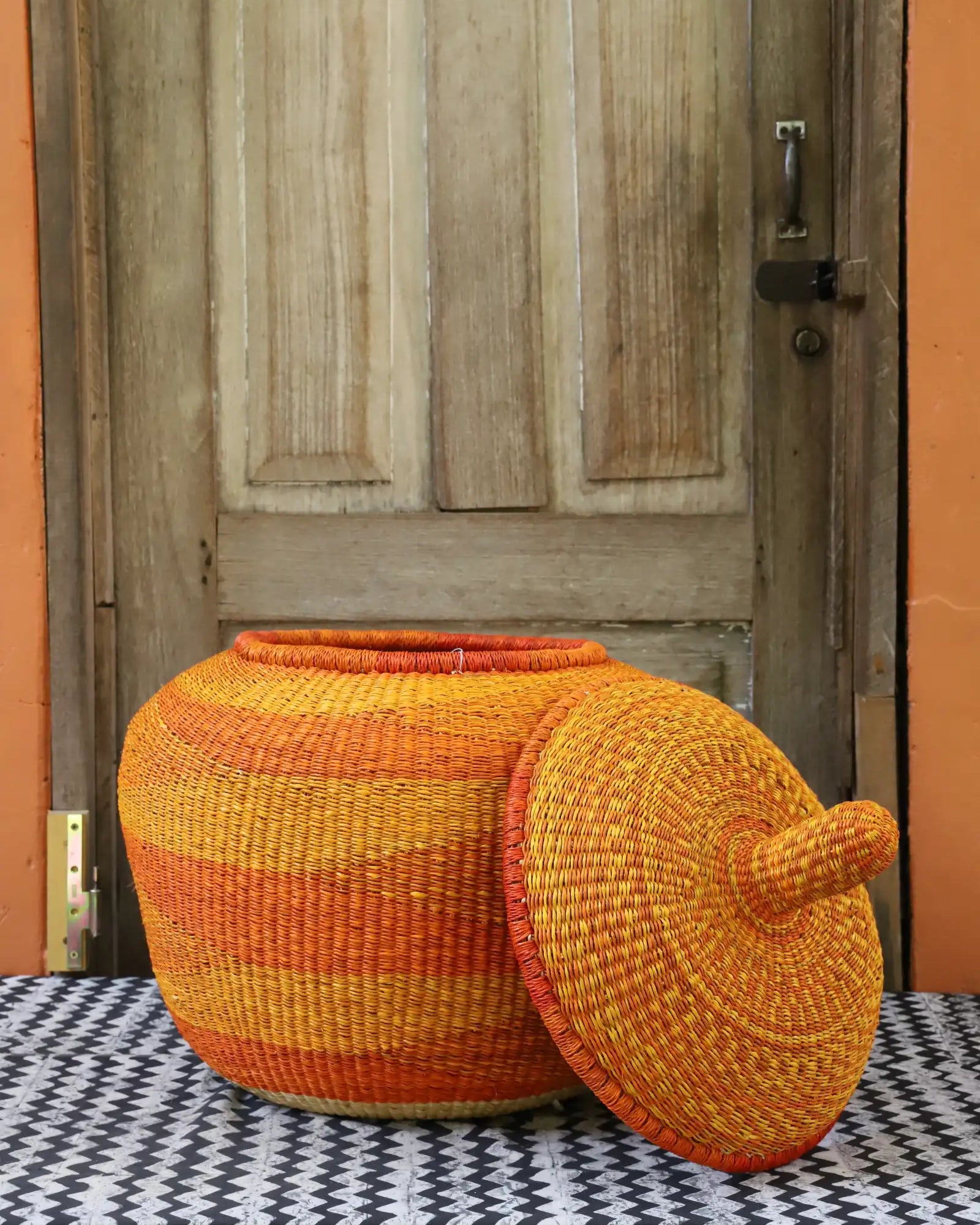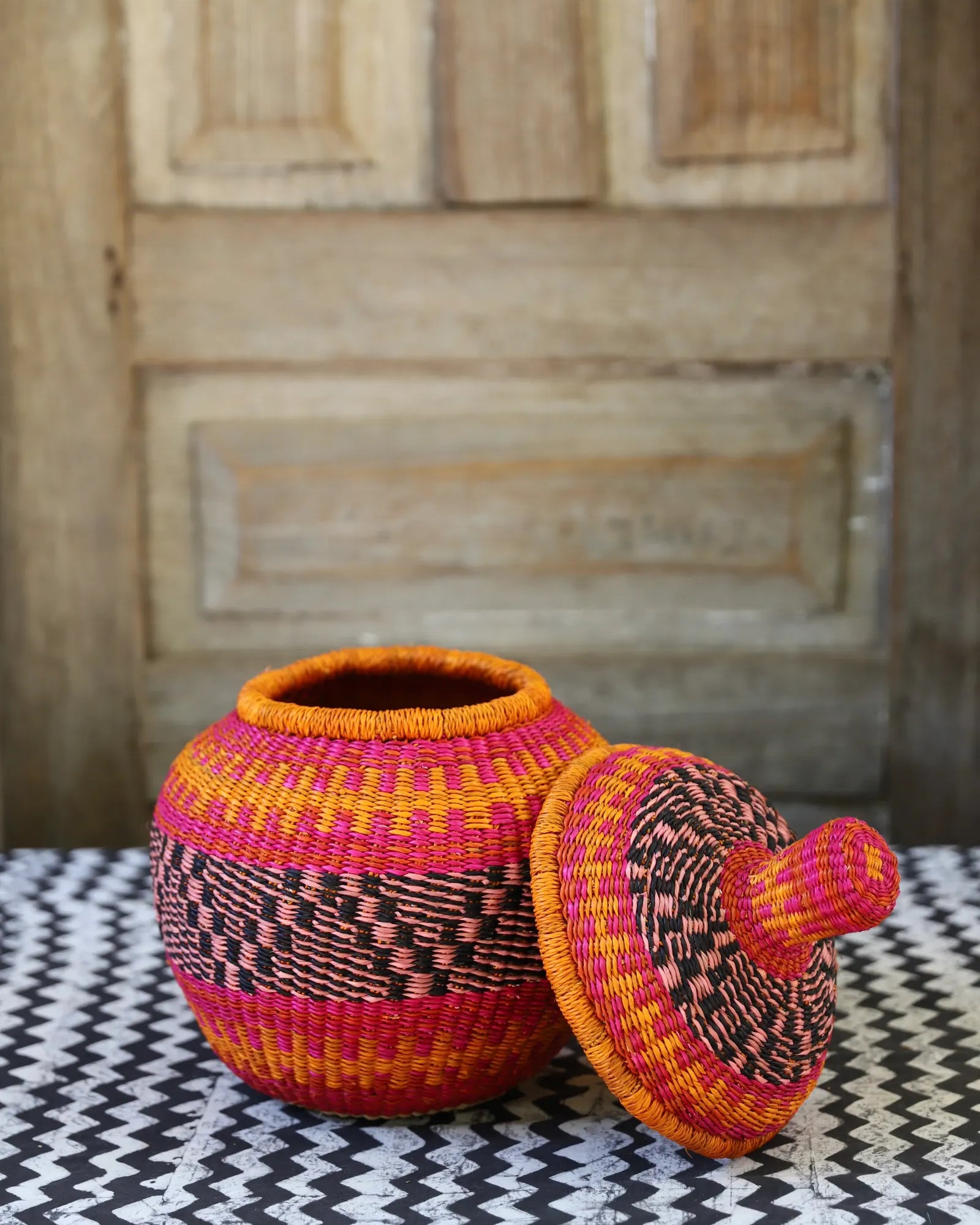 Also Known as Kuope-oh, Orbit was the trusted keeper of flour, salt, and other essentials for preparing TZ, a staple dish in Ghana. It's perfectly fitting lid made it ideal for gently storing ingredients. Orbit serves as a beautiful storage solution and decorative art piece, bringing tradition into the home while keeping spaces functional and graceful.