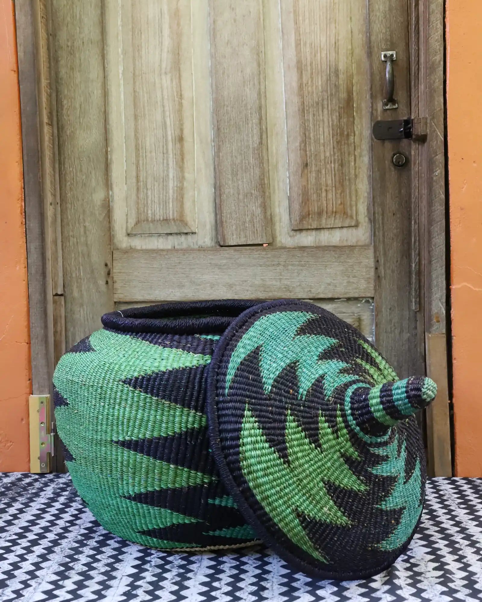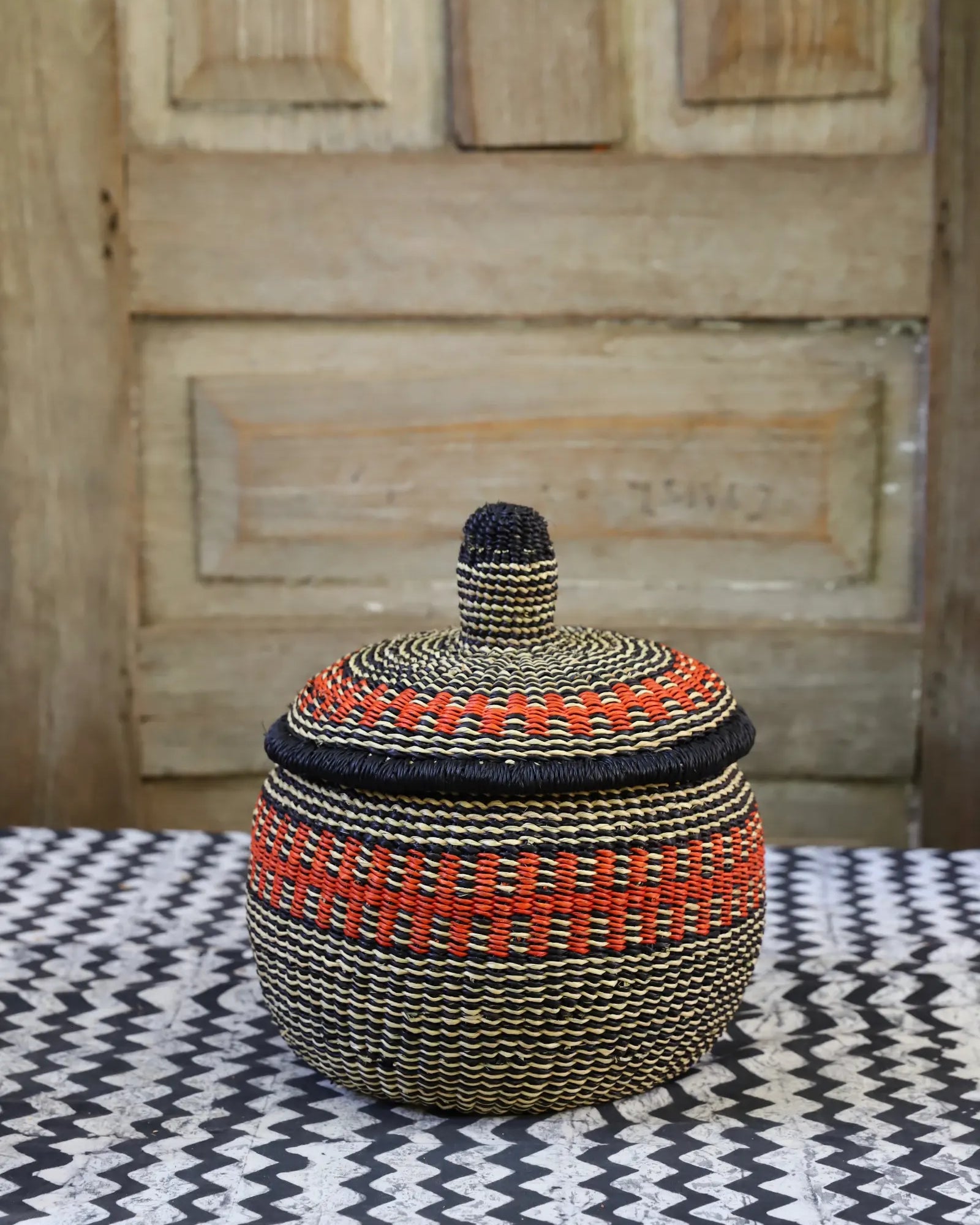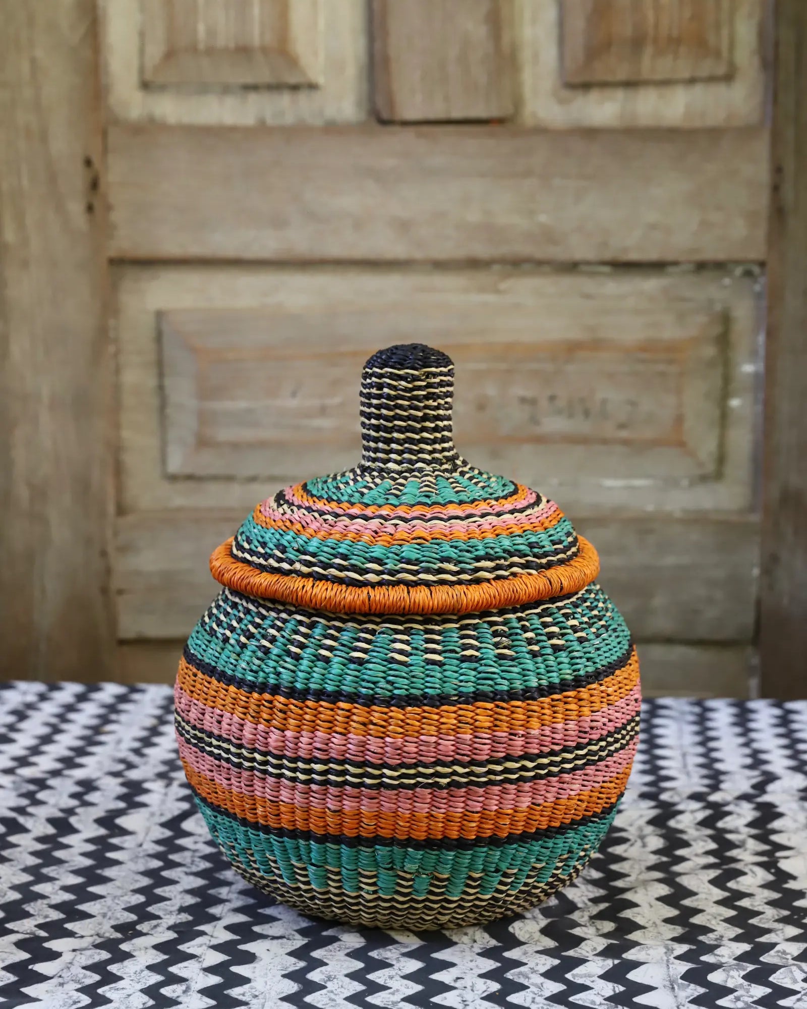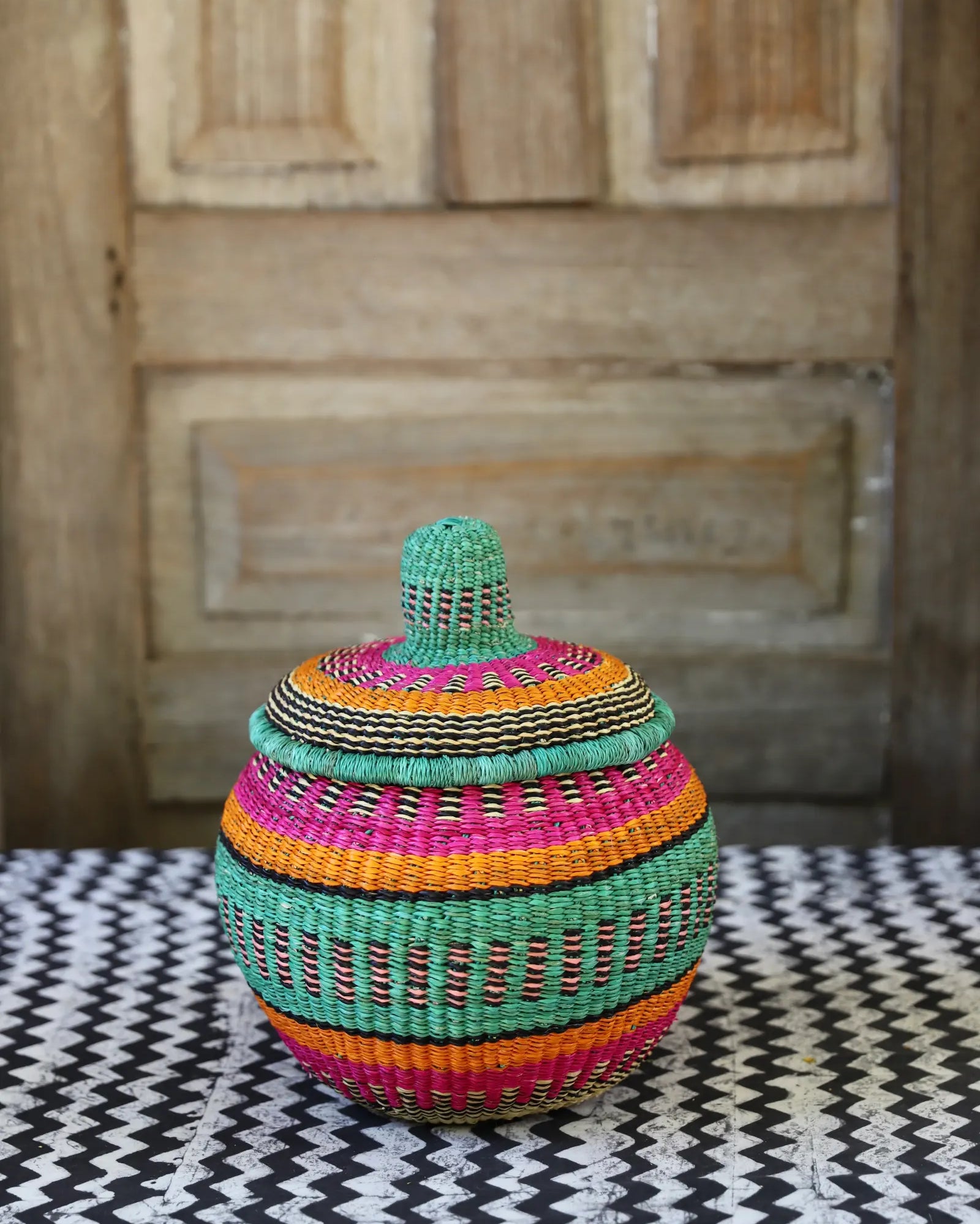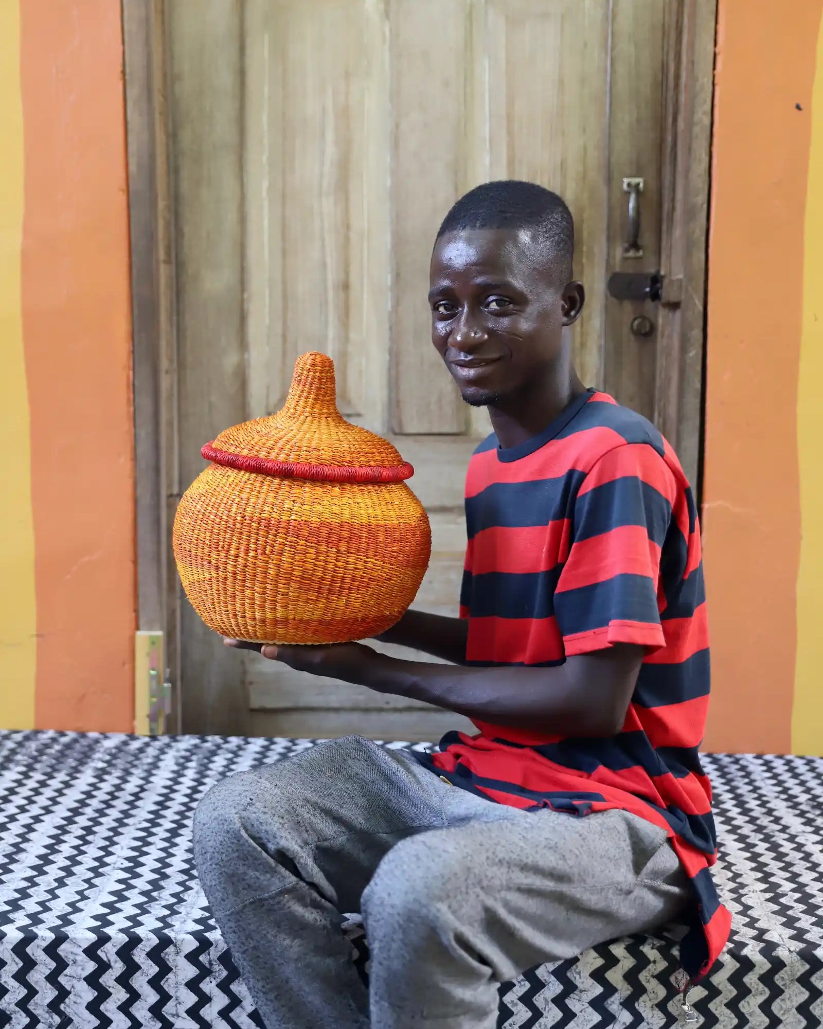 Also Known as Kuope-oh, Orbit was the trusted keeper of flour, salt, and other essentials for preparing TZ, a staple dish in Ghana. It's perfectly fitting lid made it ideal for gently storing ingredients. Orbit serves as a beautiful storage solution and decorative art piece, bringing tradition into the home while keeping spaces functional and graceful.