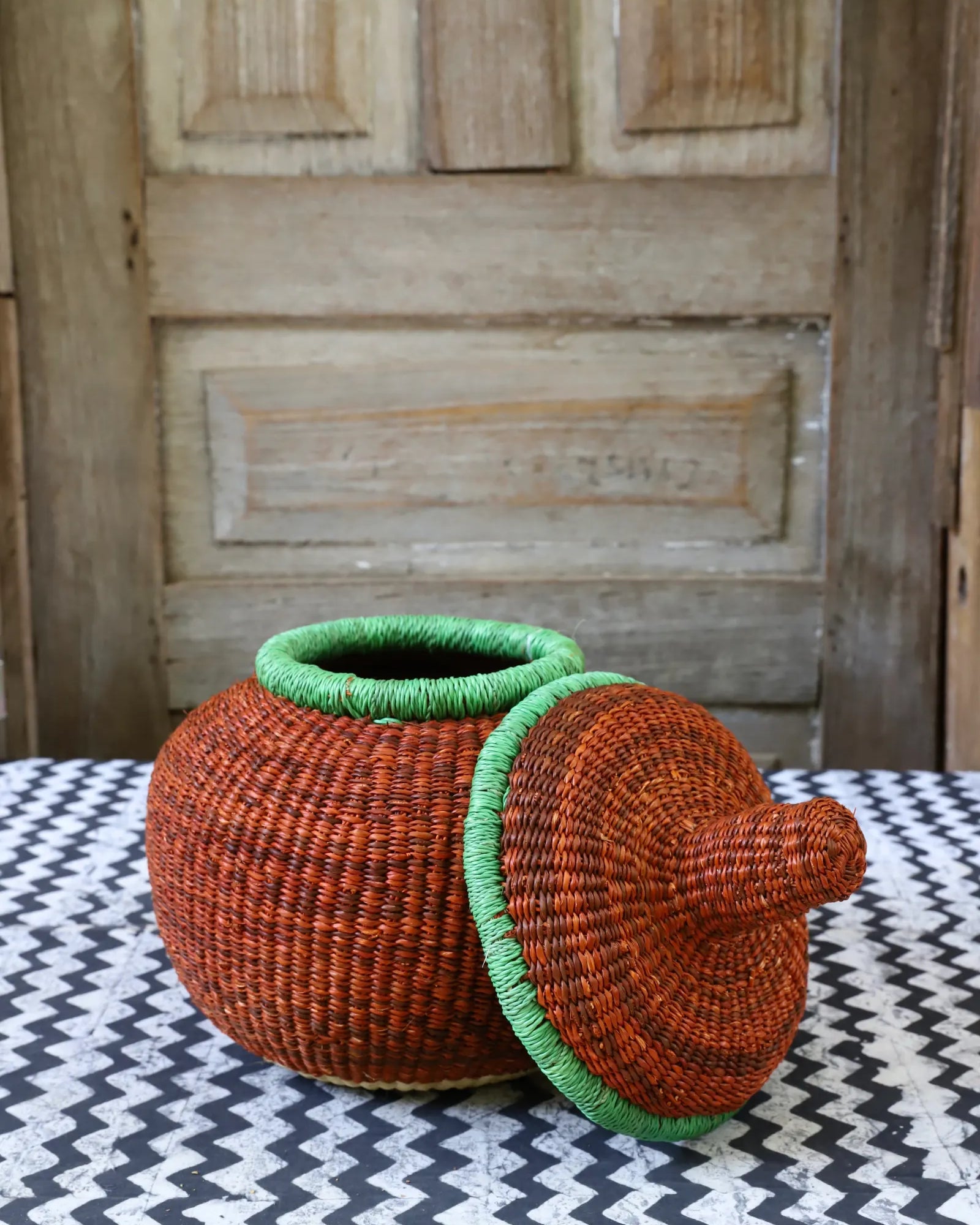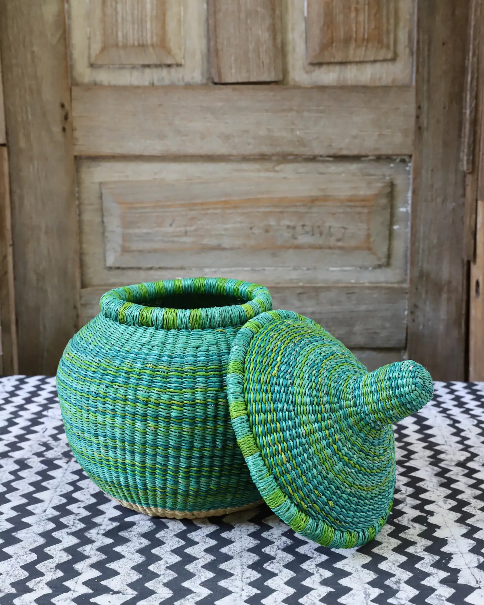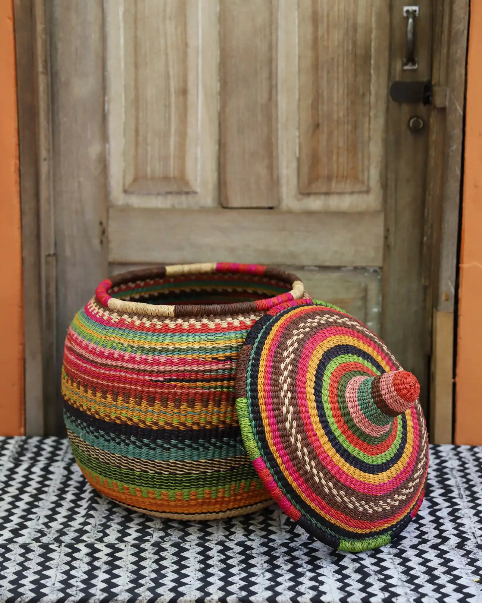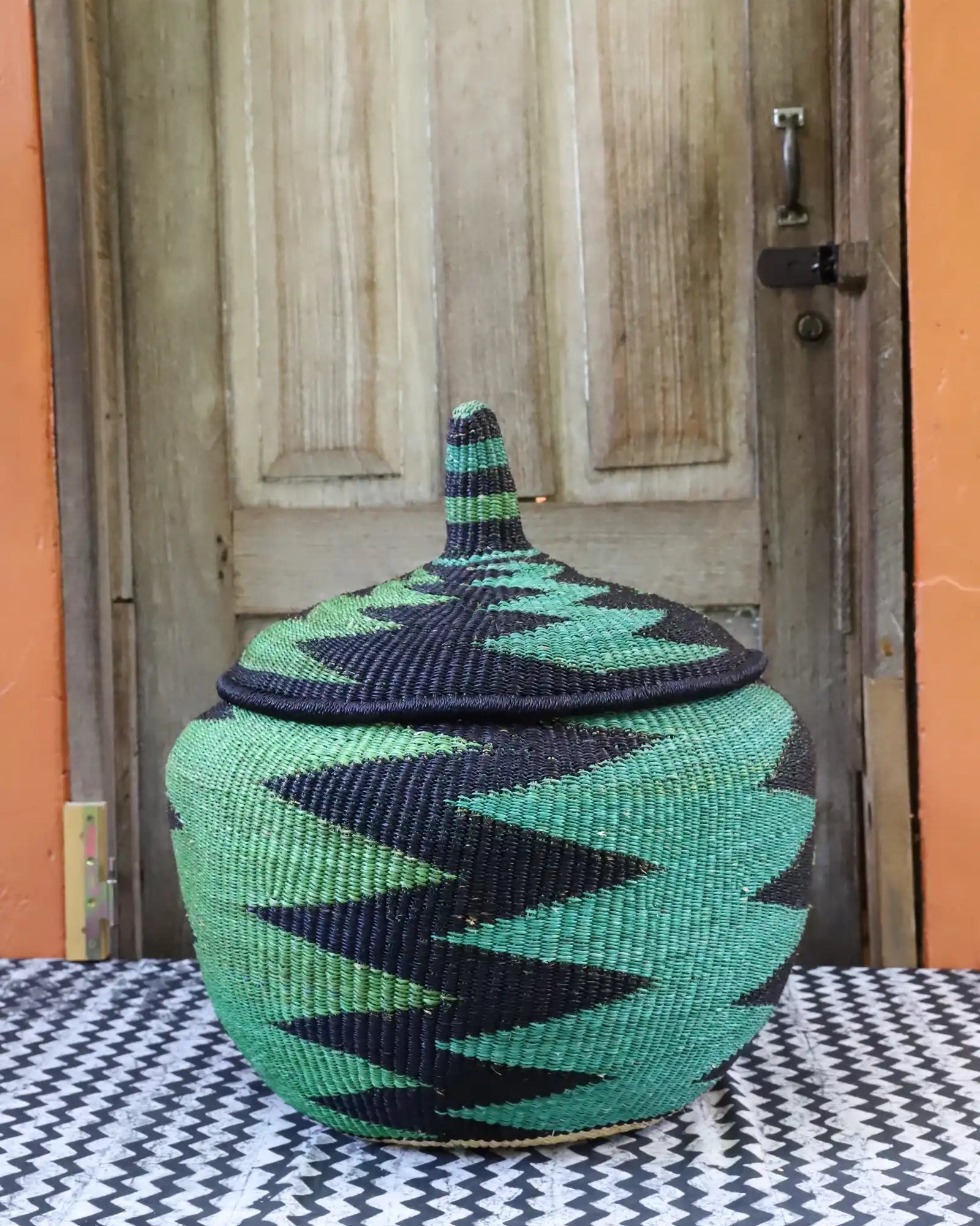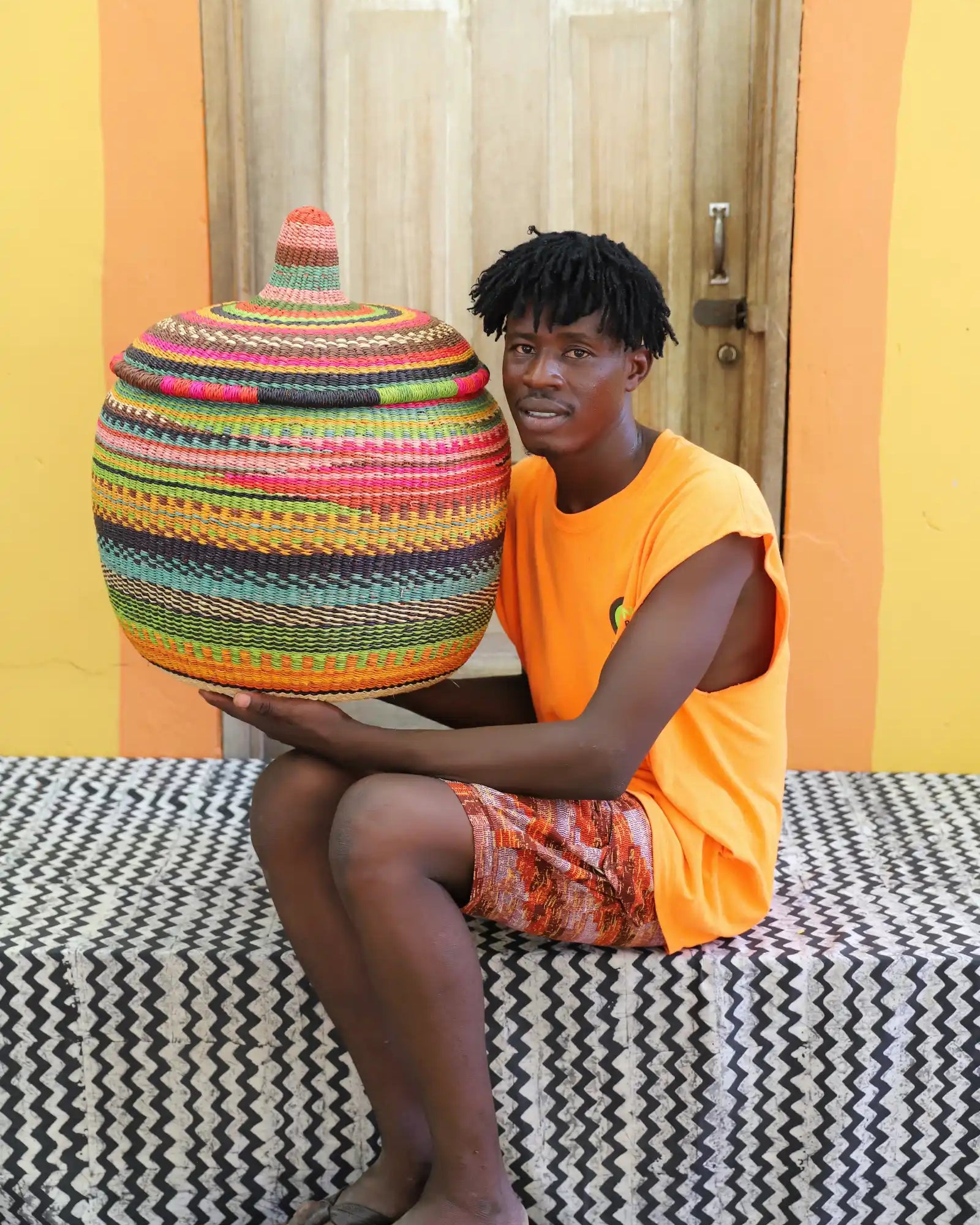 Also Known as Kuope-oh, Orbit was the trusted keeper of flour, salt, and other essentials for preparing TZ, a staple dish in Ghana. It's perfectly fitting lid made it ideal for gently storing ingredients. Orbit serves as a beautiful storage solution and decorative art piece, bringing tradition into the home while keeping spaces functional and graceful.