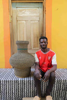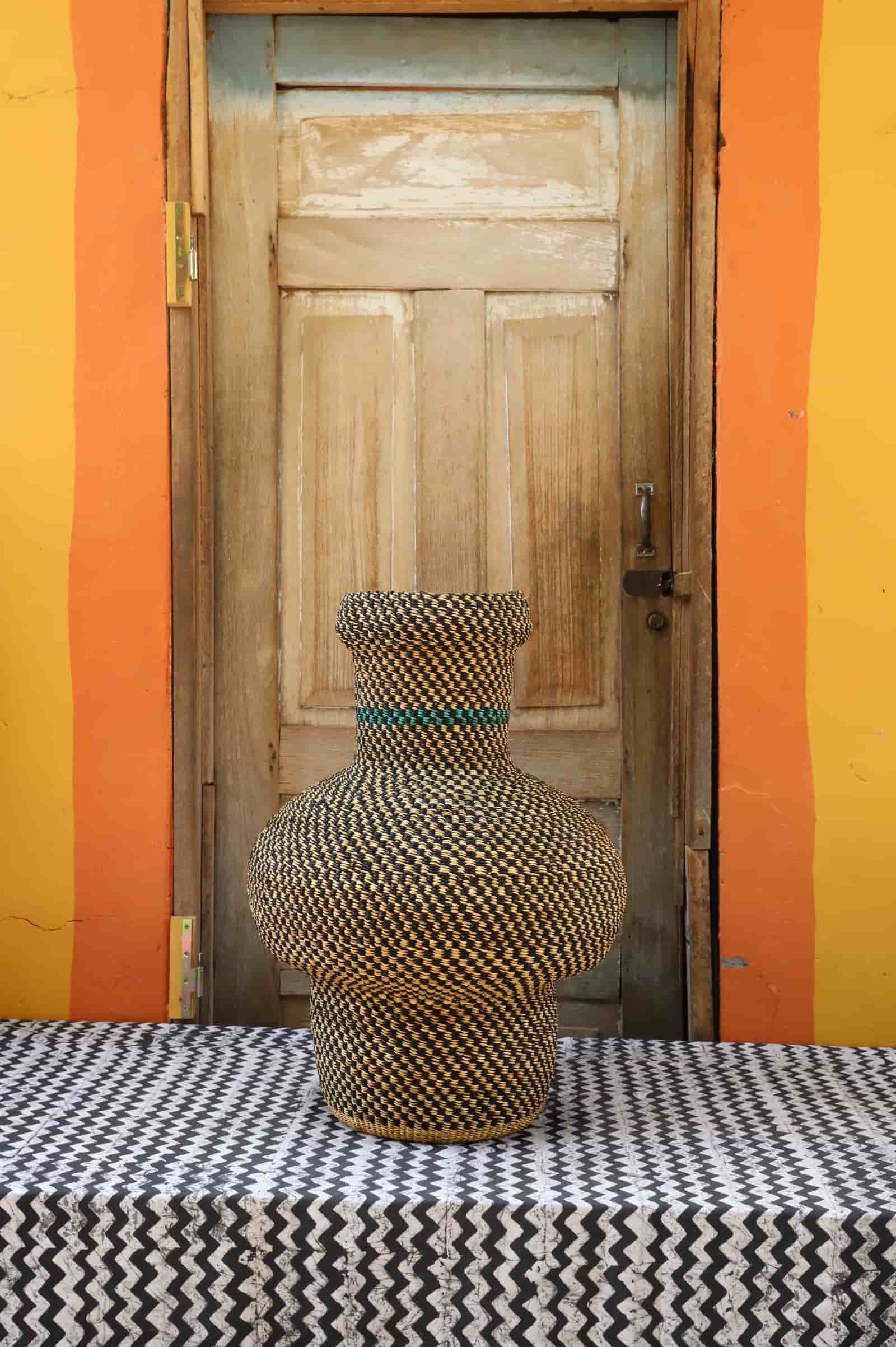 Dugla is a small, pot-like vessel traditionally used to store shea butter. Inspired by the Gurunsi’s shea butter-making rituals, the Tall Dugla basket is an art sculpture in its own right—or insert a glass jar to transform it into a woven vase for fresh flowers or garden greens.