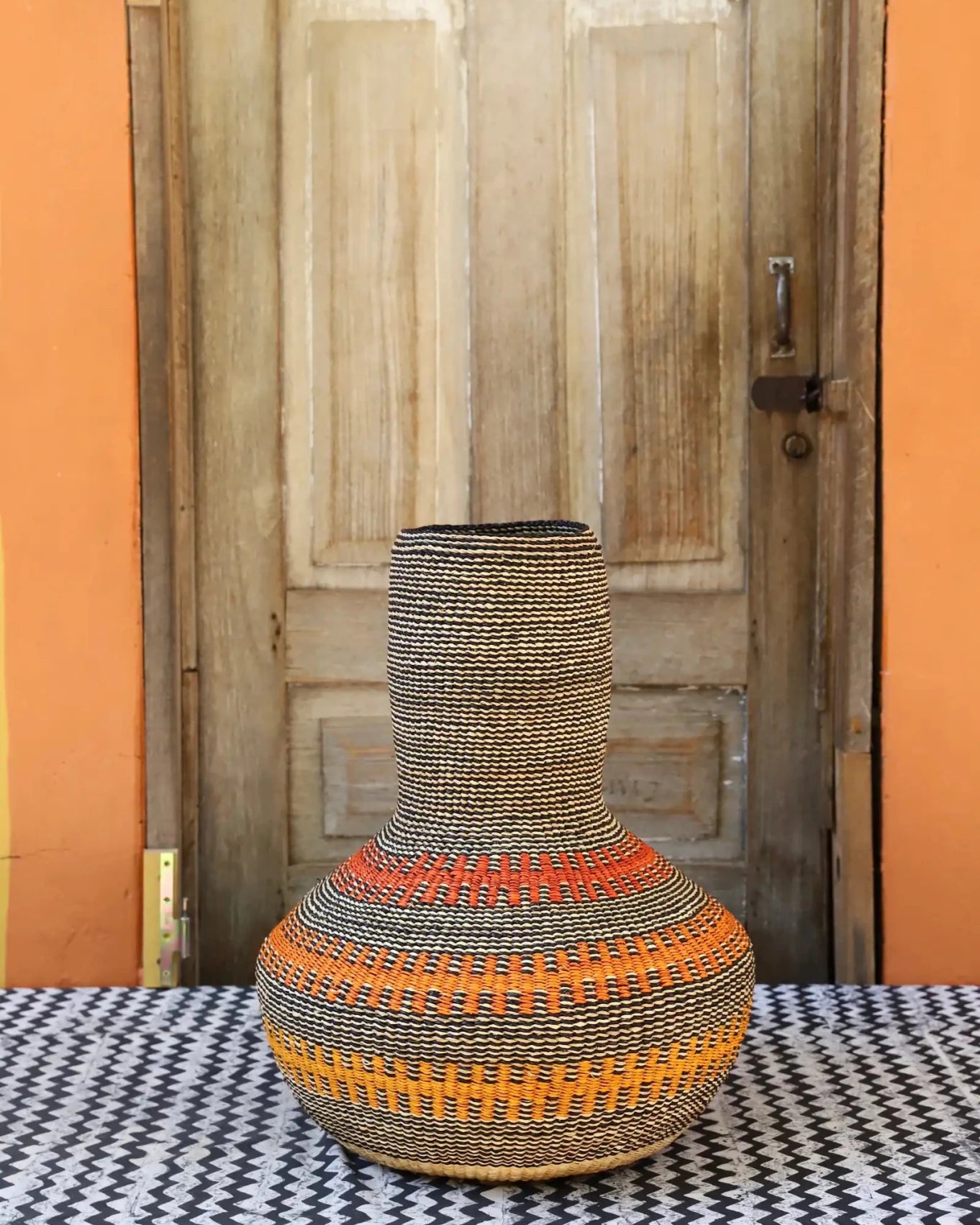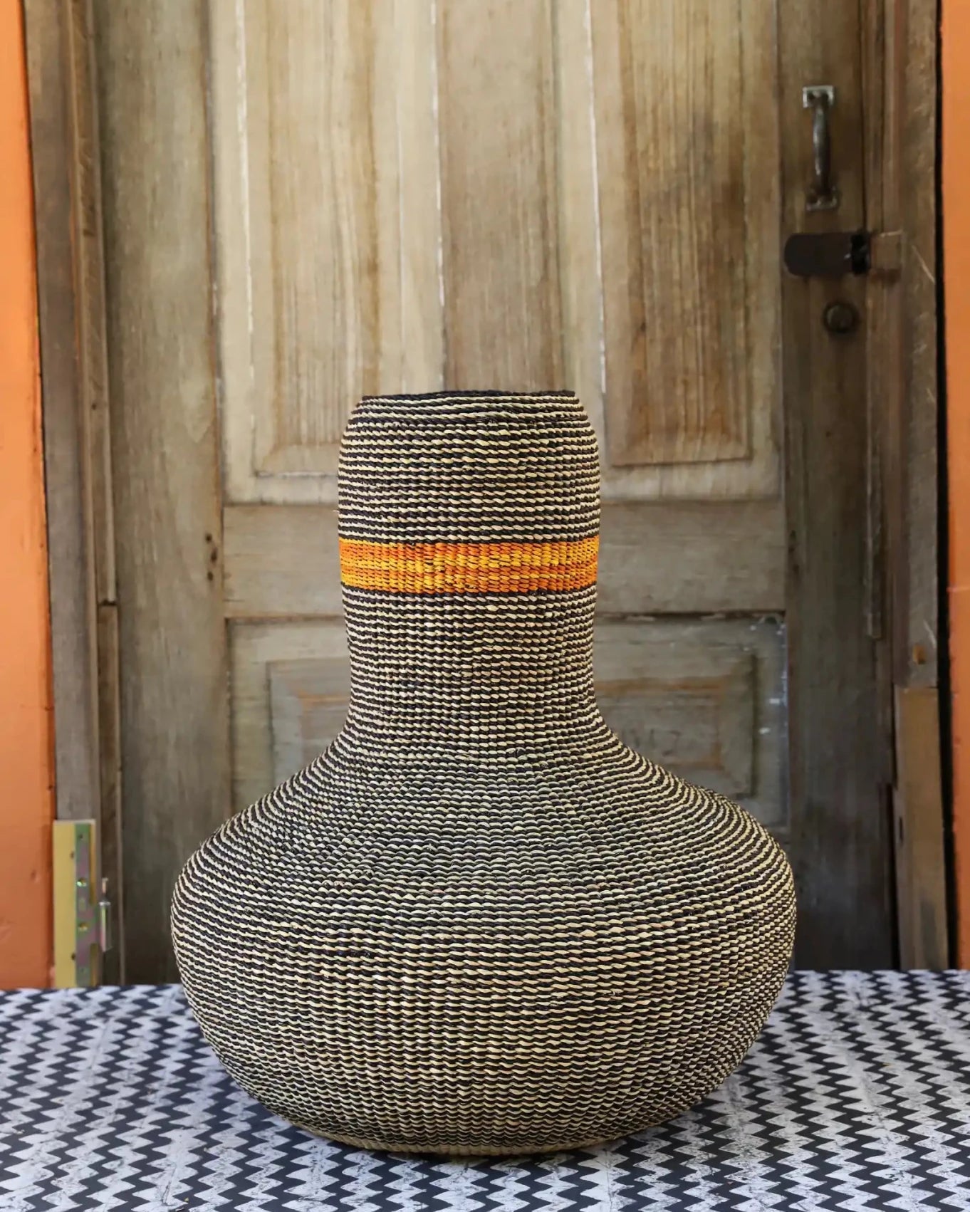 Sinyaka is inspired by the traditional gourd instrument used predominantly by soothsayers for their incantations and rituals. This art basket channels the spirit of that ancient practice through its shape and design, evoking a sense of mystery and tradition.