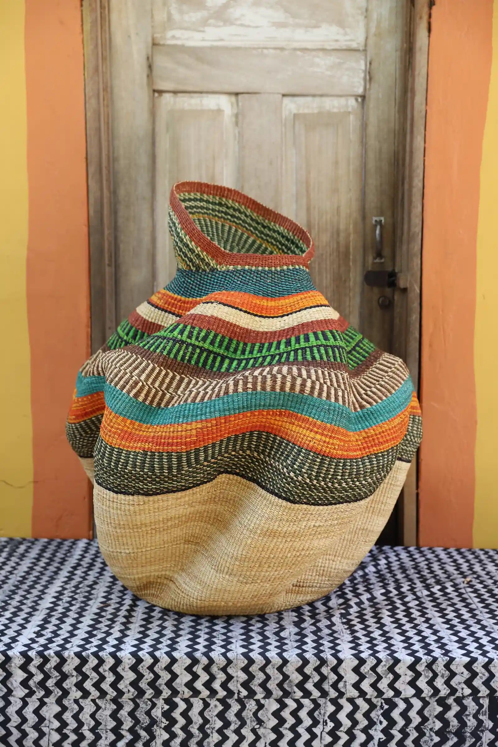 Yoomelingah-yure (Bent Pot) is an art basket that speaks in curves and quiet presence. Handwoven with care, its graceful form captures the stillness of dusk and the beauty of craftsmanship. A sculptural piece for those who see baskets as more than function—this is basketry as poetry.