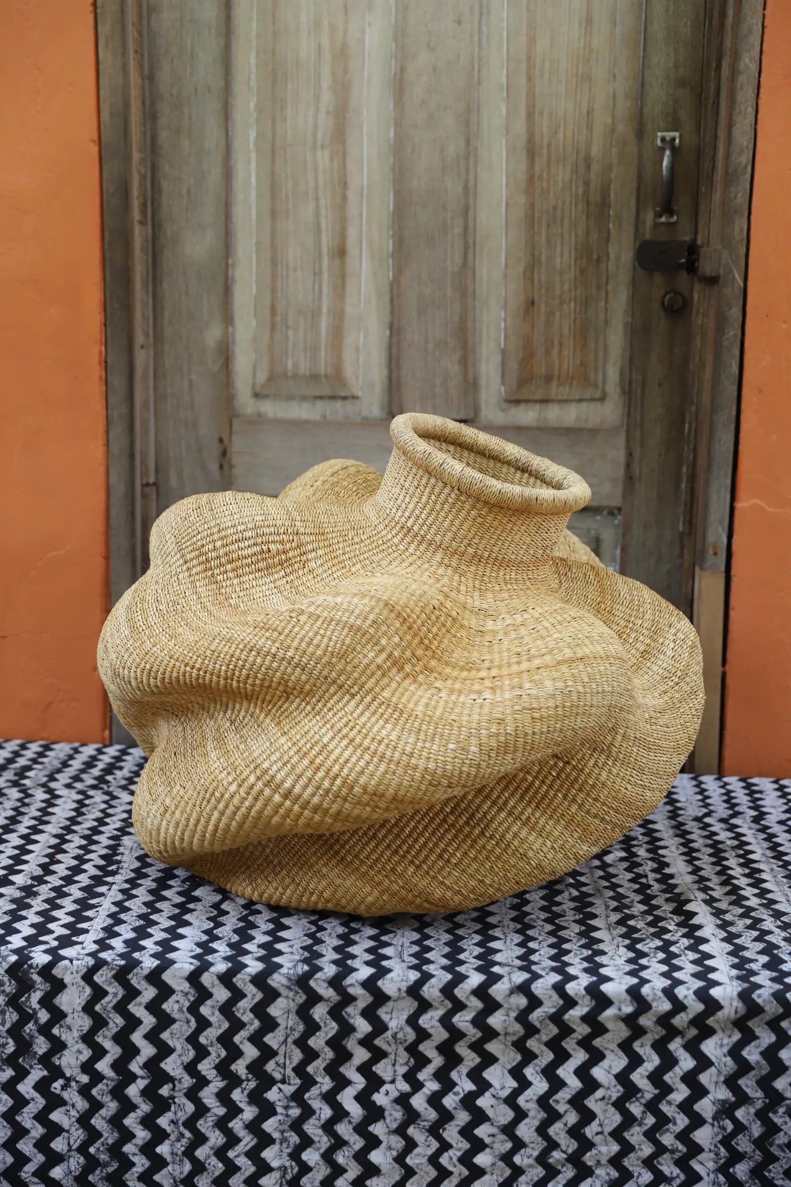 Pue-oh comes from an unusual tree native to the region, known for its large leaves and toxic sap. The fruit isn’t edible, but when opened, it releases delicate, billowy seed puffs—reminiscent of dandelions—that drift gracefully on the wind, spreading new life. Inspired by this natural wonder, the Pue-oh basket is a sculptural piece of art and a whisper of nature’s charm to any space.