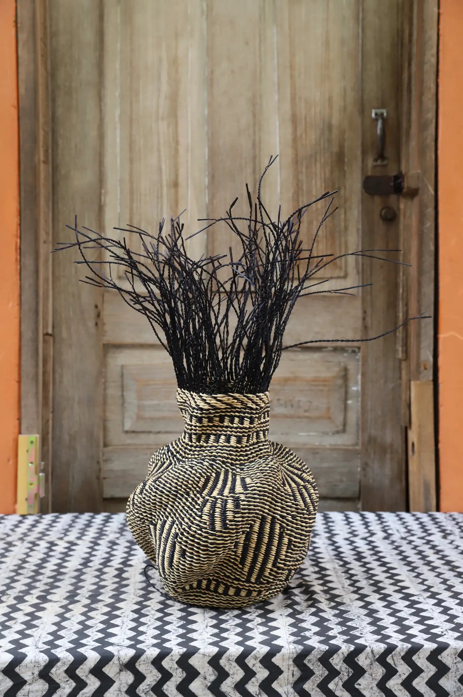 Named for its hanging straw and sculptural form, the Baobab Basket echoes Africa’s iconic ‘mother tree’—revered for its generous shade and nourishing fruit. The Baobab tree also inspired the name of our company, chosen for its warm nature and deep roots in the community. This piece features our signature spiraling technique, a reflection of our bond with land, culture, and craft.