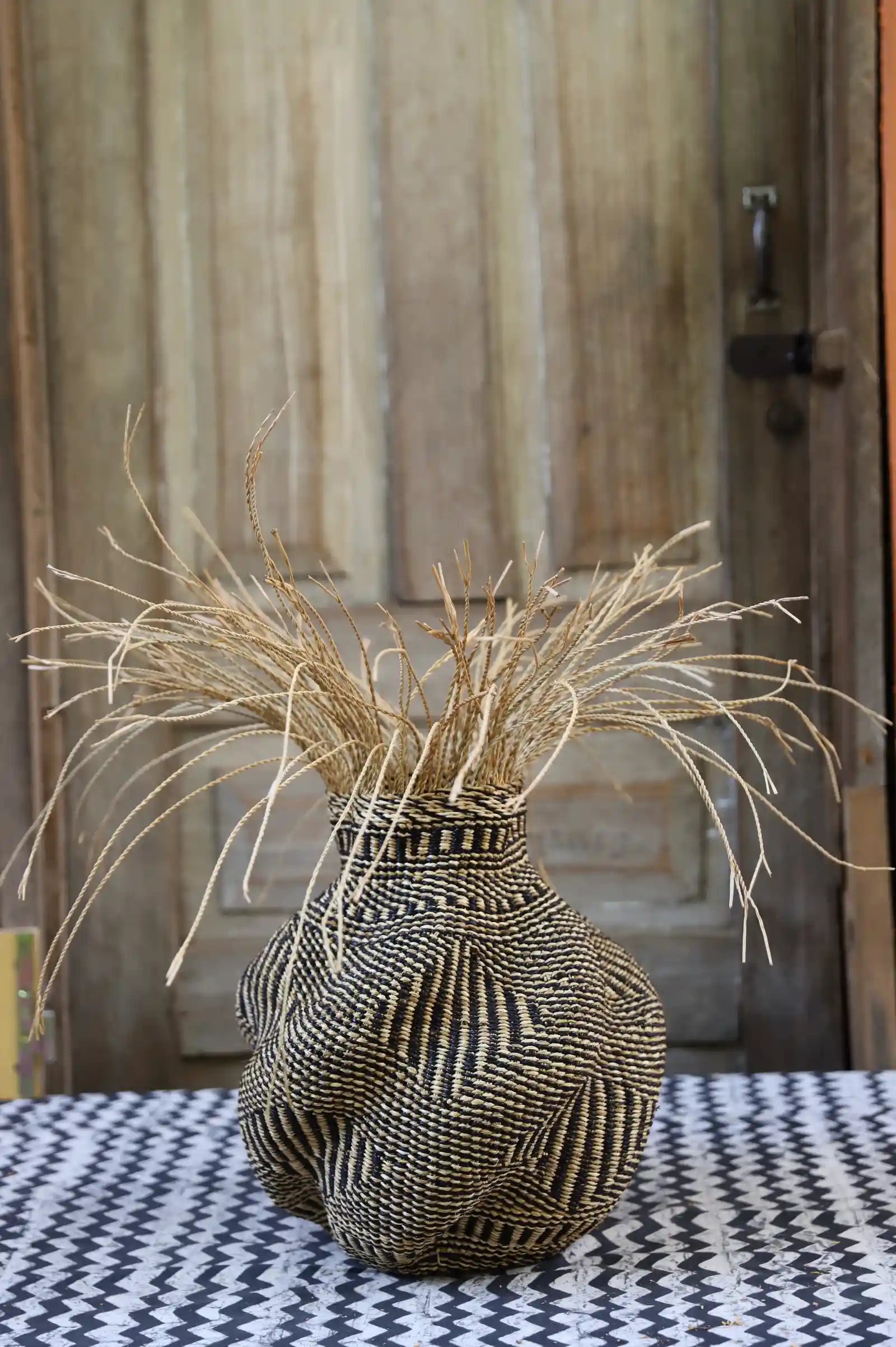 Named for its hanging straw and sculptural form, the Baobab Basket echoes Africa’s iconic ‘mother tree’—revered for its generous shade and nourishing fruit. The Baobab tree also inspired the name of our company, chosen for its warm nature and deep roots in the community. This piece features our signature spiraling technique, a reflection of our bond with land, culture, and craft.