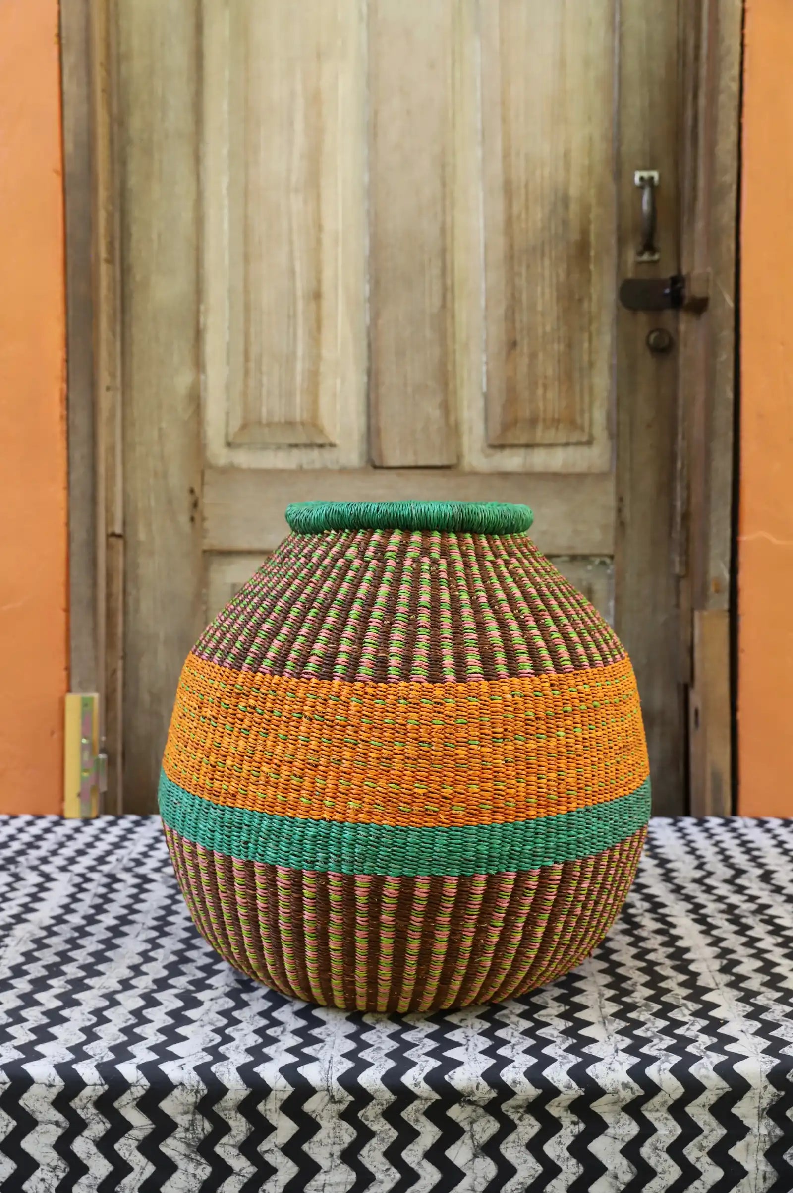 Kenkia, meaning a large water-carrying gourd in Gurune, the language of Ghana’s Gurunsi people is the inspiration behind this full-bodied basket. Though simple in design, its elegant proportions demand the skill of an expert weaver. A true art piece, the Kenkia basket doubles as a stunning woven vase—just add a glass jar for fresh flowers or garden finds.