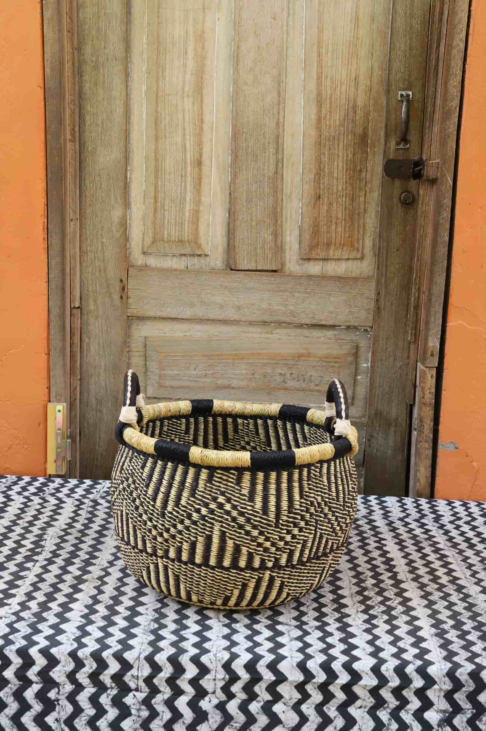 Le gbenka, qui tire son nom du tamis traditionnel utilisé pour filtrer le pito (une boisson à base de millet très appréciée), est l'une des premières formes de vannerie tissées dans la région du Haut-Est du Ghana. Symbole d'hospitalité et de convivialité, il incarne l'esprit de fête partagée. Aujourd'hui, il est réinventé comme un contenant fonctionnel pour ranger fruits, textiles ou objets précieux.