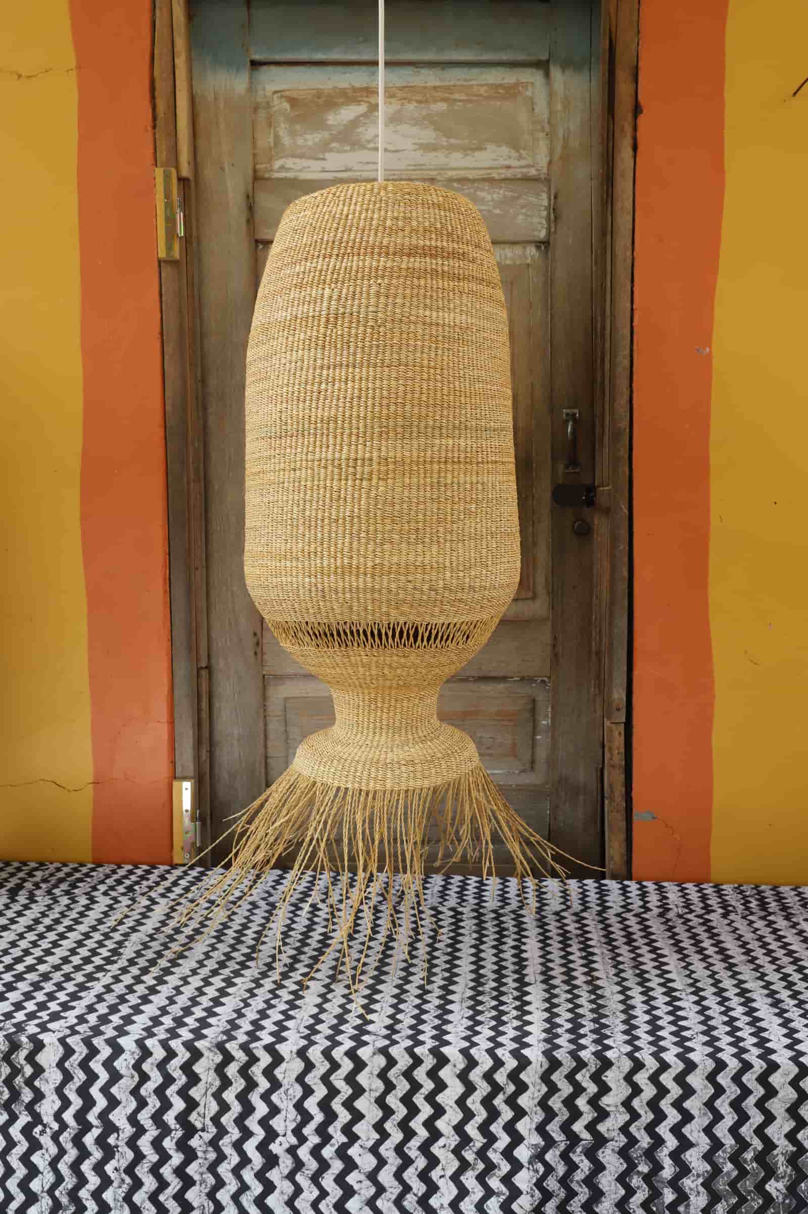 The cascading details create movement. The handwoven natural fibres keep it warm and human. The result is lighting that commands attention — and still feels like home.