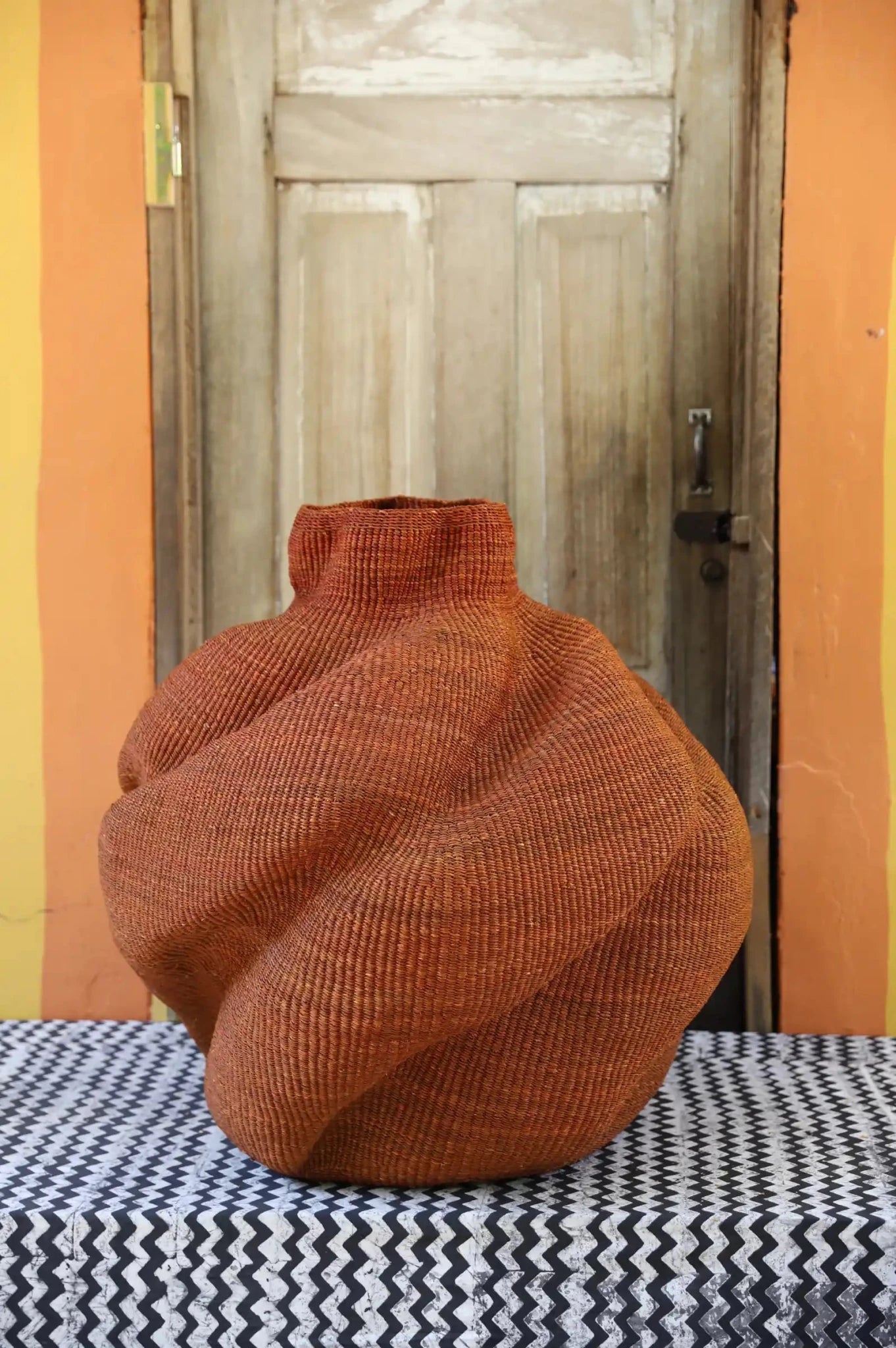 Le Yoomelingah-yure (Pot courbé) est un panier d'art qui s'exprime par ses courbes et sa présence discrète. Tressé à la main avec soin, sa forme gracieuse capture la quiétude du crépuscule et la beauté du savoir-faire artisanal. Une pièce sculpturale pour ceux qui perçoivent les paniers comme bien plus qu'un simple objet utilitaire : ici, la vannerie devient poésie.