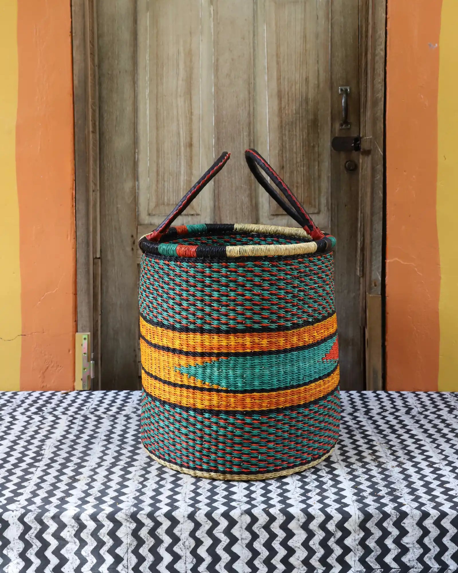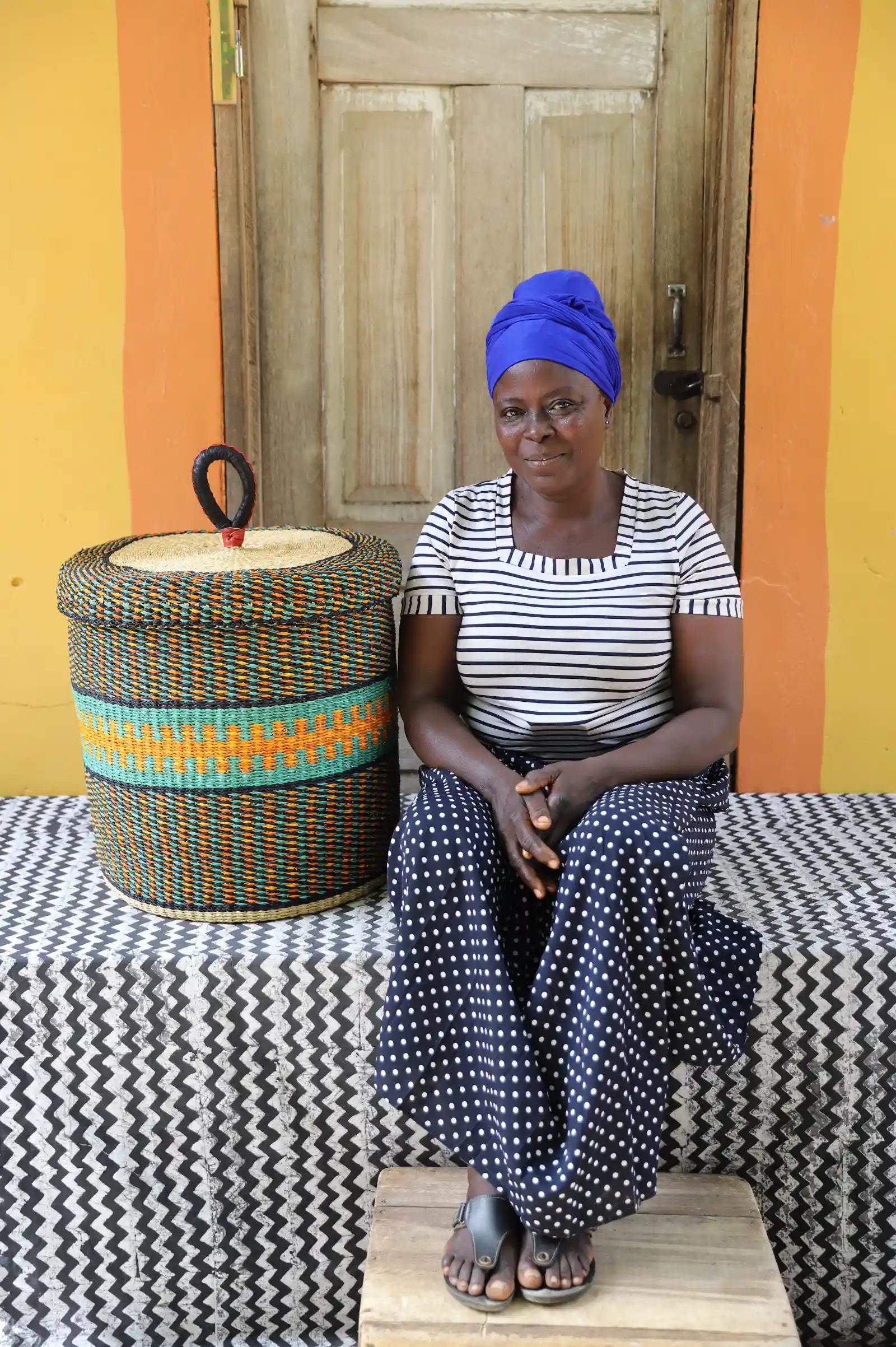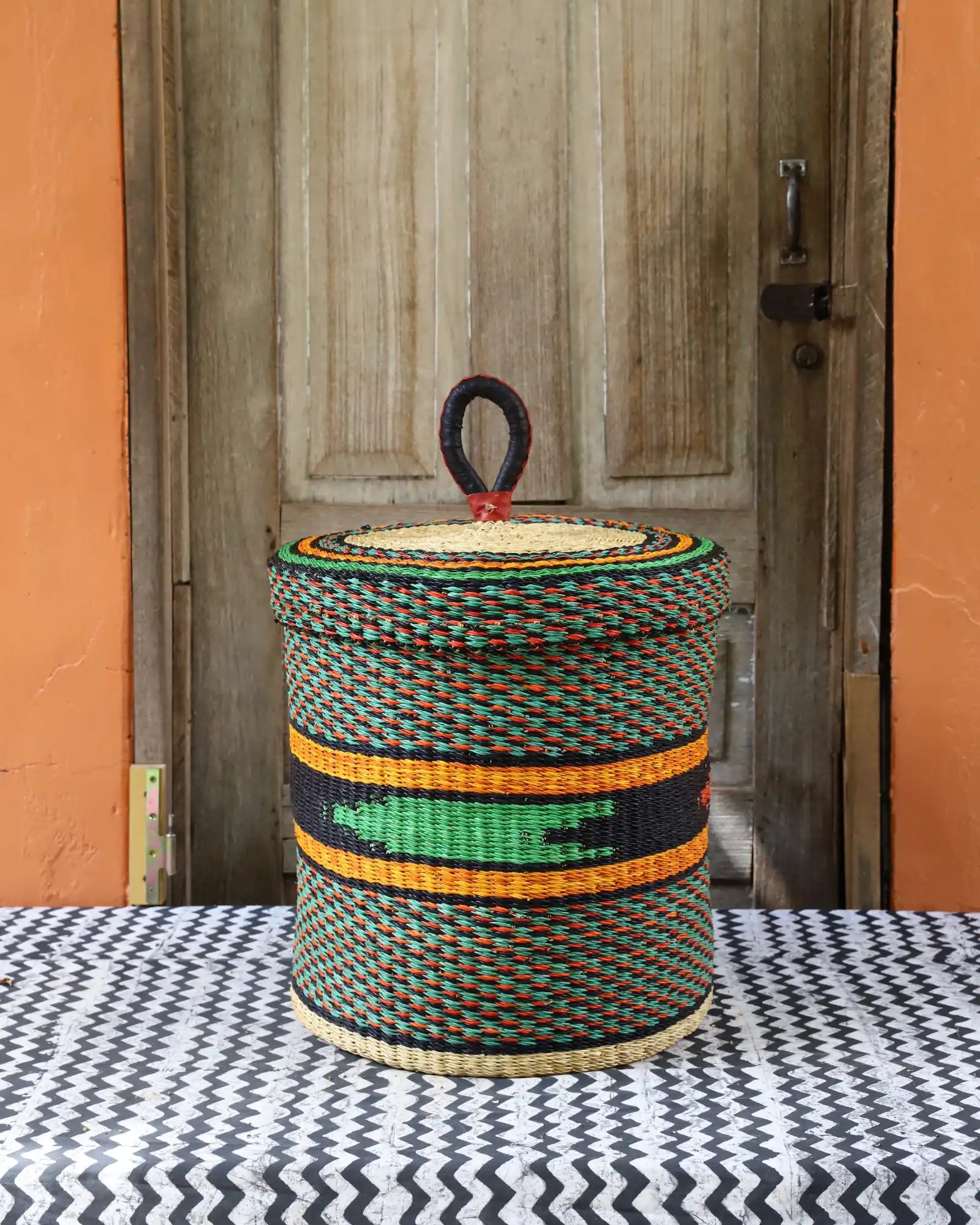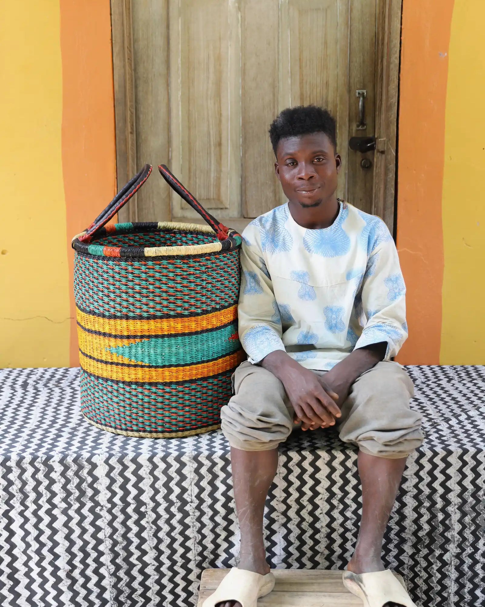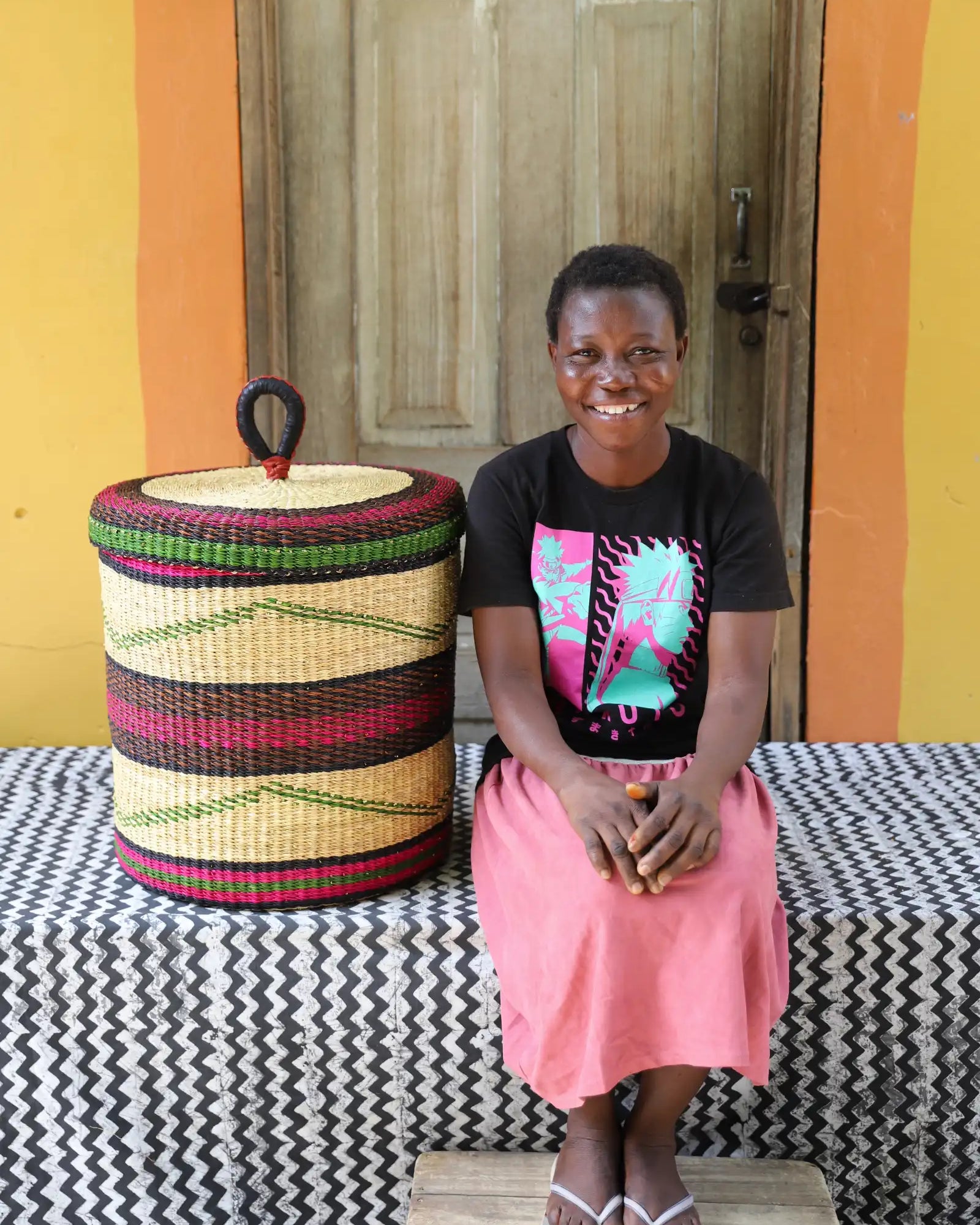 Nos paniers à linge artisanaux tissés à la main sont disponibles en tailles L, M et S. Choisissez parmi des tons naturels et chaleureux, du jonc de mer ou de magnifiques combinaisons inspirées des couleurs du Ghana. Ils sont désormais également disponibles avec couvercle et doublure en batik local signé Esther Amate, en wax ghanéen et en tissu naturel tissé à la main. Un luxe moderne pour faire de la lessive un véritable plaisir.