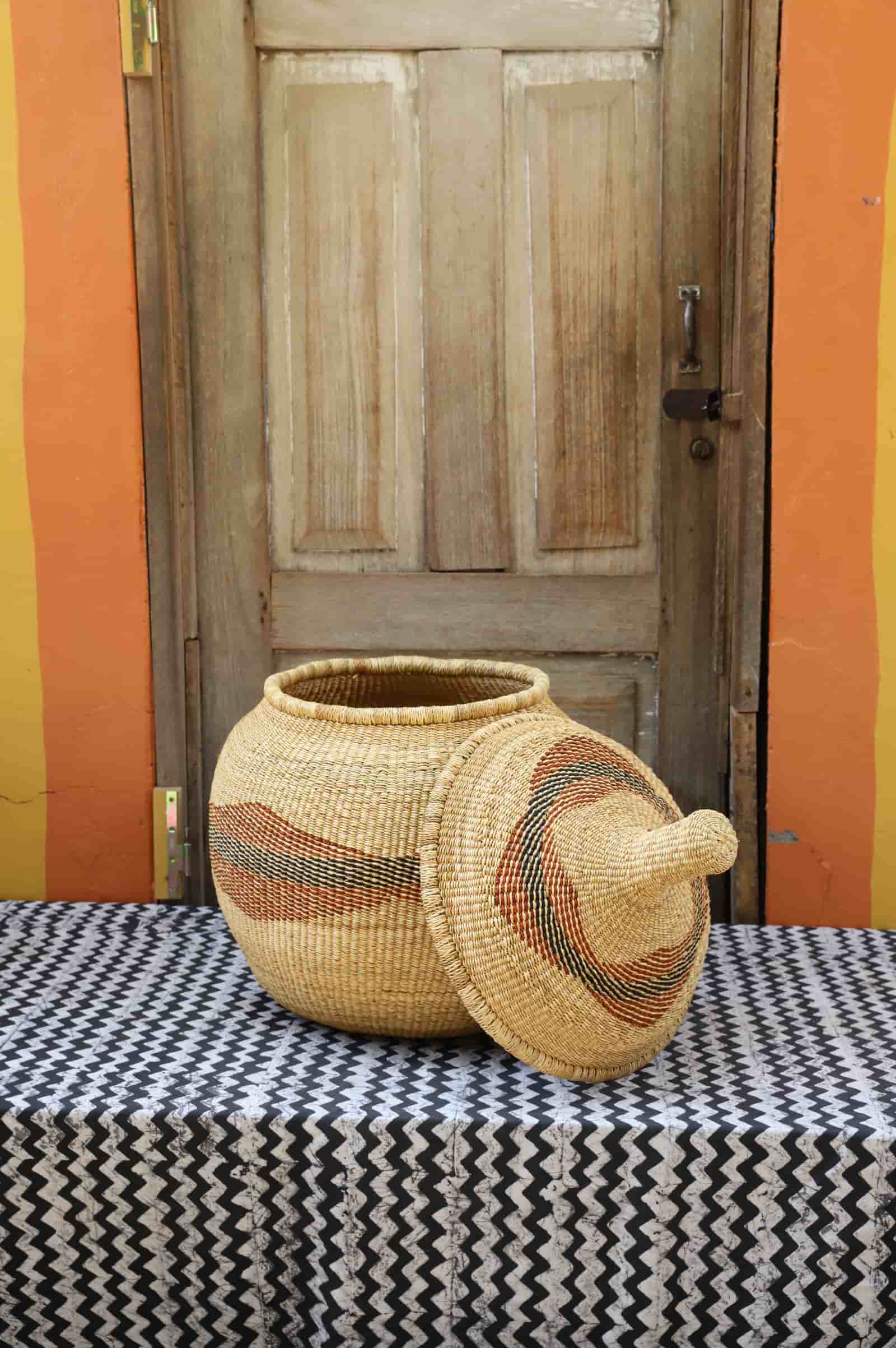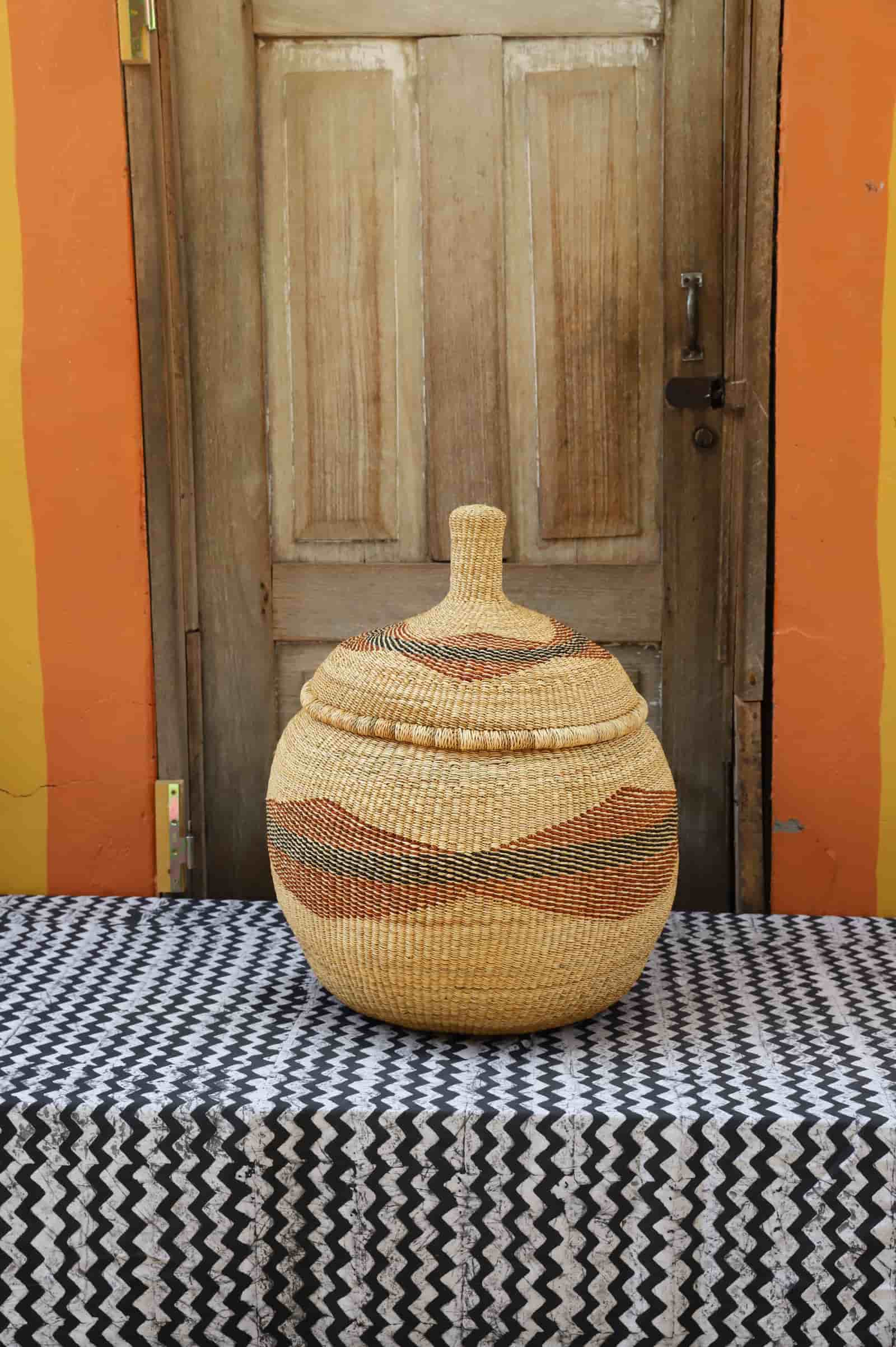 Également connue sous le nom de Kuope-oh, Orbit était le récipient idéal pour conserver la farine, le sel et autres ingrédients essentiels à la préparation du TZ, plat traditionnel ghanéen. Son couvercle parfaitement ajusté permettait de conserver les ingrédients en toute sécurité. Orbit est à la fois une solution de rangement élégante et un objet décoratif, apportant une touche traditionnelle à votre intérieur tout en préservant la fonctionnalité et le raffinement de votre espace.