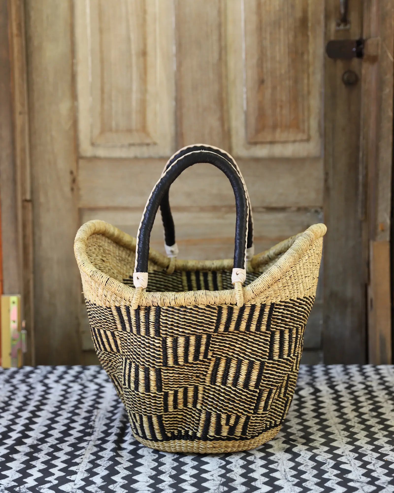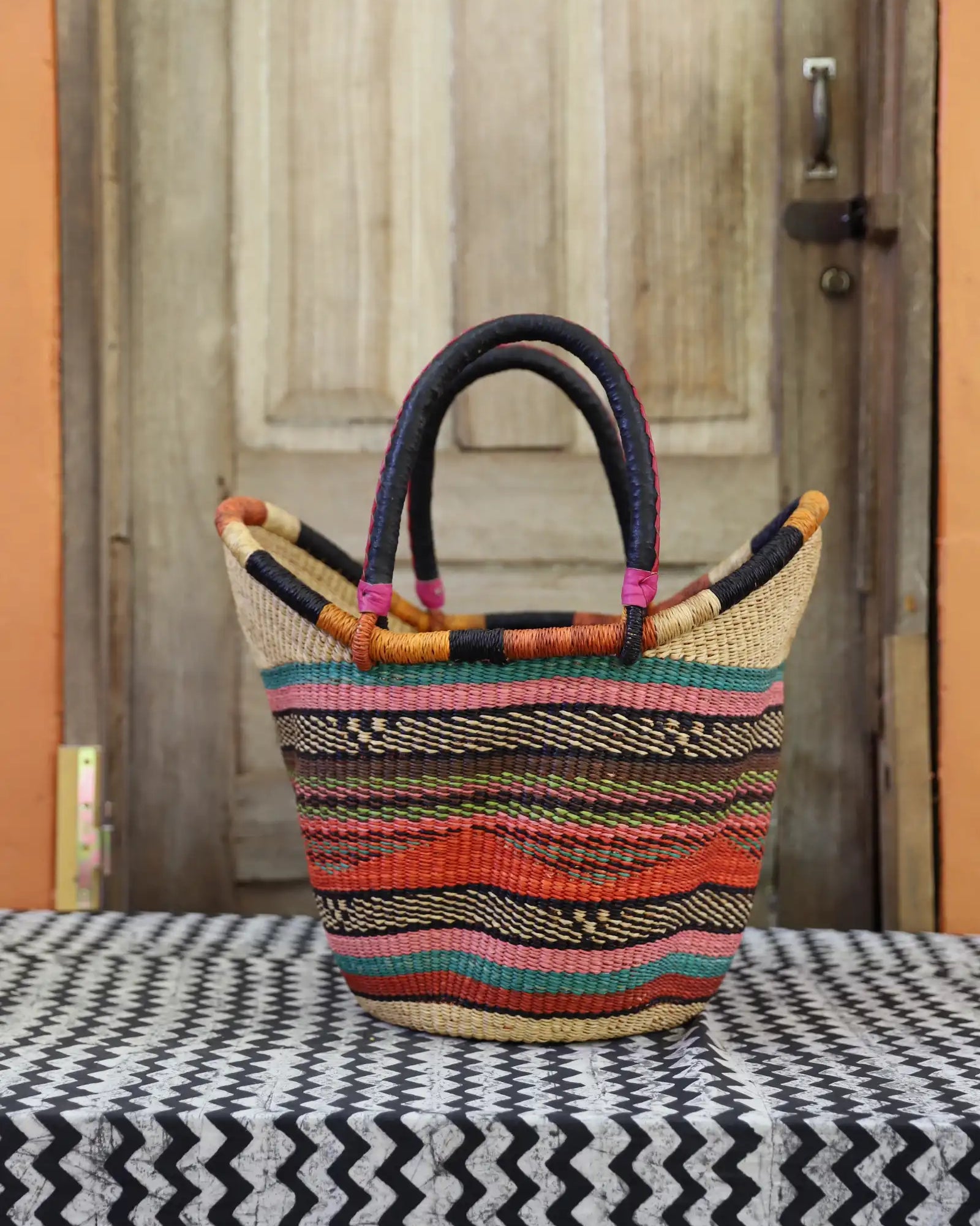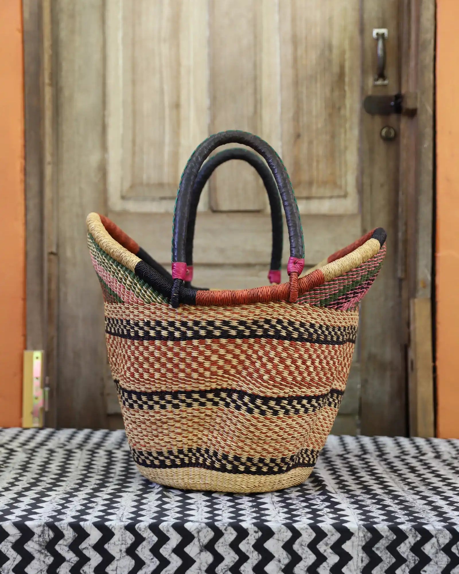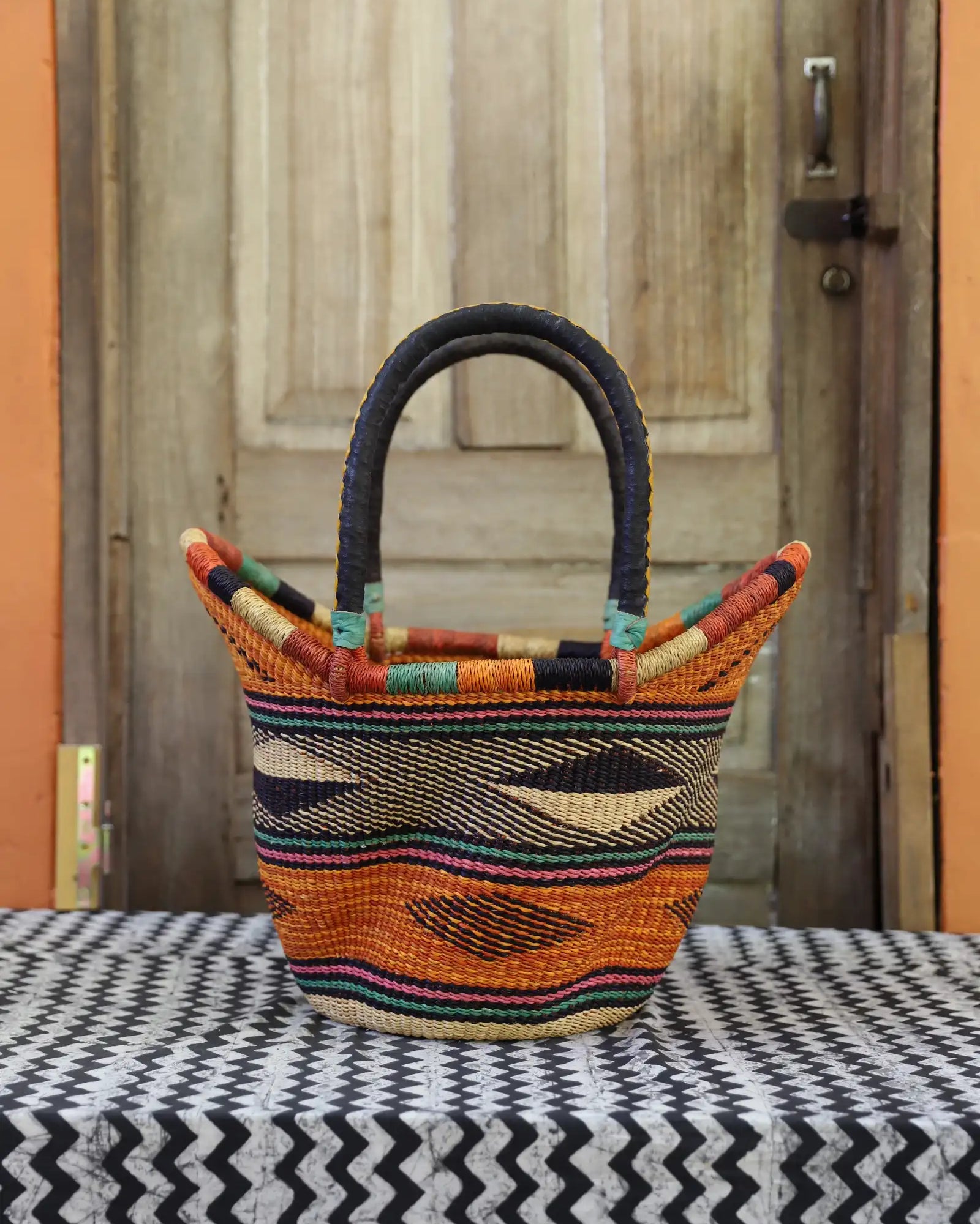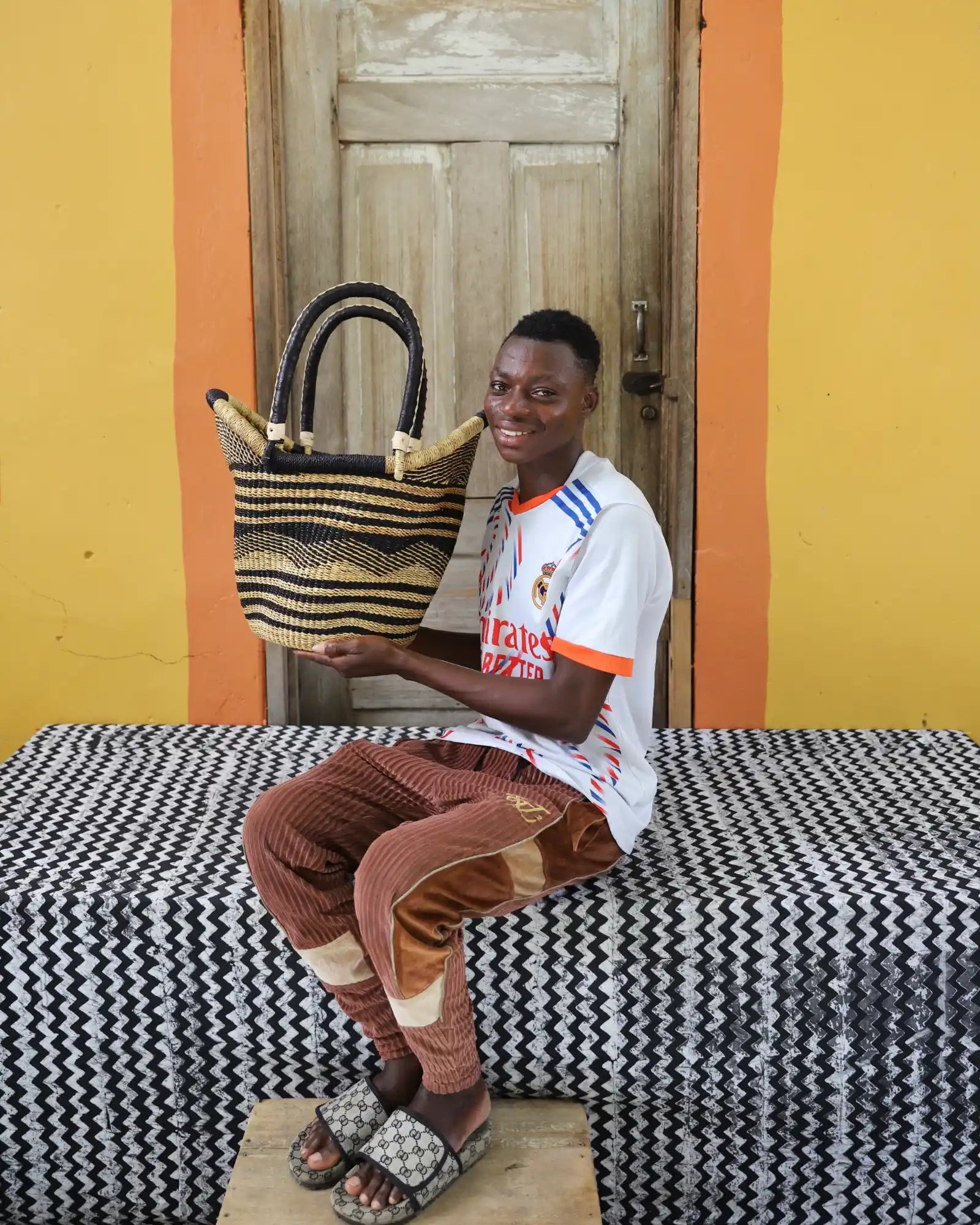 Solara est un sac fourre-tout tissé à la main qui s'adapte au rythme de la vie quotidienne. Ses motifs ondulés délicats lui confèrent rythme et mouvement, évoquant la nature, tandis que sa forme spacieuse et robuste permet d'accueillir tout le nécessaire : un mariage réussi entre savoir-faire artisanal, beauté naturelle et praticité au quotidien.