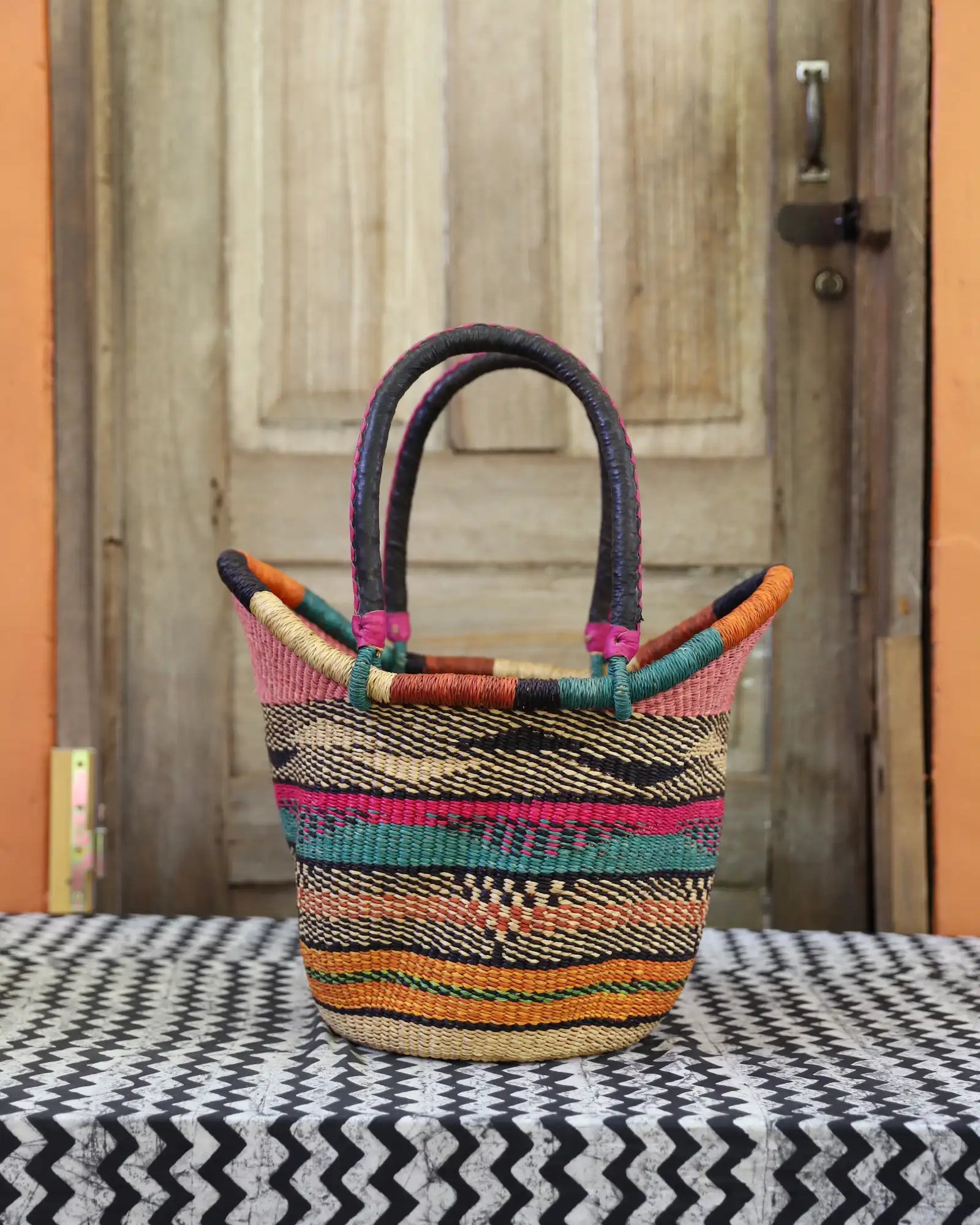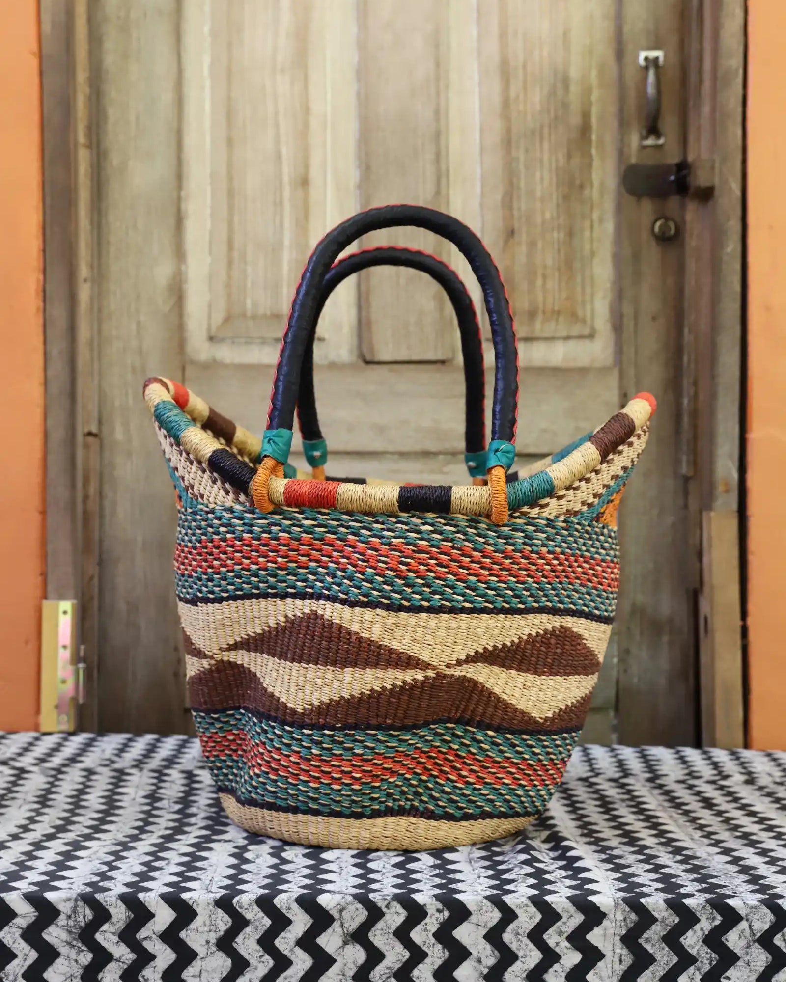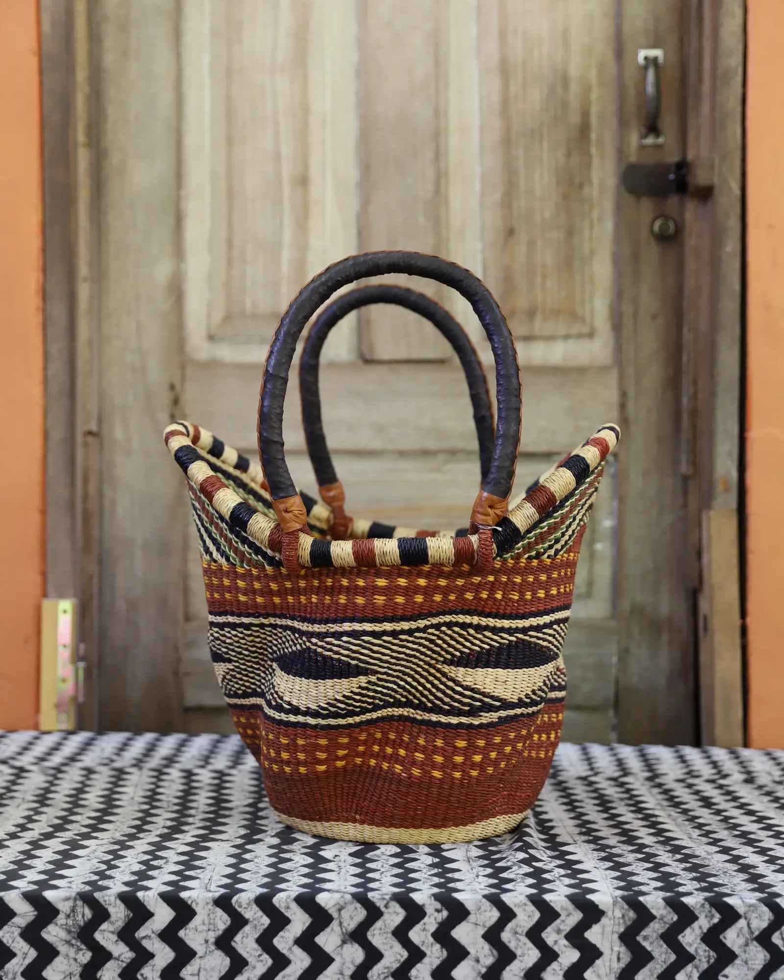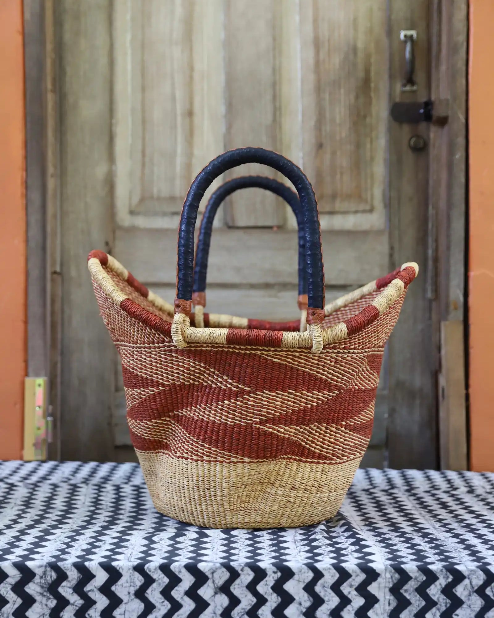 Solara est un sac fourre-tout tissé à la main qui s'adapte au rythme de la vie quotidienne. Ses motifs ondulés délicats lui confèrent rythme et mouvement, évoquant la nature, tandis que sa forme spacieuse et robuste permet d'accueillir tout le nécessaire : un mariage réussi entre savoir-faire artisanal, beauté naturelle et praticité au quotidien.