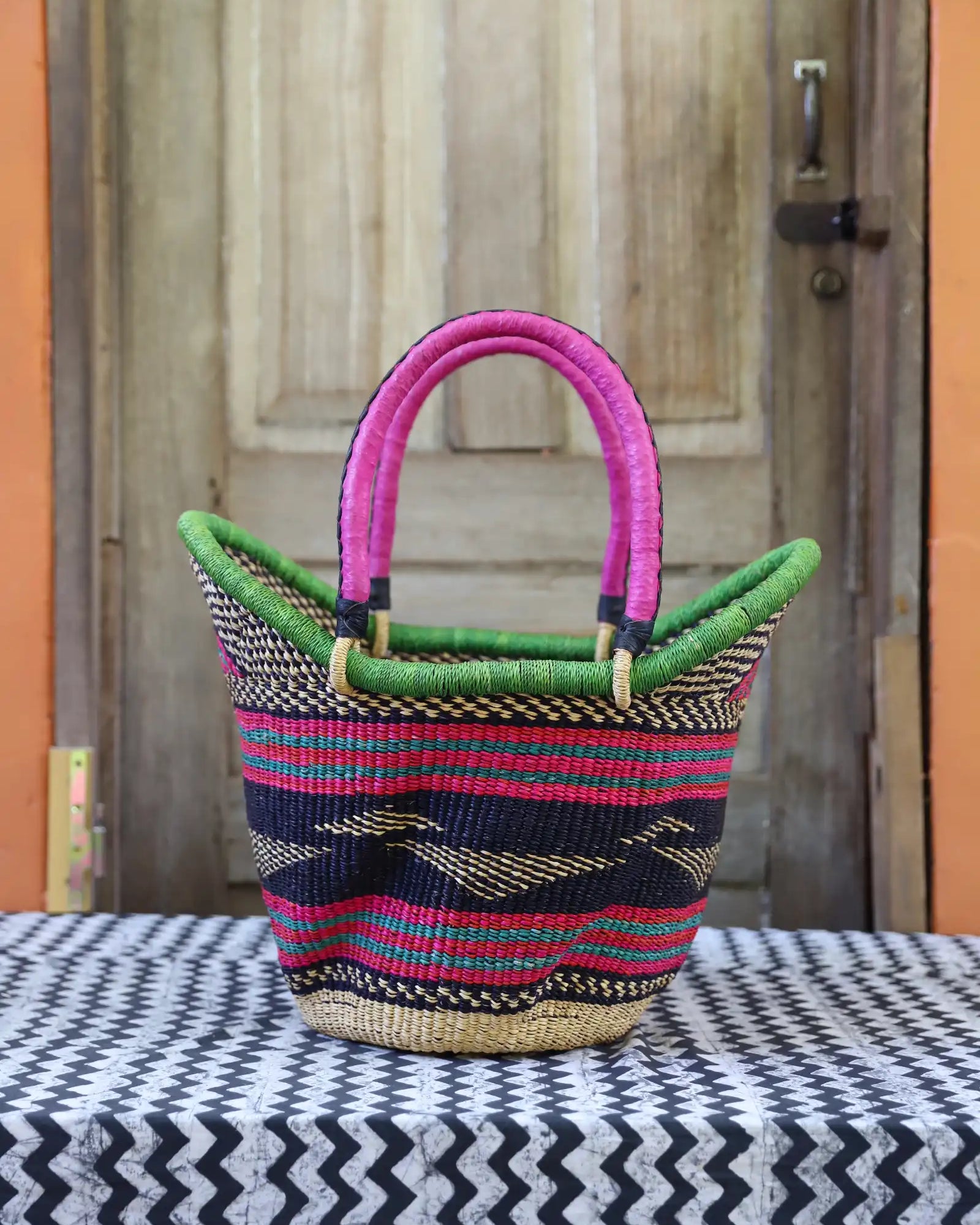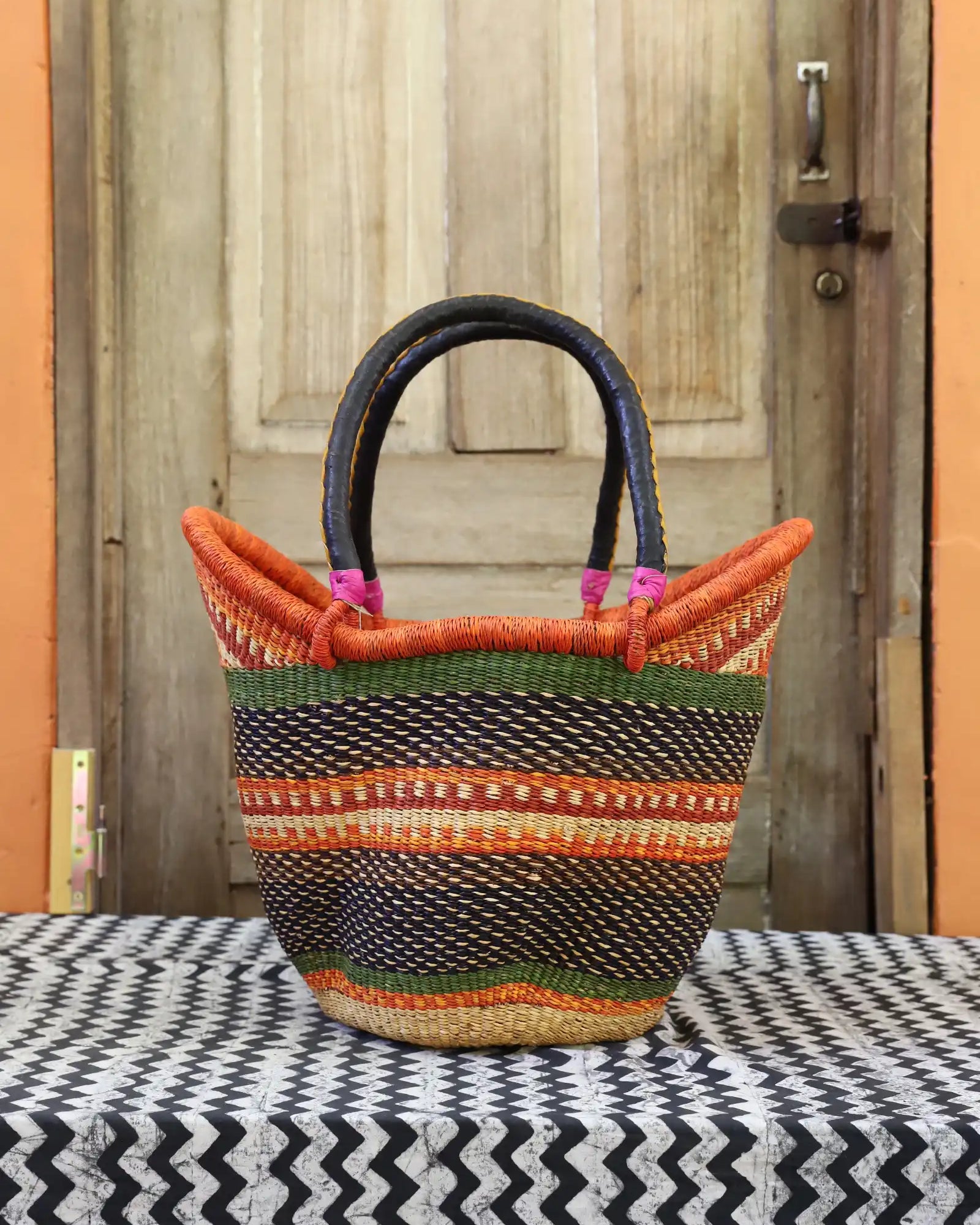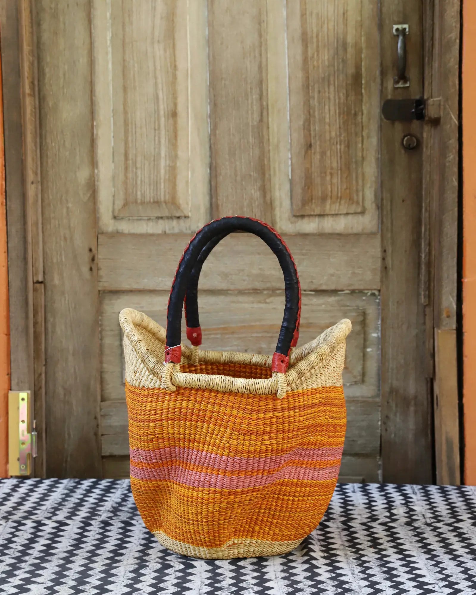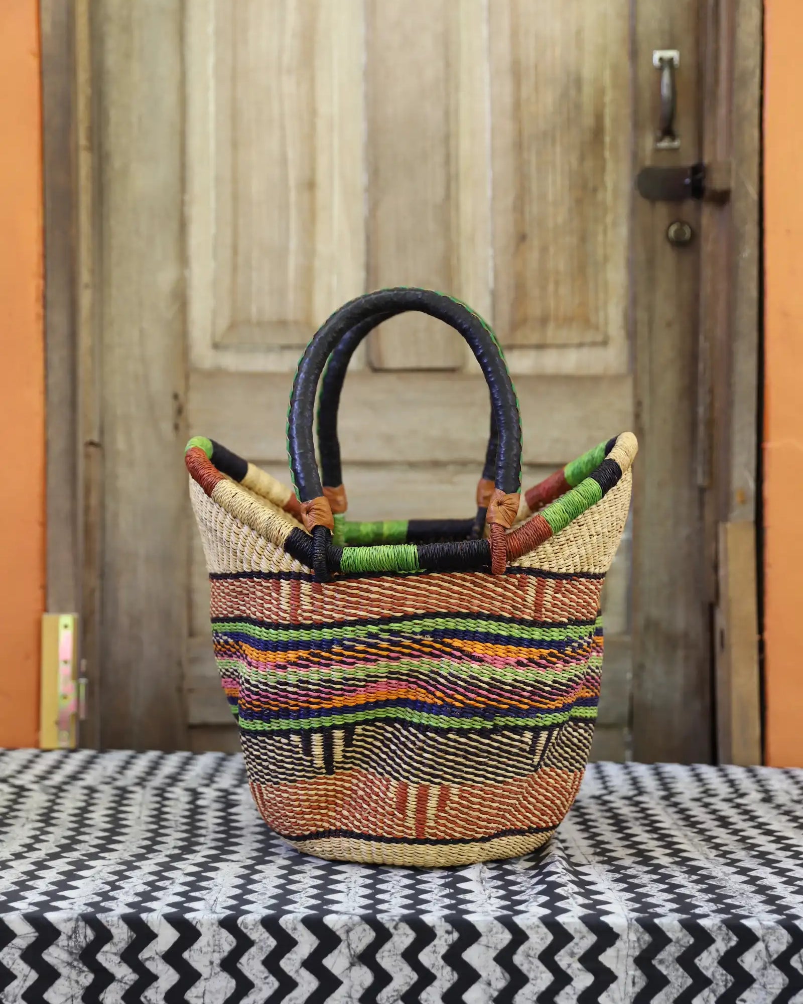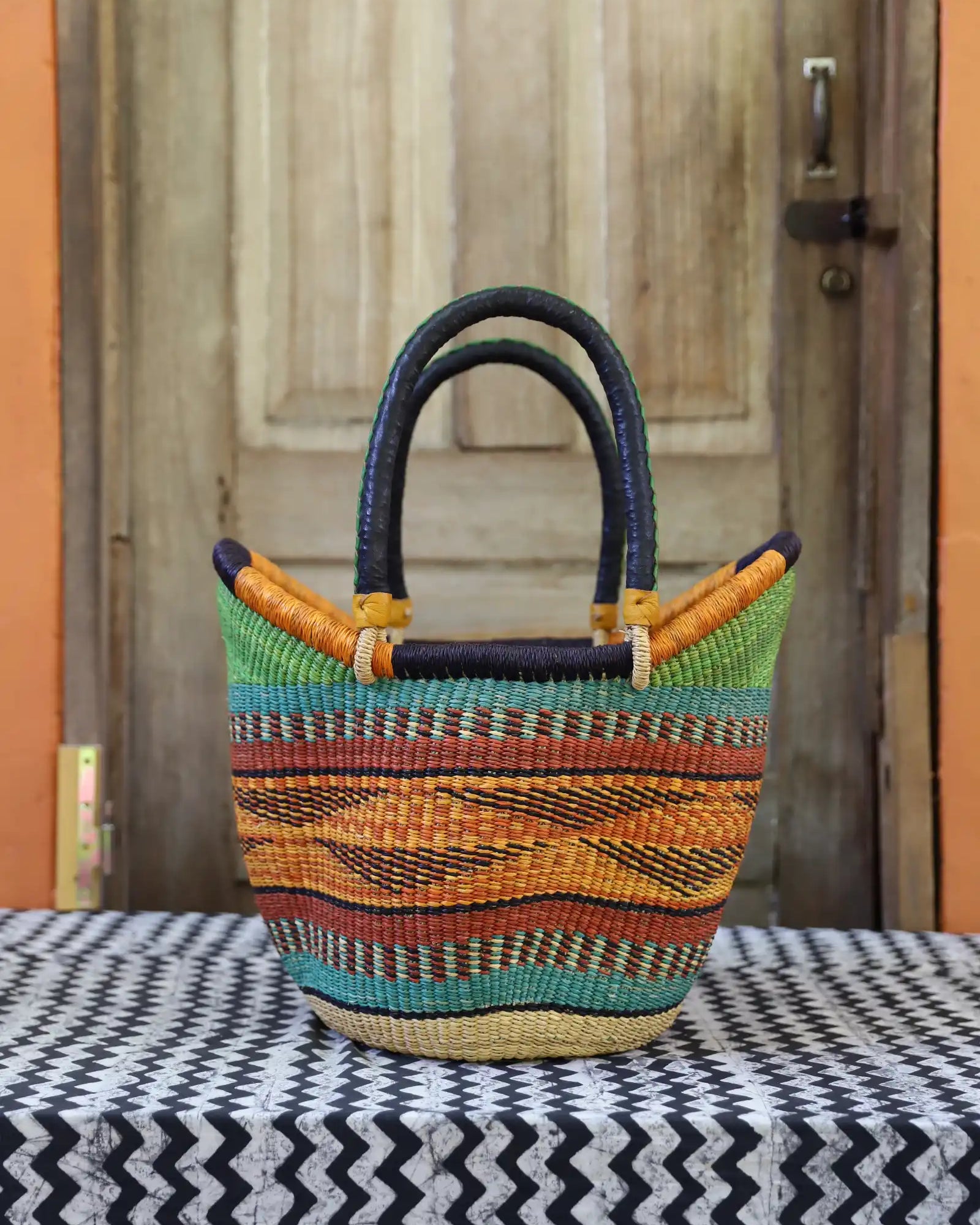Solara est un sac fourre-tout tissé à la main qui s'adapte au rythme de la vie quotidienne. Ses motifs ondulés délicats lui confèrent rythme et mouvement, évoquant la nature, tandis que sa forme spacieuse et robuste permet d'accueillir tout le nécessaire : un mariage réussi entre savoir-faire artisanal, beauté naturelle et praticité au quotidien.