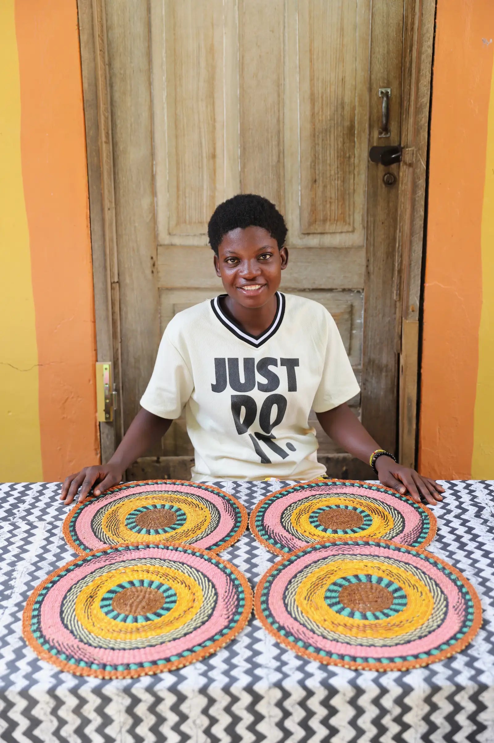 Pour des tables chargées de souvenirs et d'instants précieux, nos sets de table tissés à la main apportent une touche d'élégance intemporelle et de charme naturel. Confectionnés par nos artisans qualifiés, ils subliment chaque repas et chaque célébration, y insufflant une atmosphère chaleureuse et authentique.