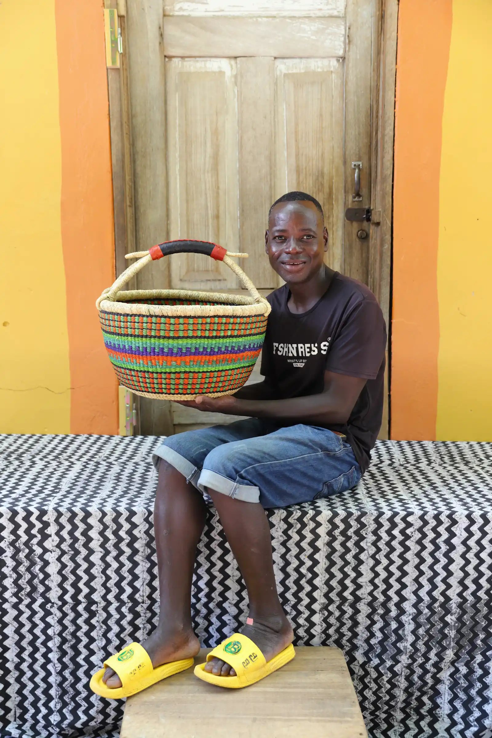 Un classique de Bolgatanga : ce panier est à l’origine de tout, et personne ne le maîtrise mieux que The Baba Tree. Idéal pour vos courses au marché, vos journées à la plage, ou comme solution de rangement pratique à la maison ou en voiture. Durable, intemporel et d’une utilité sans fin.