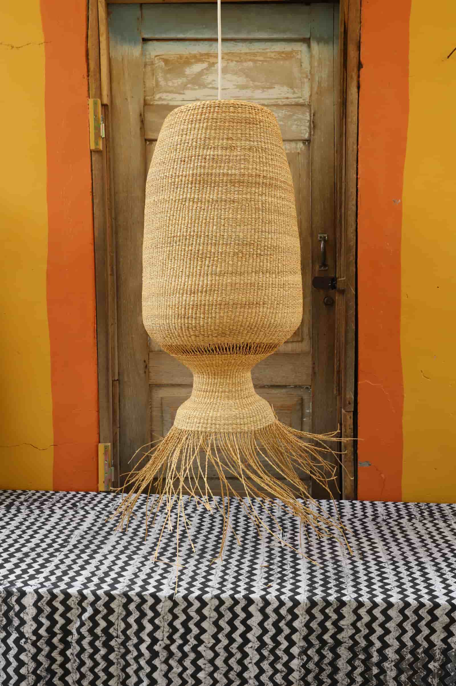 The cascading details create movement. The handwoven natural fibres keep it warm and human. The result is lighting that commands attention — and still feels like home.