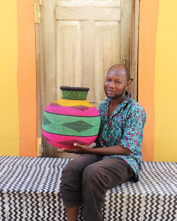 我们的编织工们因其精湛的技艺而获得丰厚的报酬,他们精心编织巴巴树篮子。除了最初的报酬外,他们还能获得零售价的5%至12.5%作为佣金。