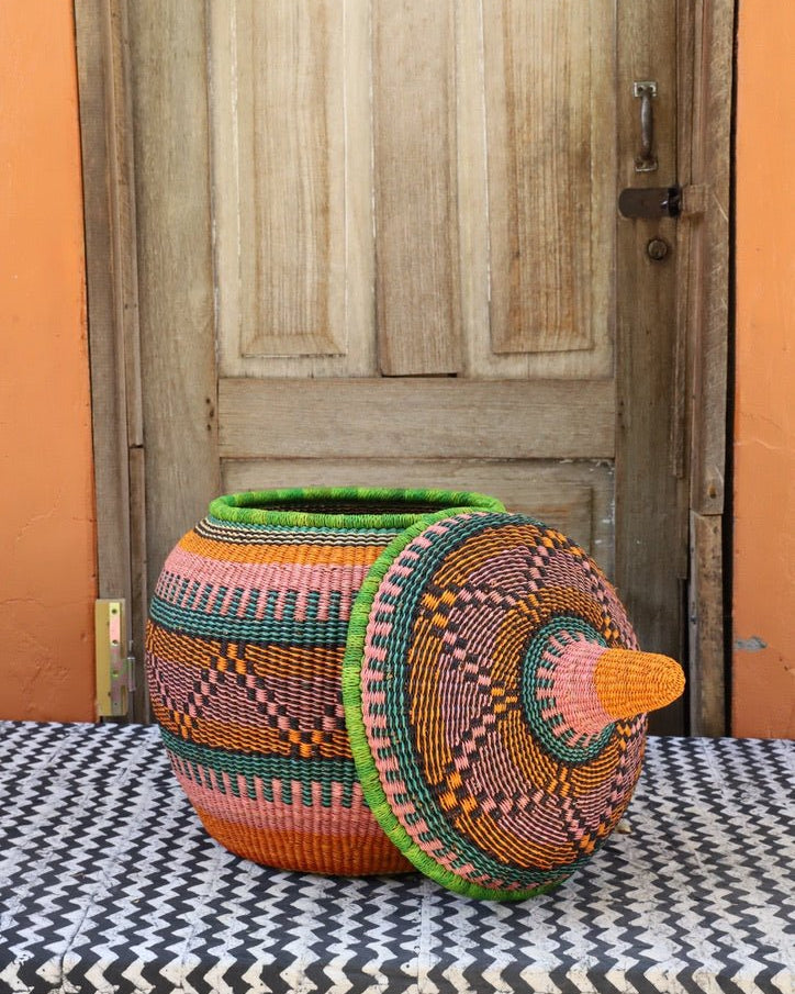 这些独特的非洲篮子由 Baba Tree 的杰出工匠在博尔加用天然材料编织而成,可用于收纳、装饰、购物等,并有多种颜色和尺寸可供选择。