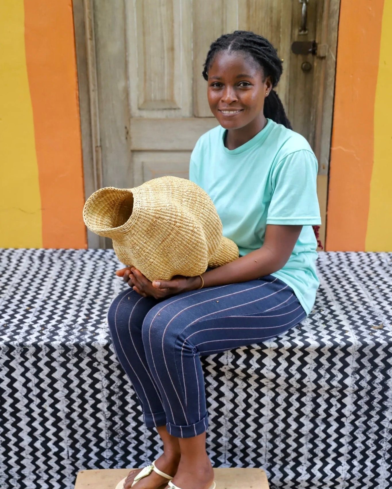 本系列中的每一件作品都出自我们合作的工匠之手——他们充满活力、色彩斑斓、匠心独运。您所看到的每一处优美曲线,都是编织大师的手工印记或签名,他们以精湛的技艺精心制作了您的篮子。我们珍视每一件艺术品的独特性。我们坚信,编织本身就是一种艺术。